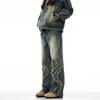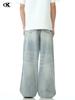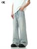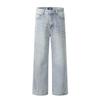 11KN American Retro lavado azul claro jeans para hombres y mujeres, corte limpio, pantalones largos de pierna recta con microcampana de calle, transfronterizos