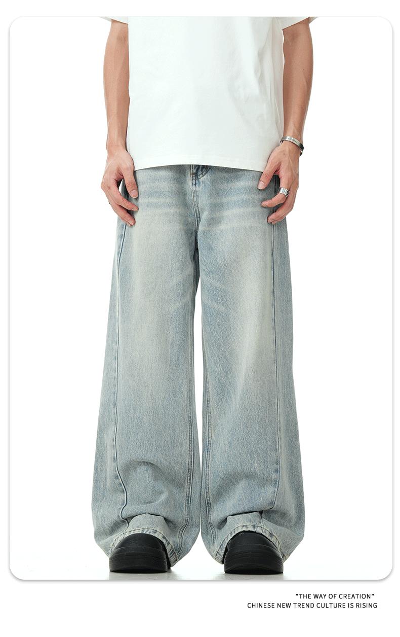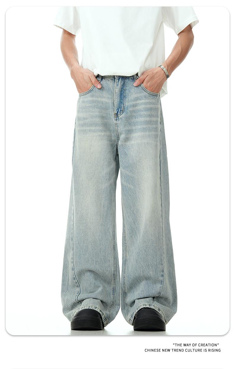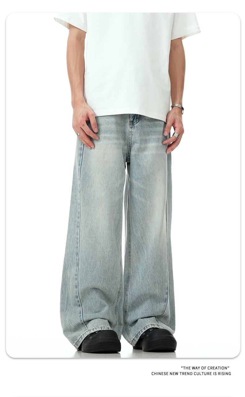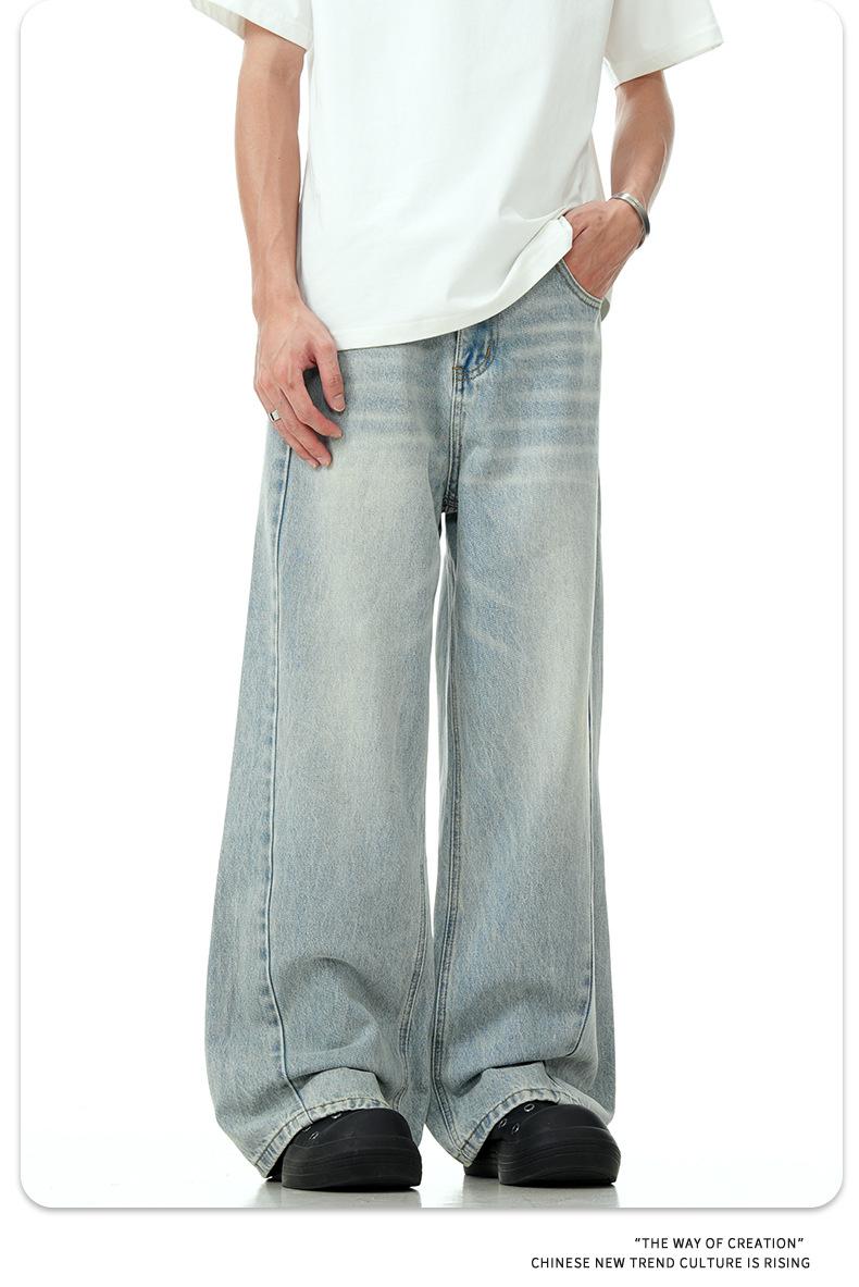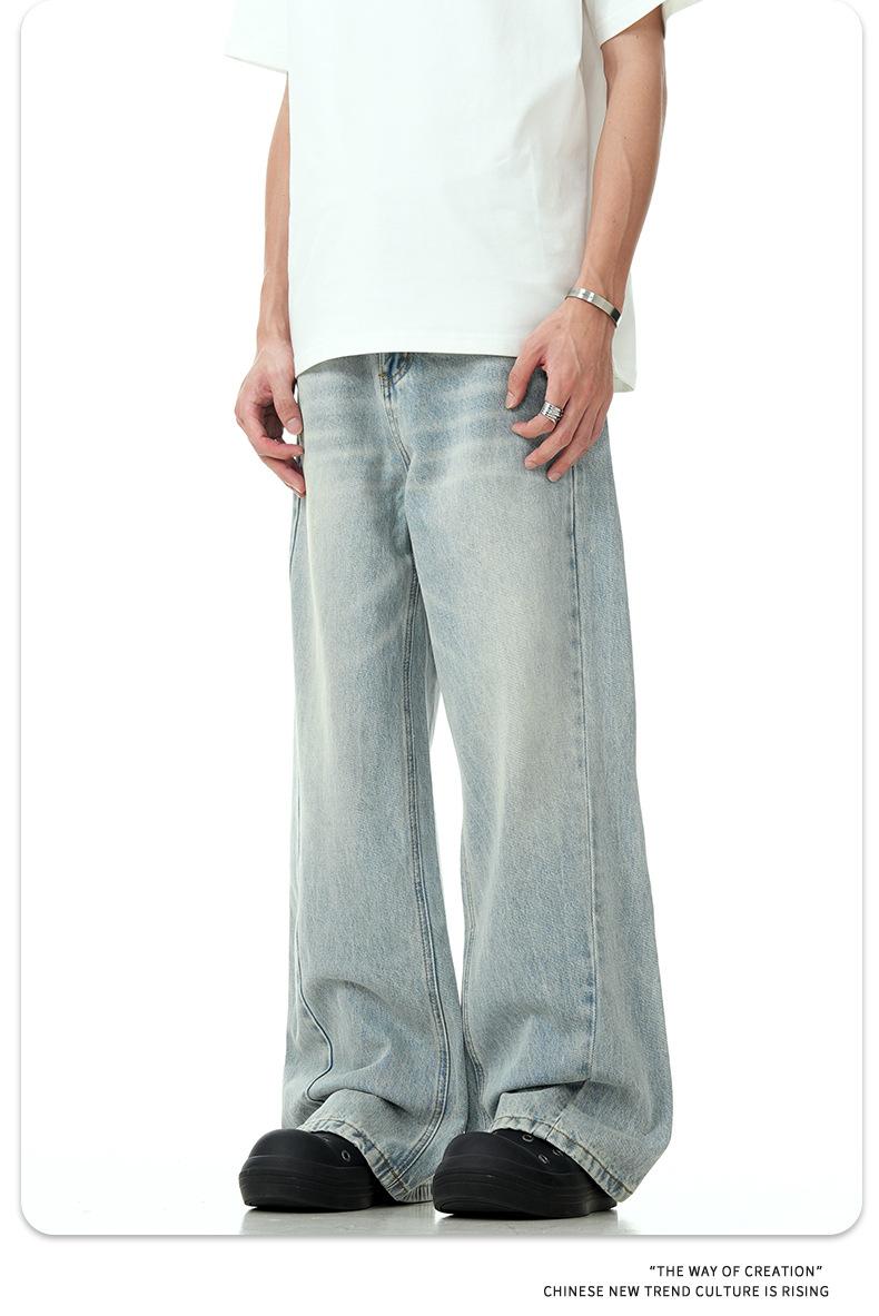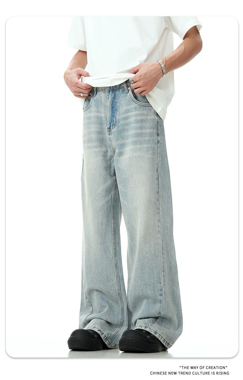 11KN Mỹ Vintage nước rửa ánh sáng màu xanh Jeans cho nam giới y phụ nữ cleanfit cao đường phố Micro thẳng ống dài quần qua biên giới