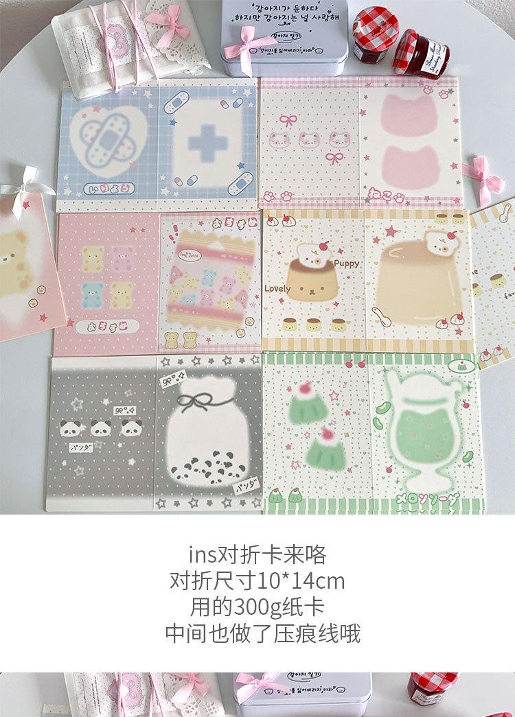 Tarjeta plegable de dibujos animados, suave y linda, de cartón, protege tarjetas pequeñas, material de embalaje, decorativa, plegable, tarjeta de felicitación con mensaje DIY.