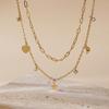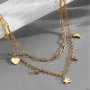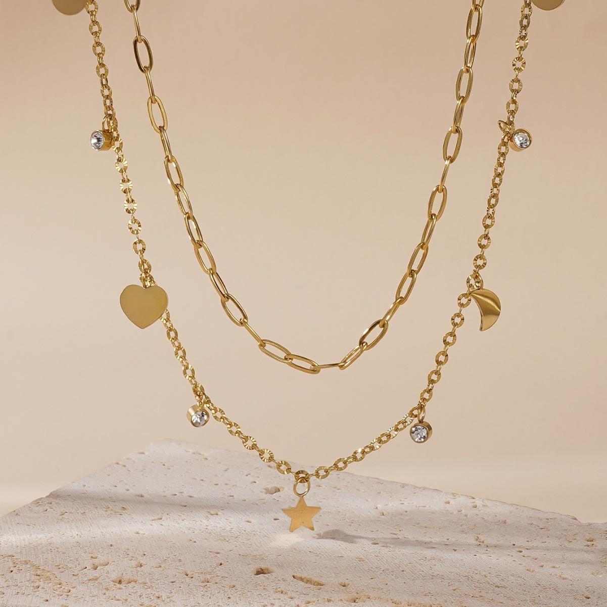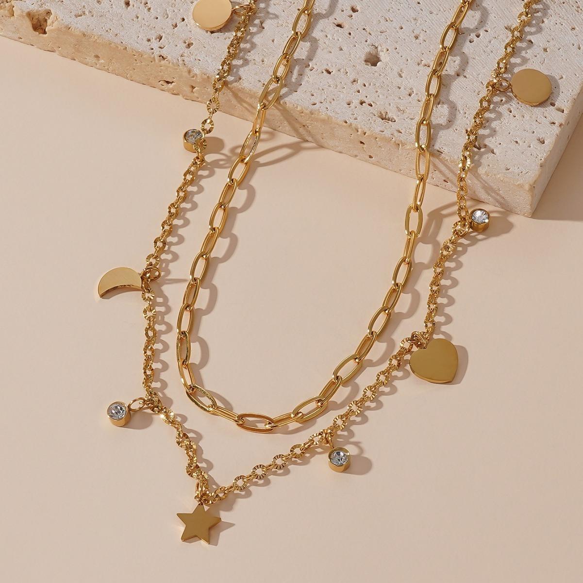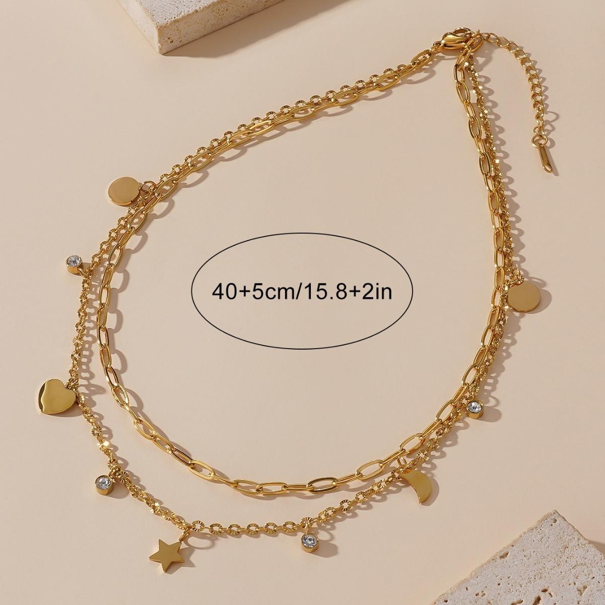 Collar con colgante de estrella, luna y amor, de lujo, elegante, chapado en diamantes, de doble capa, con cadena de clavícula superpuesta