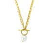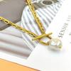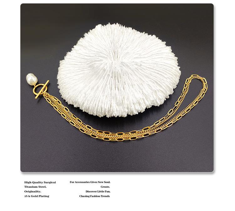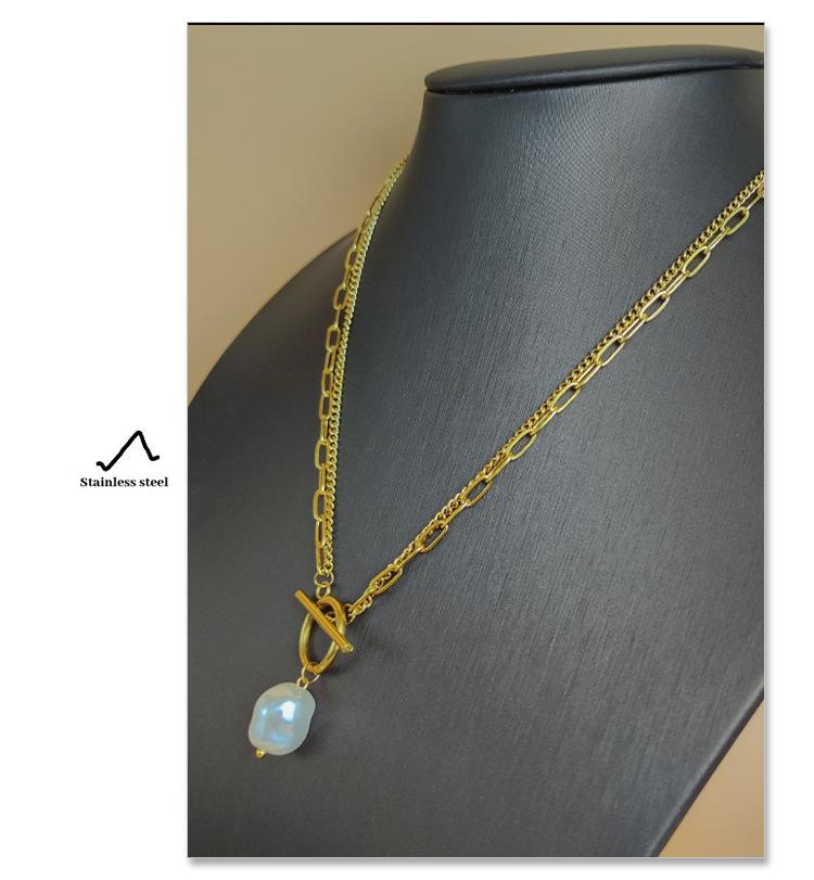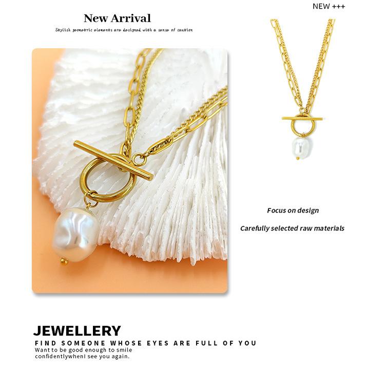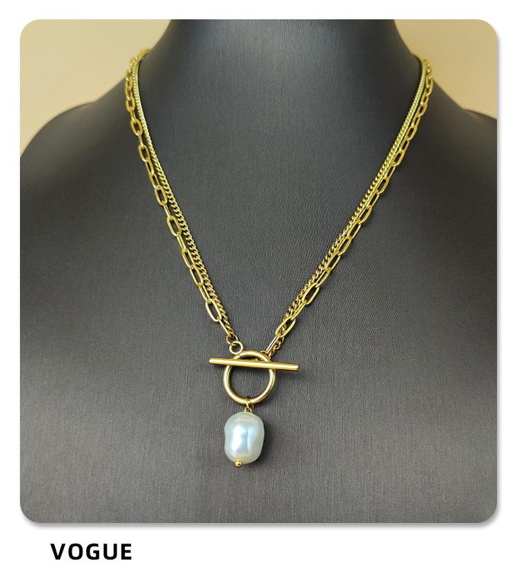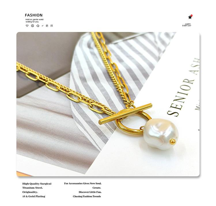 Collar de clavícula de doble capa de acero de titanio europeo y americano transfronterizo, colgante de perla para mujer, diseño de nicho de lujo, collar de sentido de alta calidad al por mayor