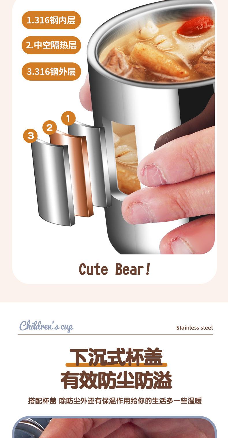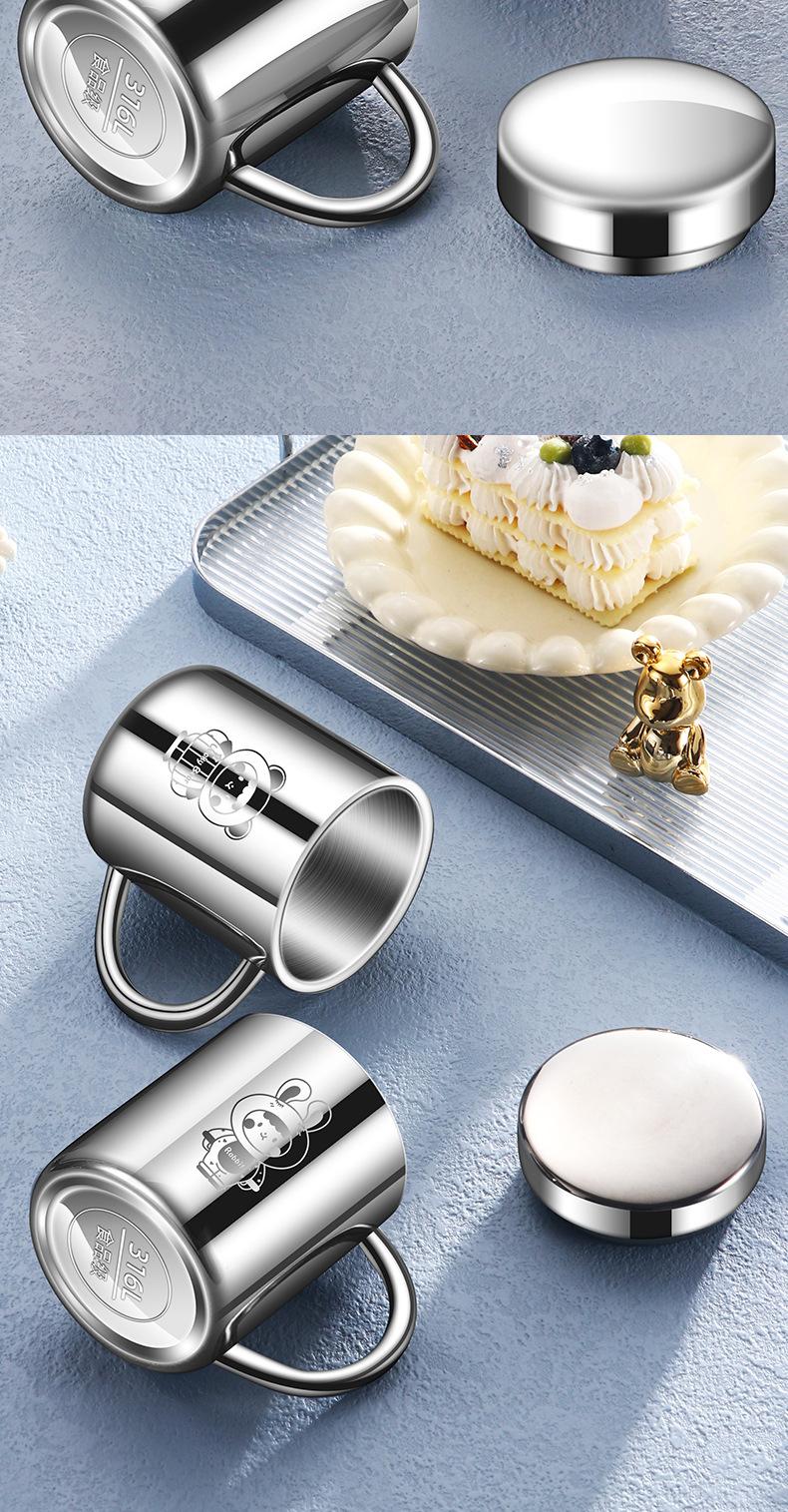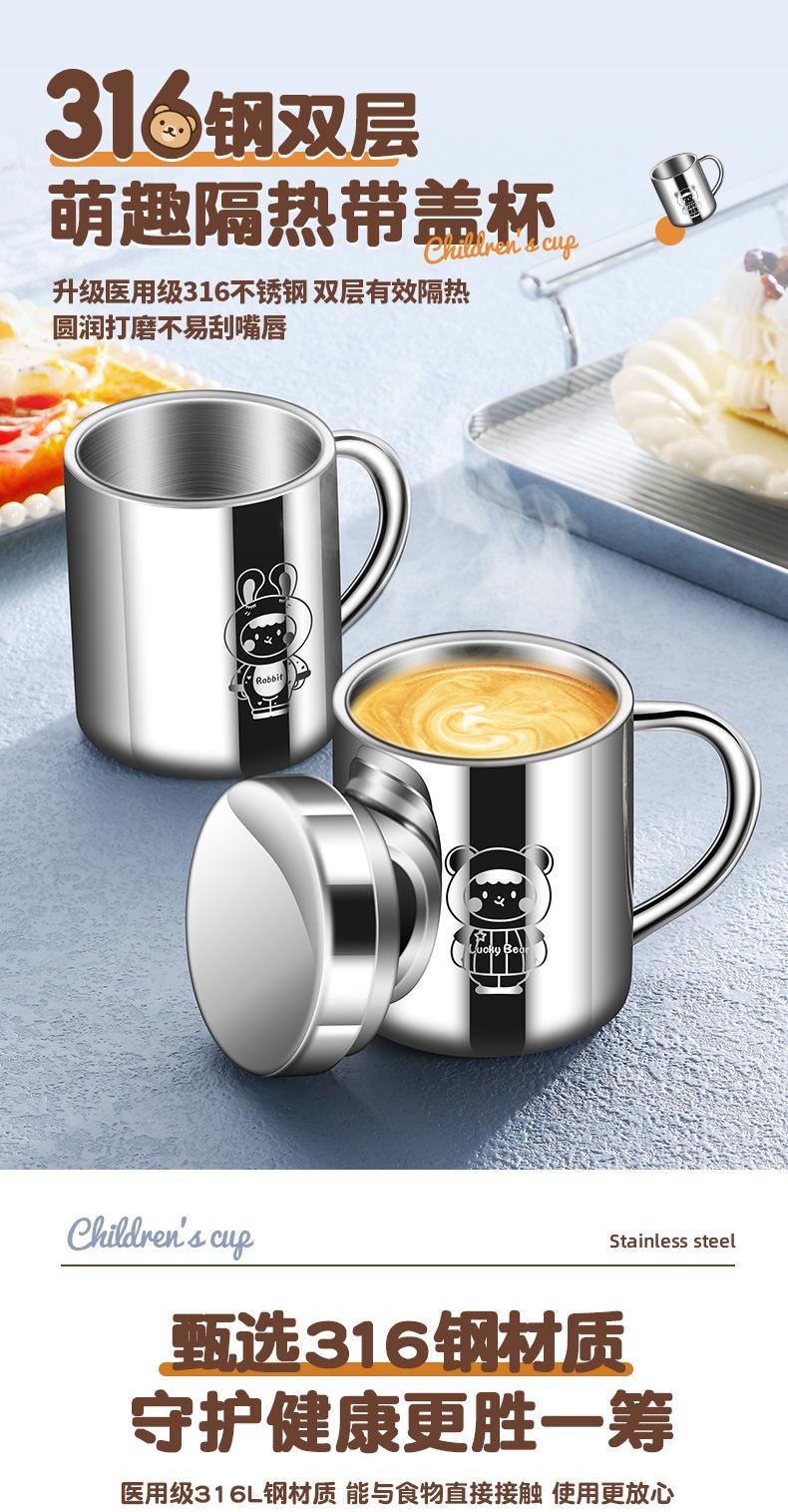 Taza de acero inoxidable 316 con asa, taza pequeña para jardín de infantes, taza especial para beber, taza anti-calor para niños, taza para leche
