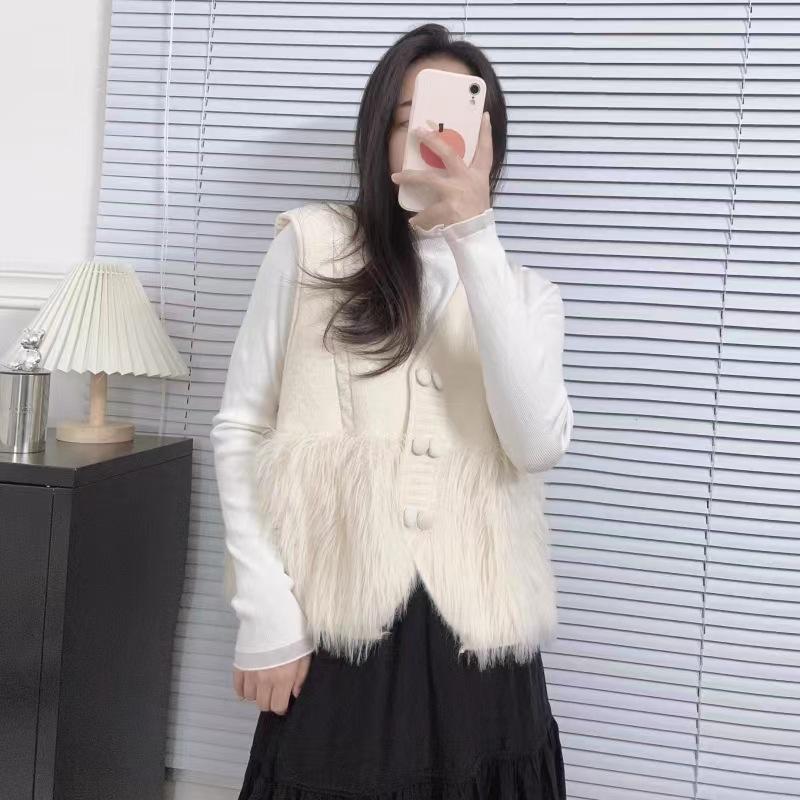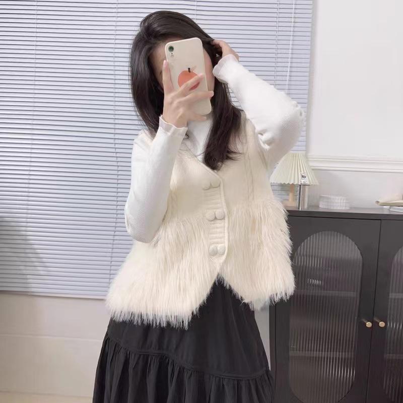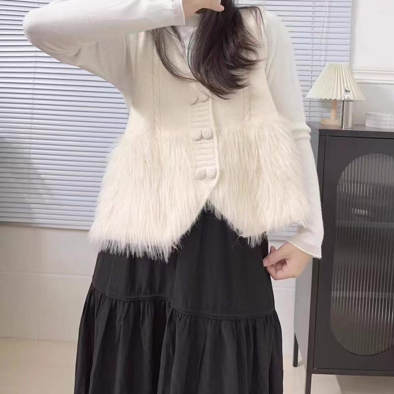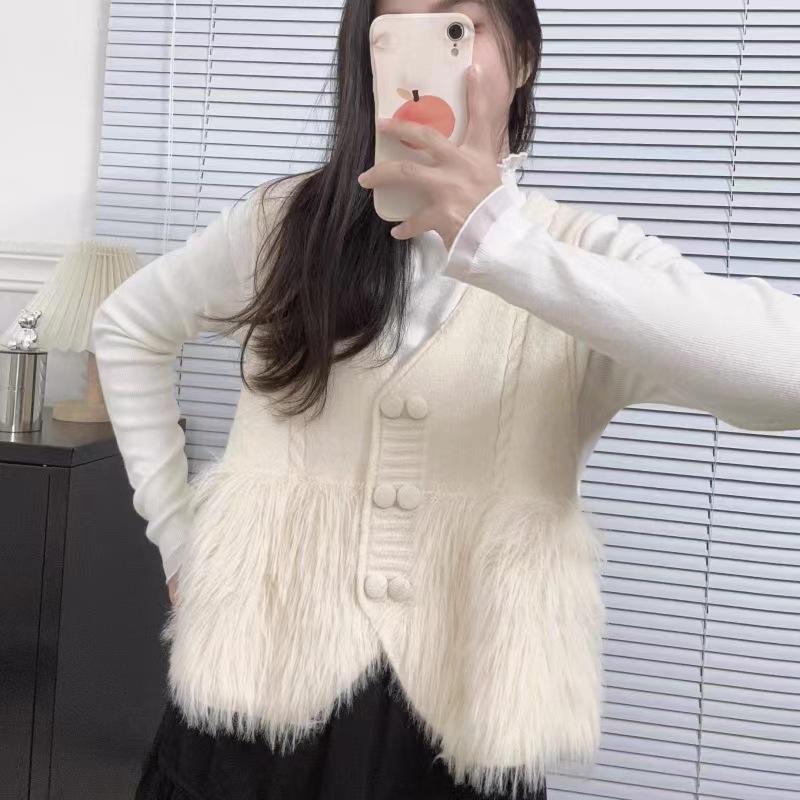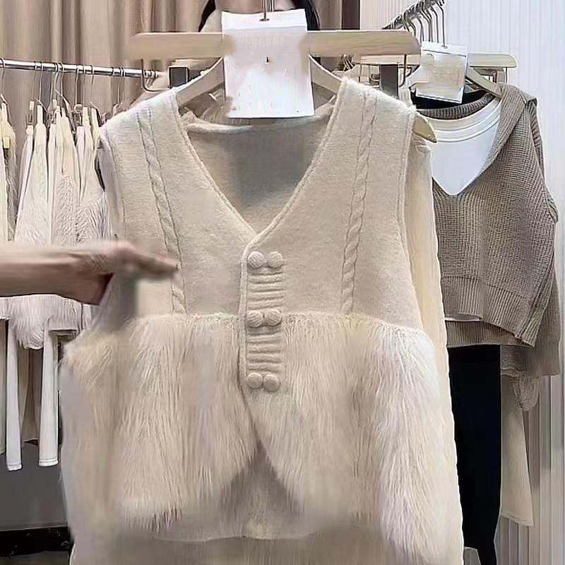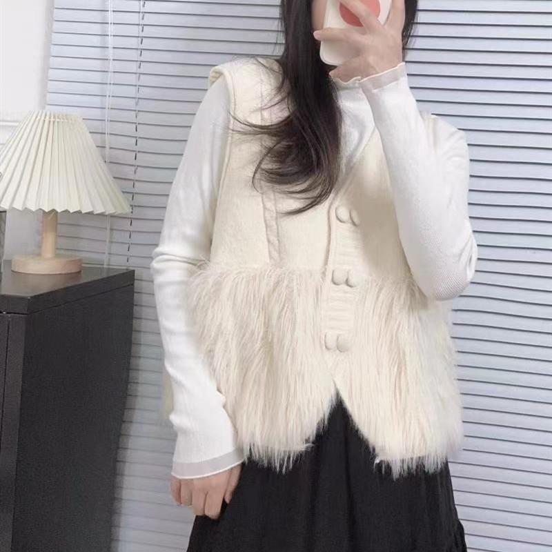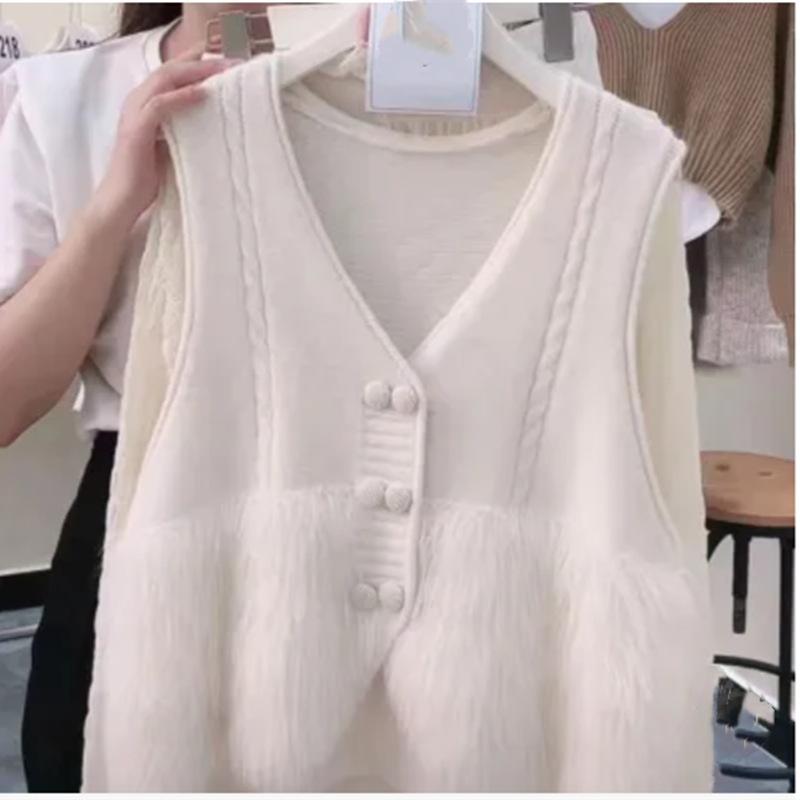 Chaqueta Cárdigan sin Mangas con Cuello en V y Costuras para Mujer Otoño 2024 Nueva Moda Estilo Occidental de Moda Chaleco de Punto de Moda