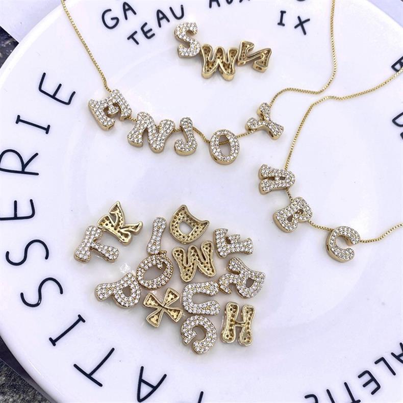 Nuevo juego de colgantes con 26 letras en inglés, de circonita fina dorada, para pulsera y collar, accesorios DIY.