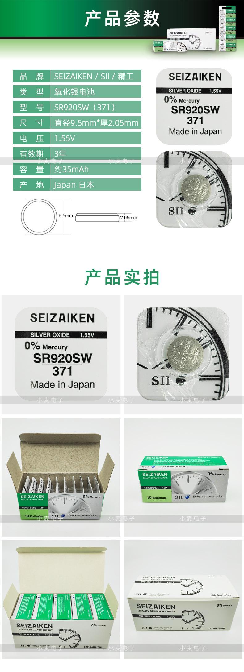 SEIZAIKEN Pila de Botón Seiko 371/SR920SW Reloj Electrónico Shi Ying Importado Óxido de Plata Electrónica