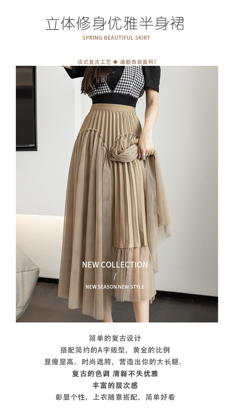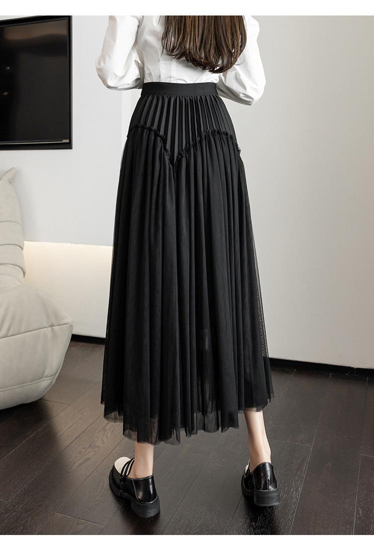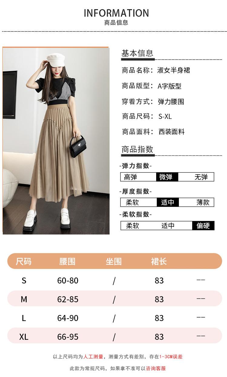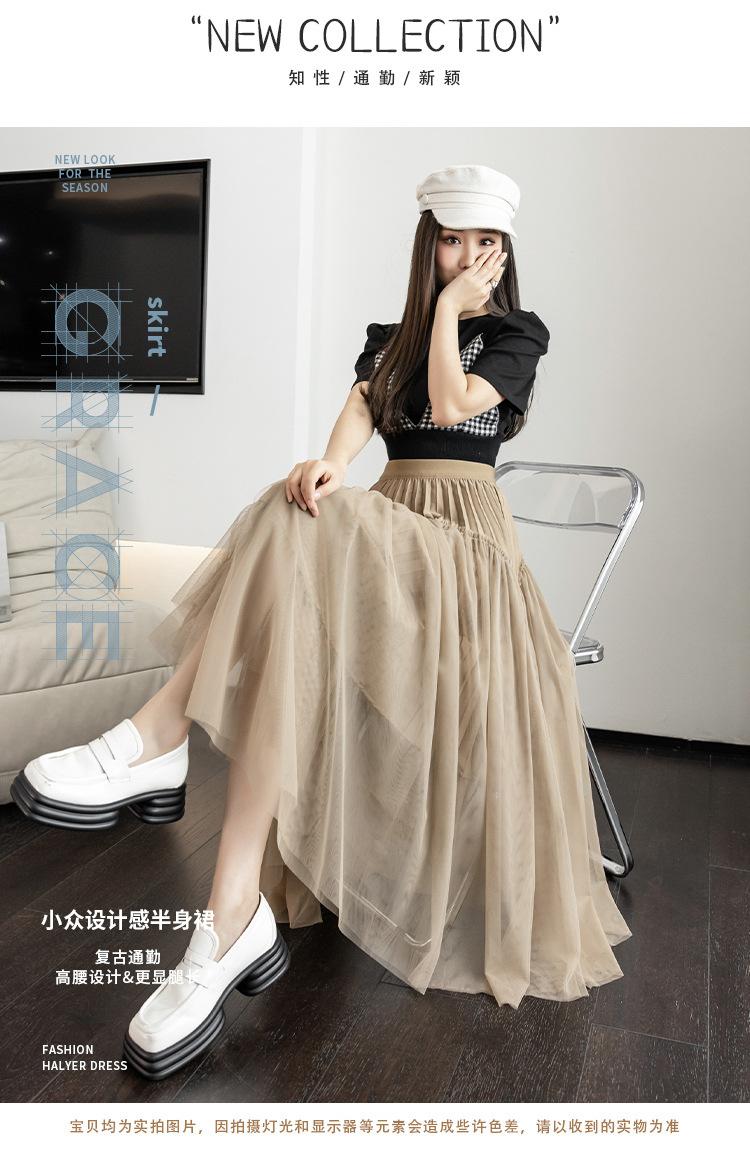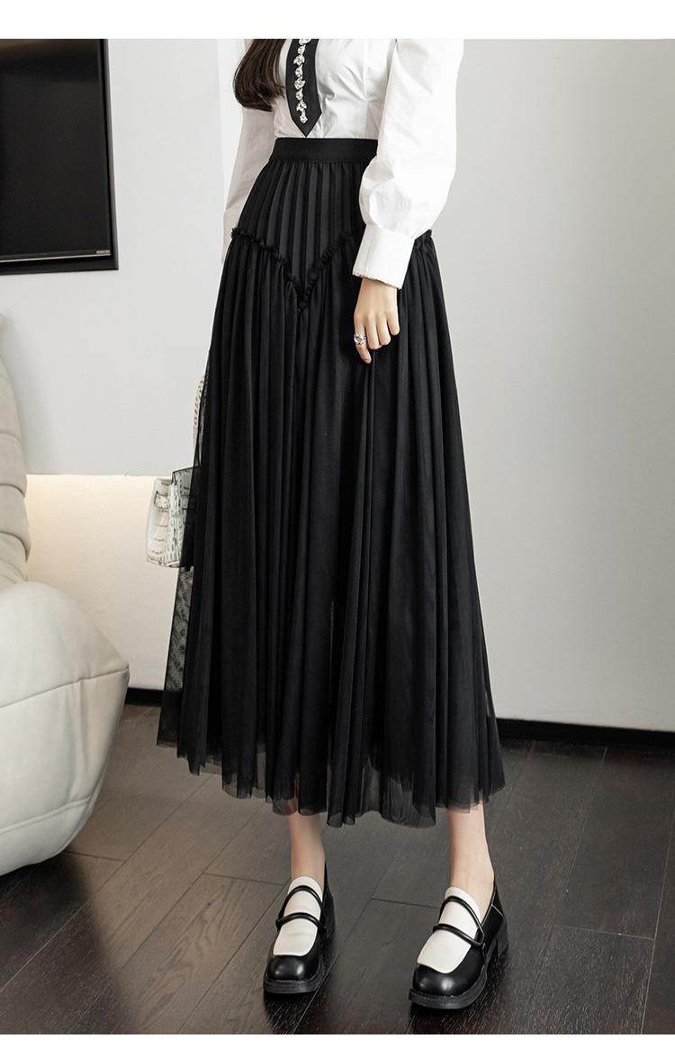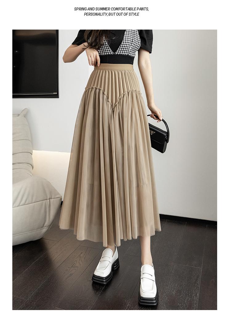 Falda de Malla de Diseño Francés para Mujer 2023 Verano Nuevo Cintura Alta Ajustada Media Longitud A-Línea Falda Plisada