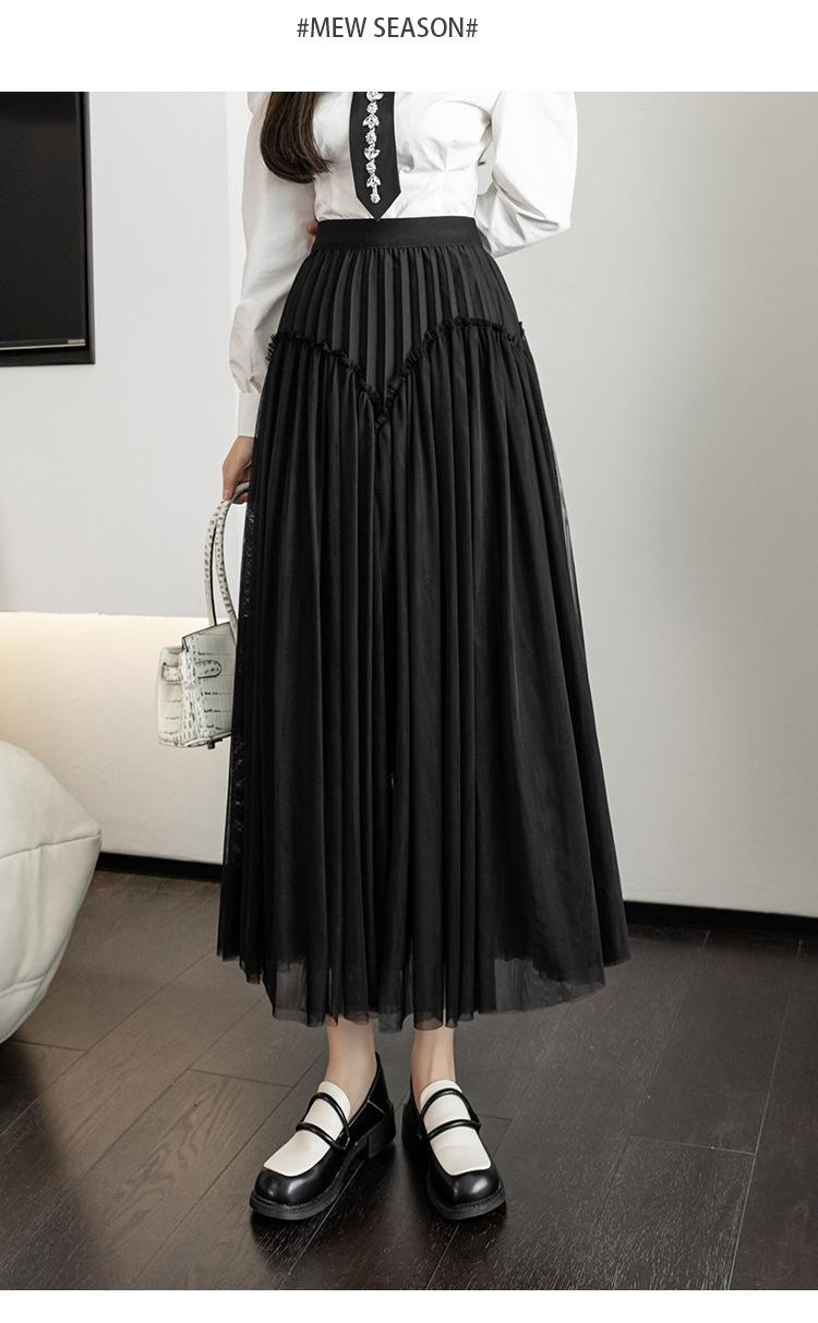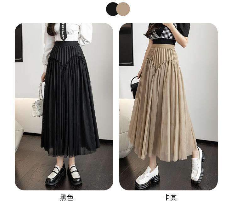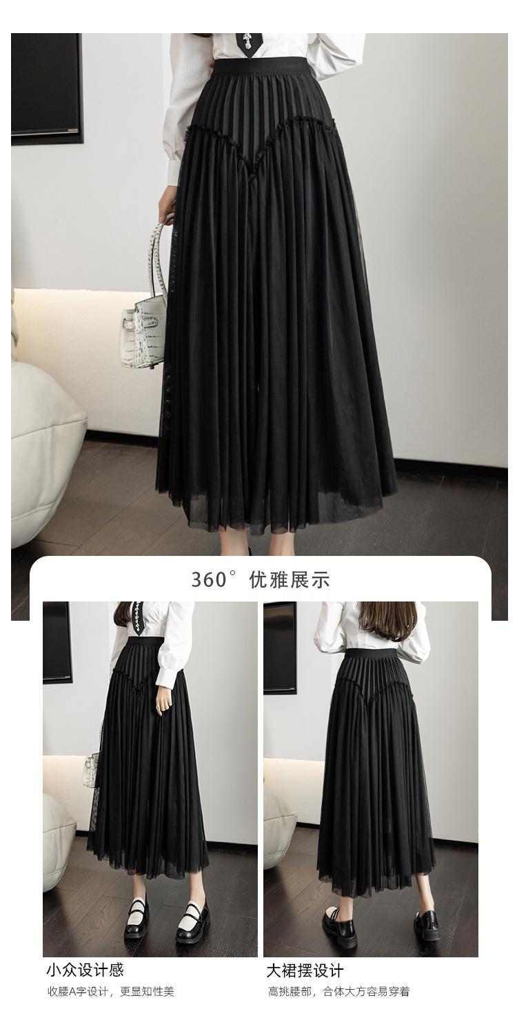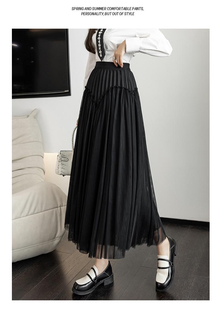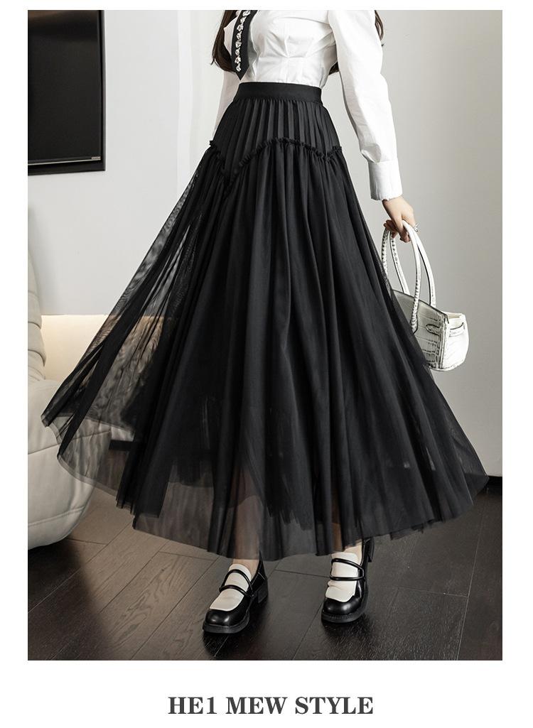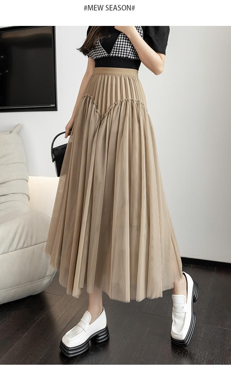 Falda de Malla de Diseño Francés para Mujer 2023 Verano Nuevo Cintura Alta Ajustada Media Longitud A-Línea Falda Plisada
