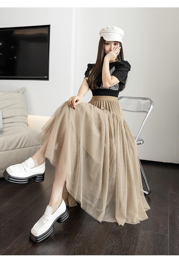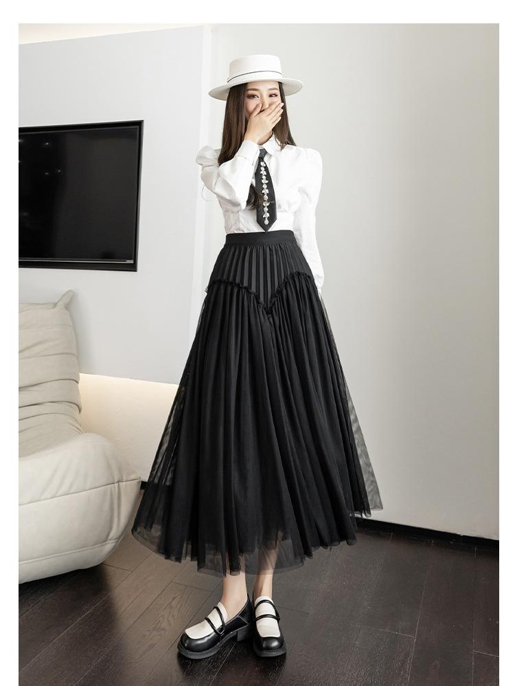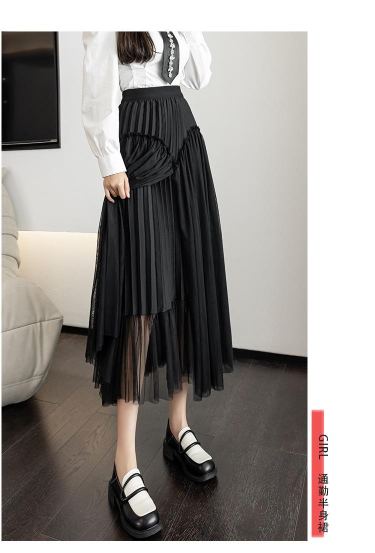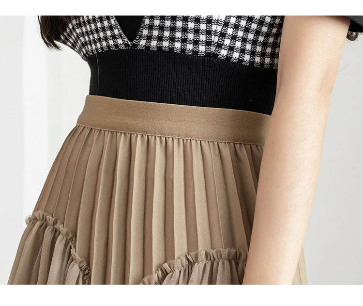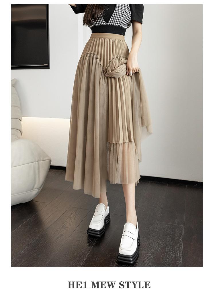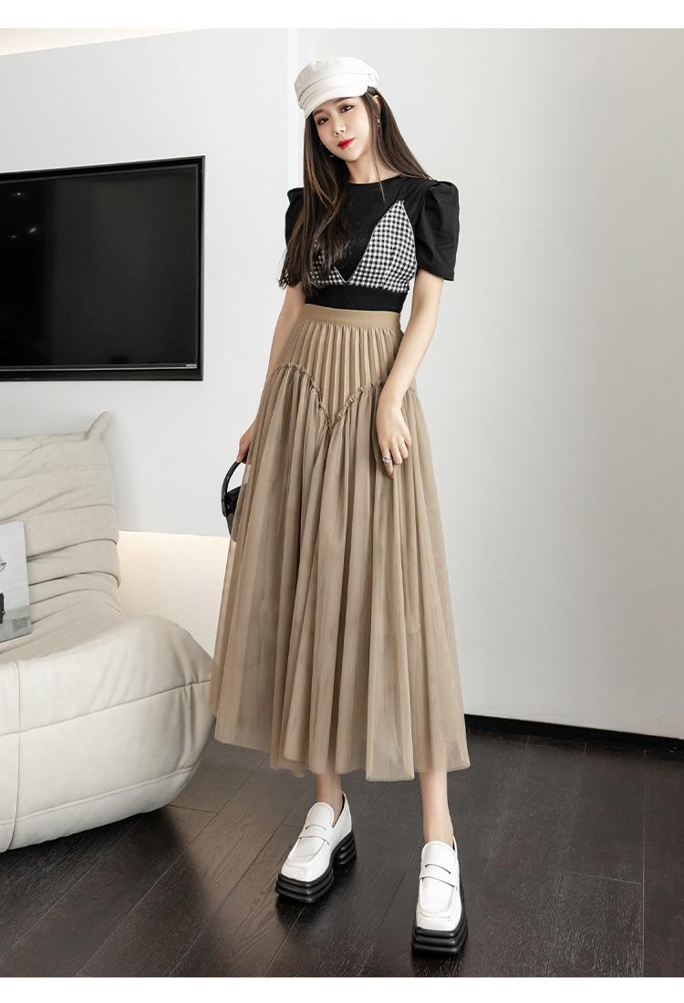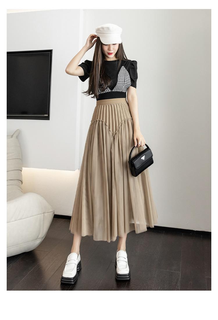 Falda de Malla de Diseño Francés para Mujer 2023 Verano Nuevo Cintura Alta Ajustada Media Longitud A-Línea Falda Plisada