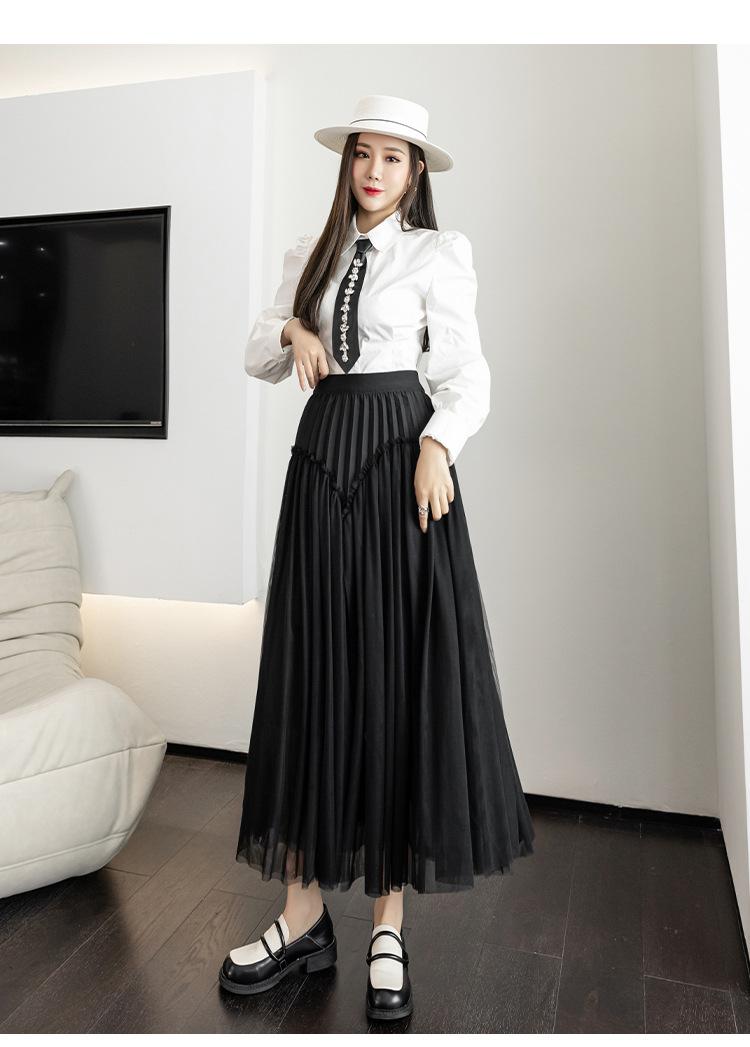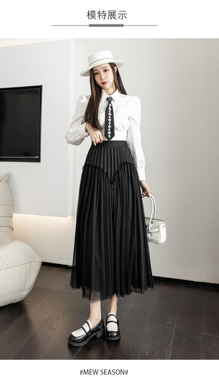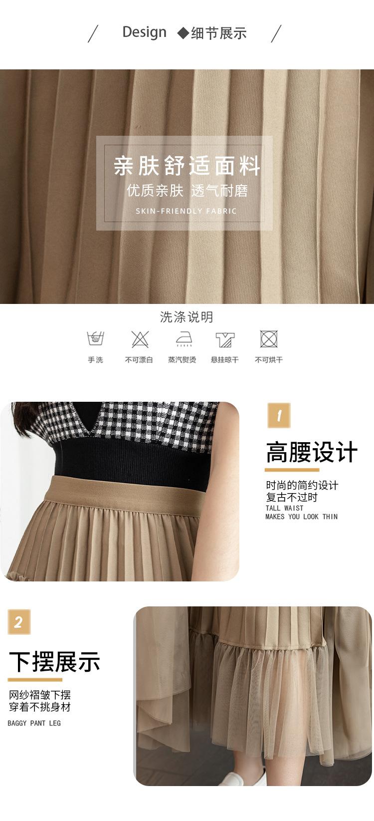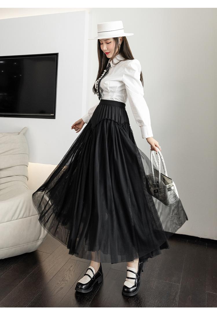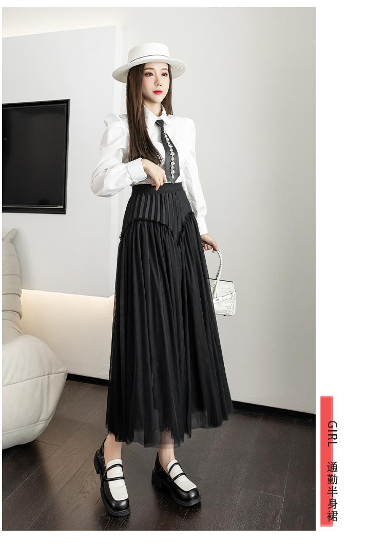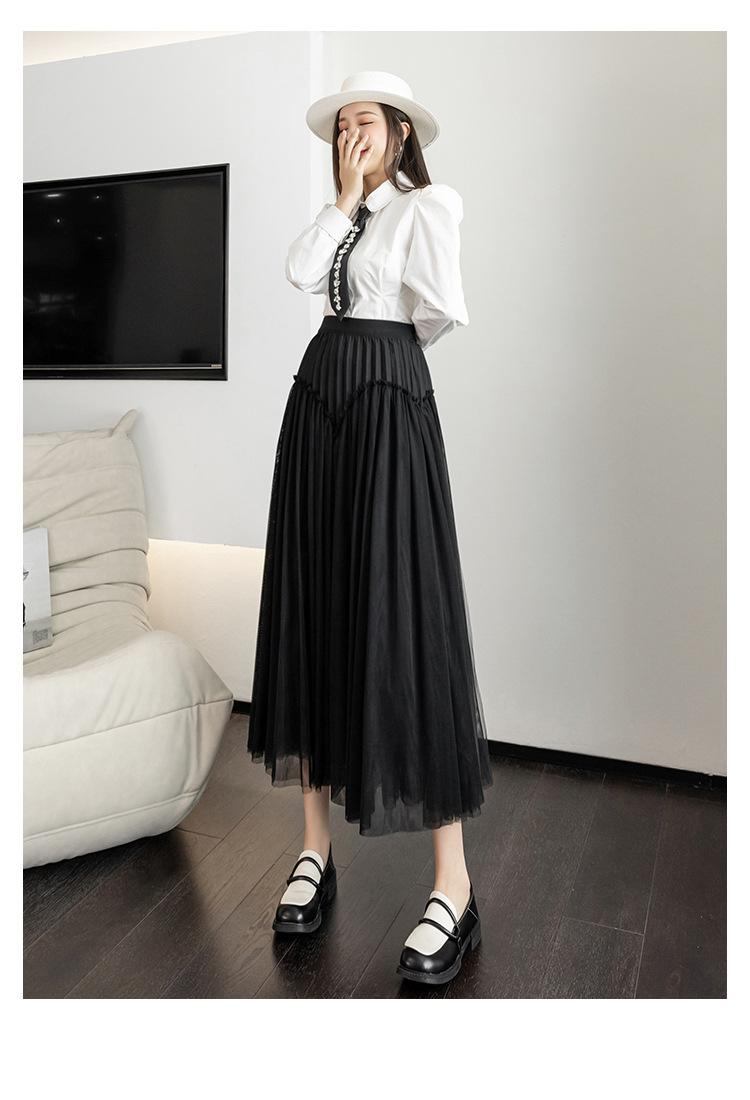 Falda de Malla de Diseño Francés para Mujer 2023 Verano Nuevo Cintura Alta Ajustada Media Longitud A-Línea Falda Plisada