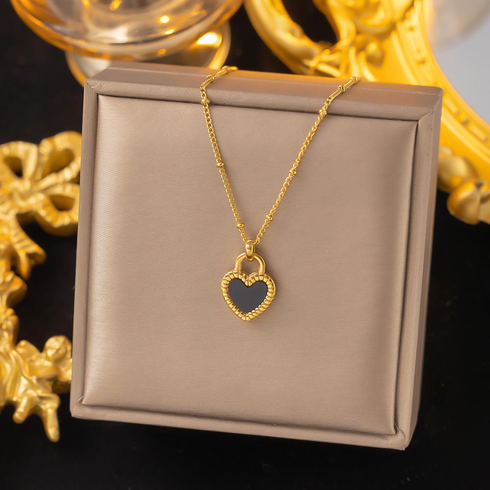 P041 black and white heart necklace gold, P163 black and white heart necklace Rose, P164 black and white heart...