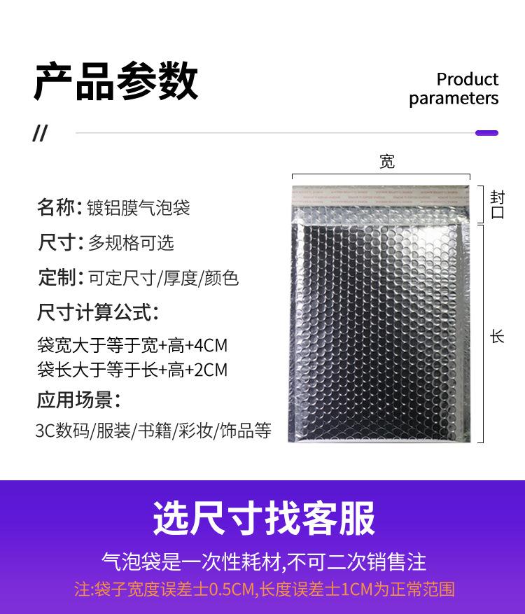 Bolsa de Burbujas de Película Aluminizada Plateada Engrosada Bolsa Autoadhesiva Embalaje a Prueba de Luz Ropa Bolsa de Embalaje Express Bolsa de Espuma Venta al por Mayor