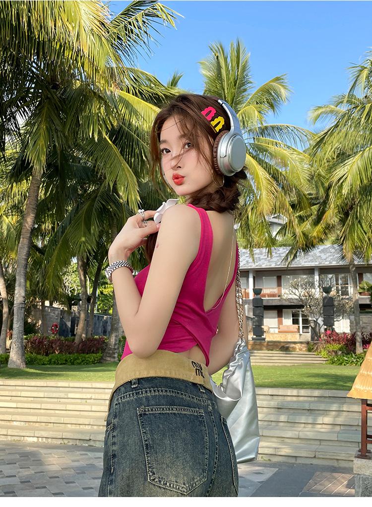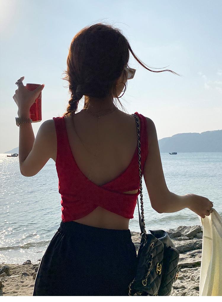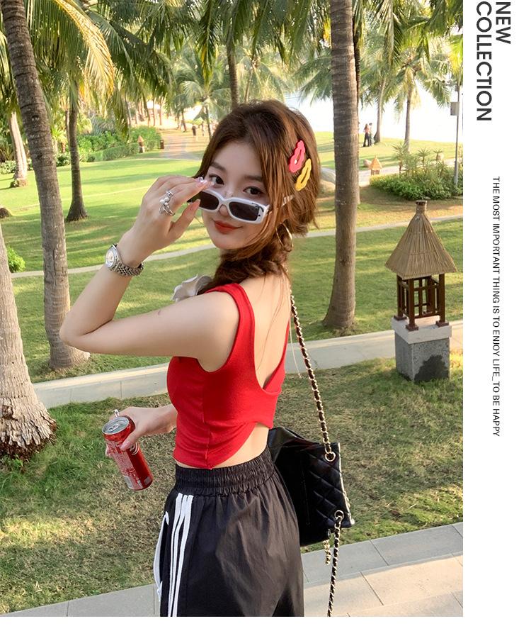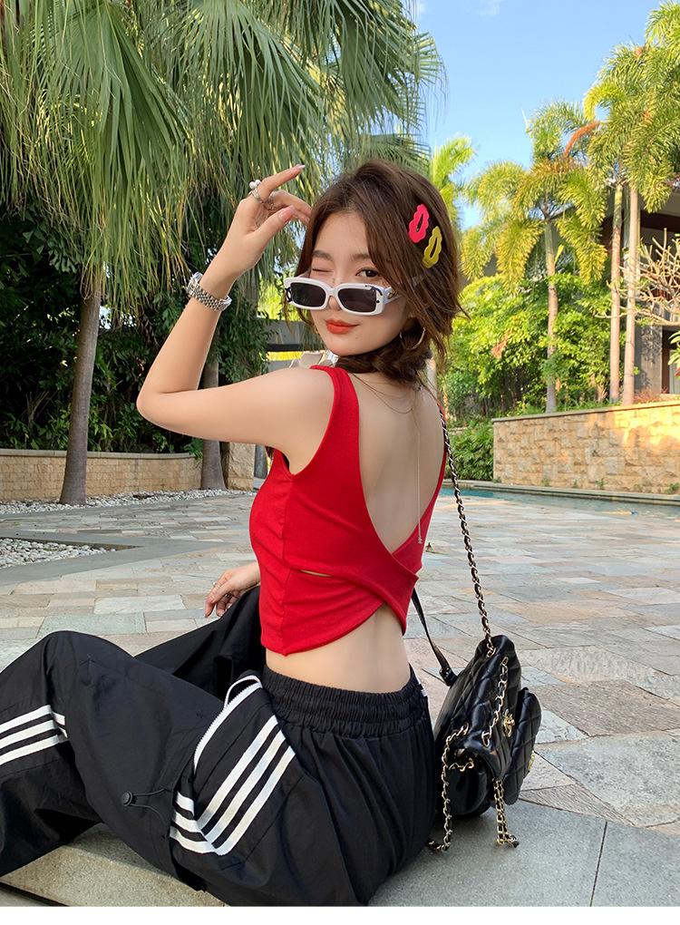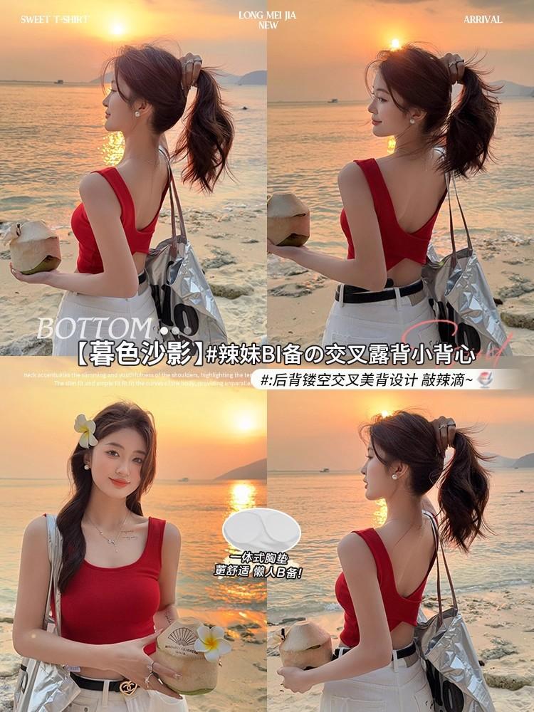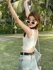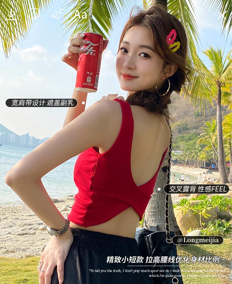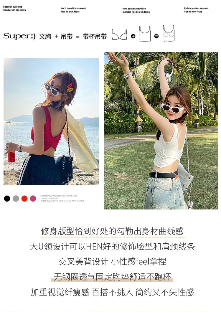 Camisola con Almohadillas para el Busto para Mujer, Nuevo Estilo Verano 2025, Espalda Hermosa, Chaleco Americano sin Espalda, Parte Inferior Corta para Usar Debajo o como Prenda Exterior