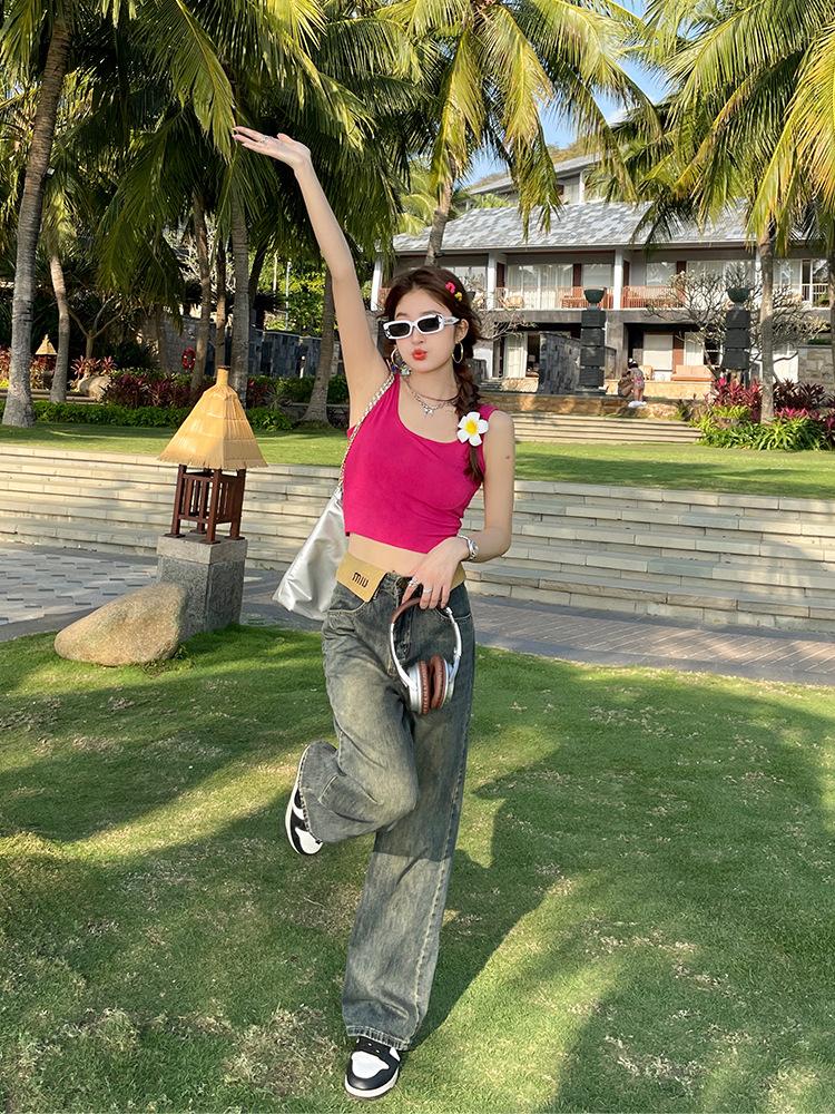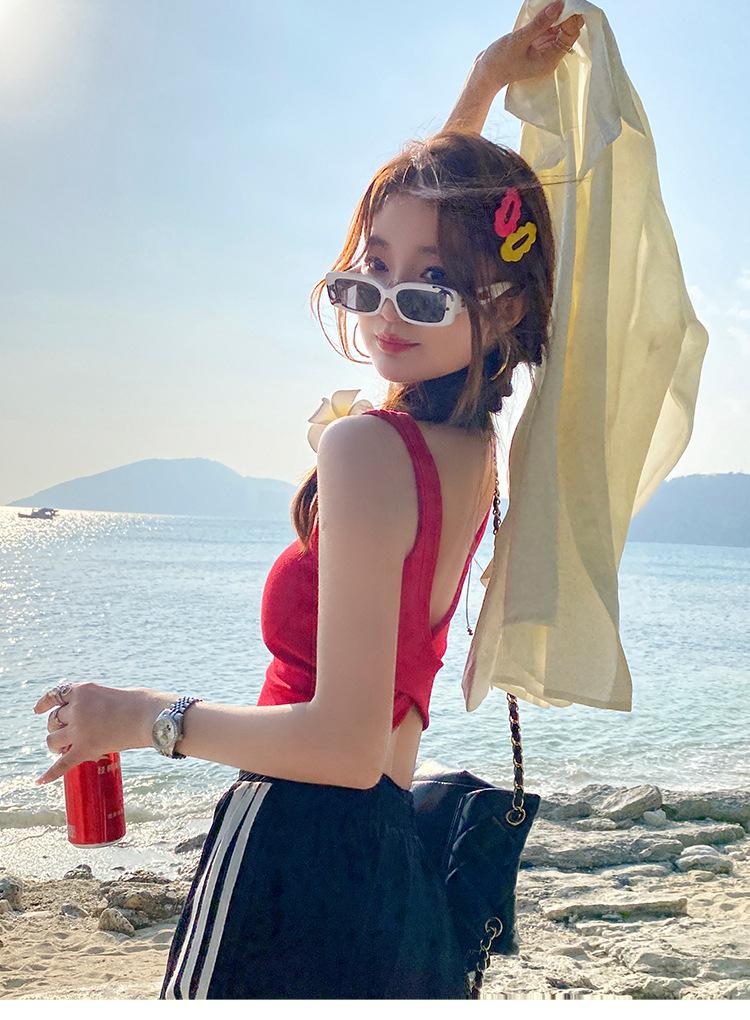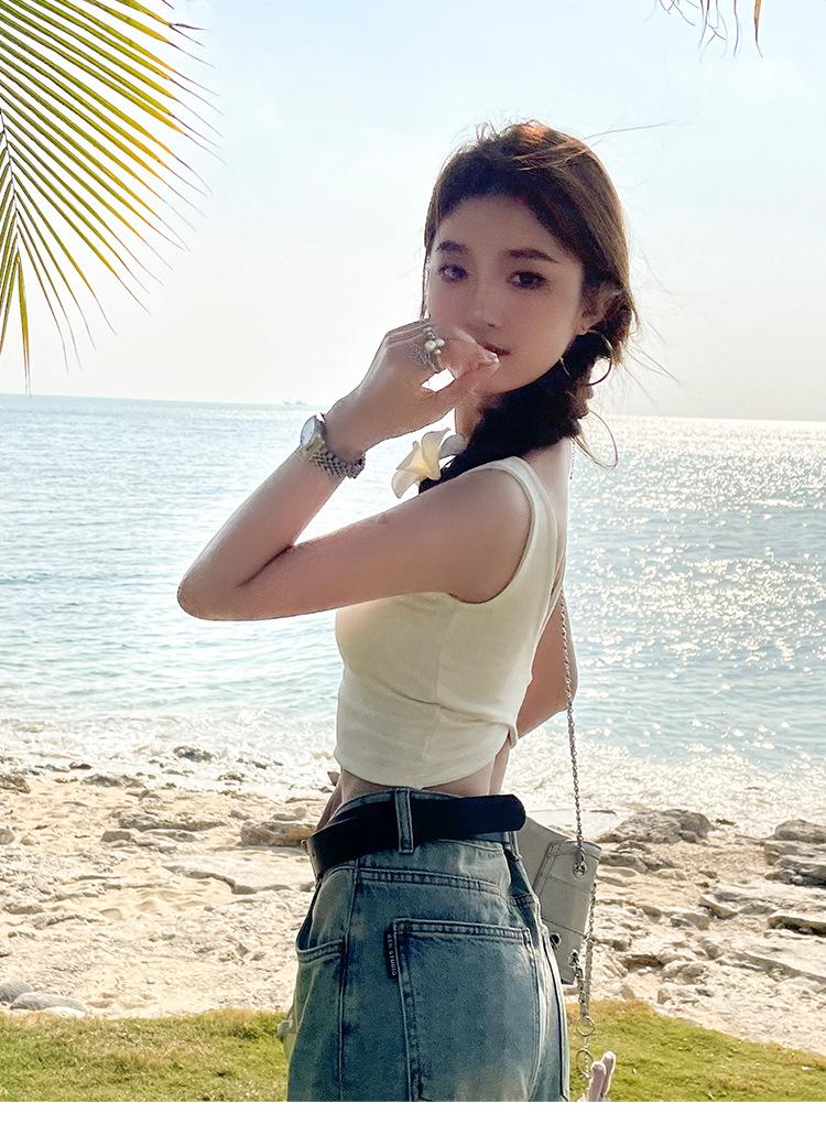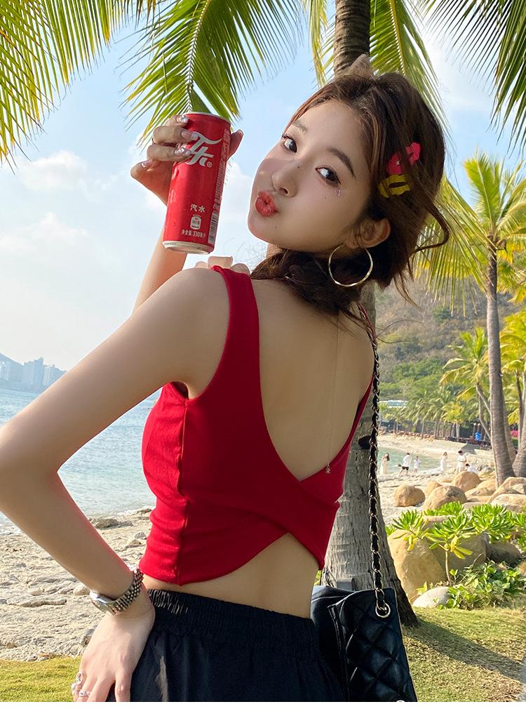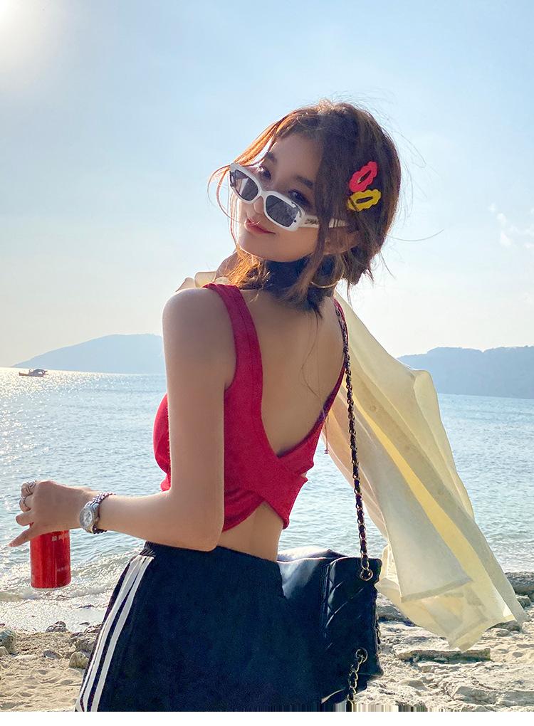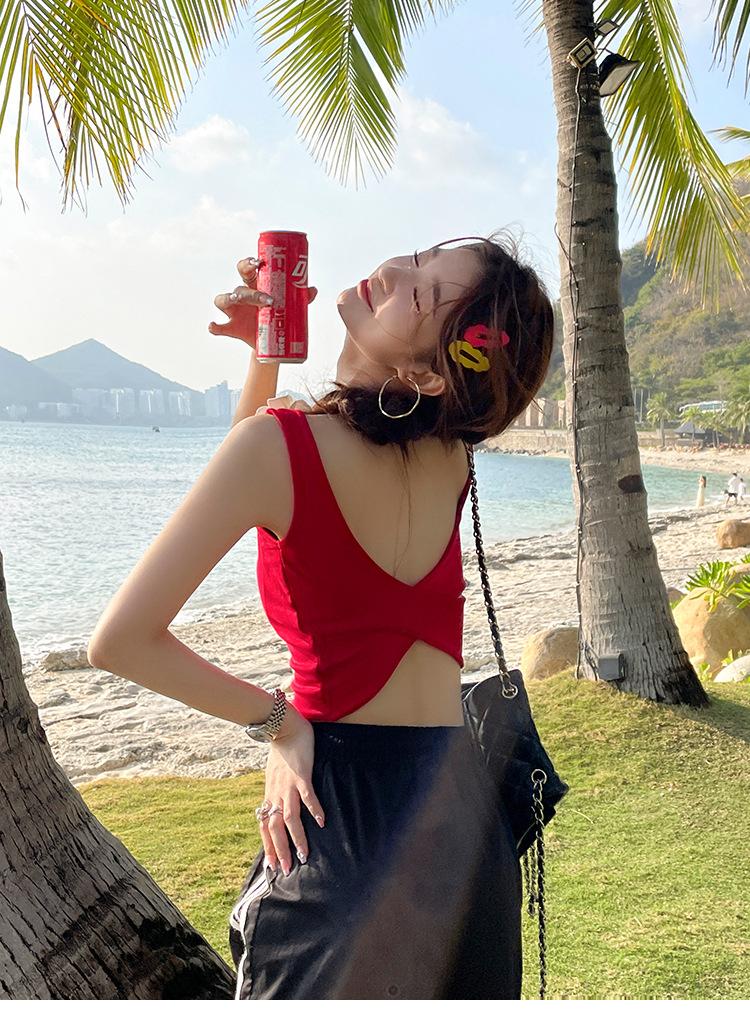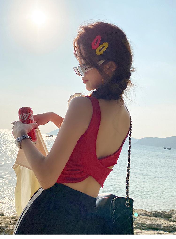 Camisola con Almohadillas para el Busto para Mujer, Nuevo Estilo Verano 2025, Espalda Hermosa, Chaleco Americano sin Espalda, Parte Inferior Corta para Usar Debajo o como Prenda Exterior