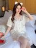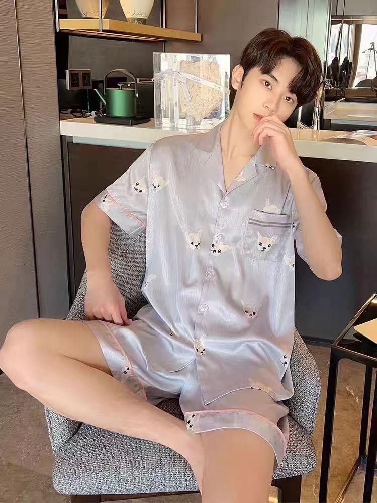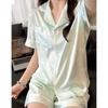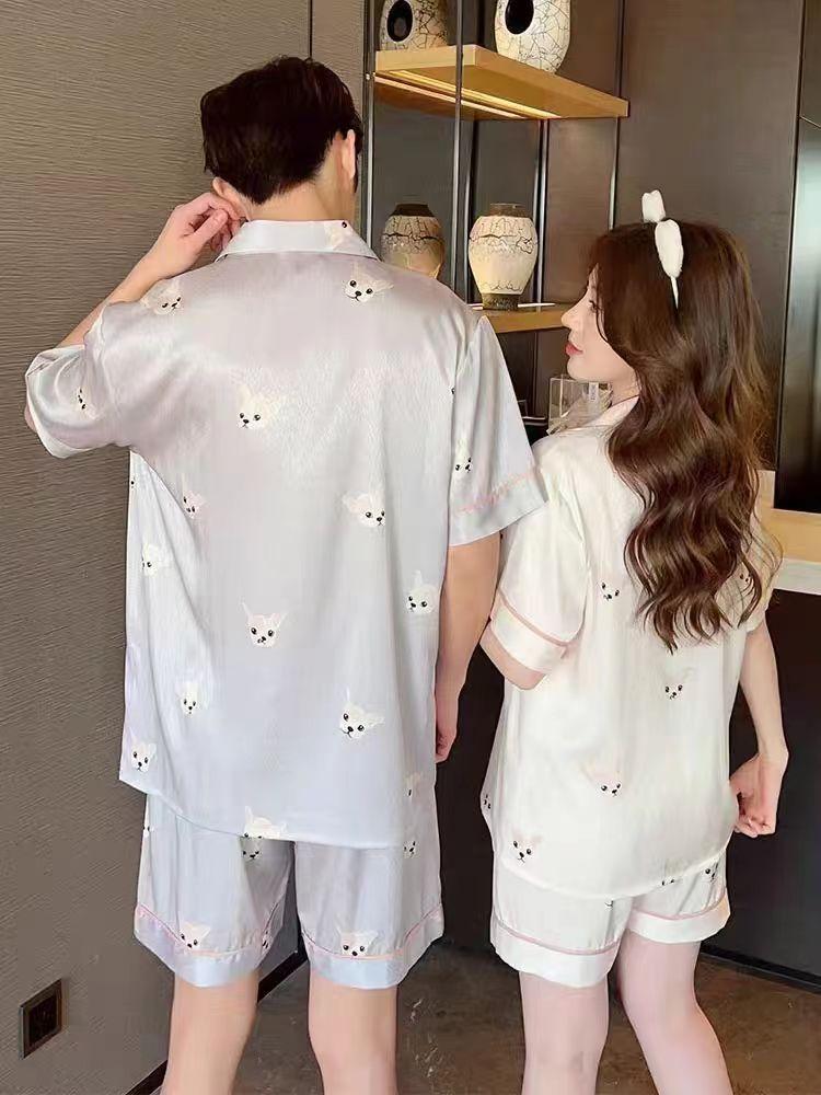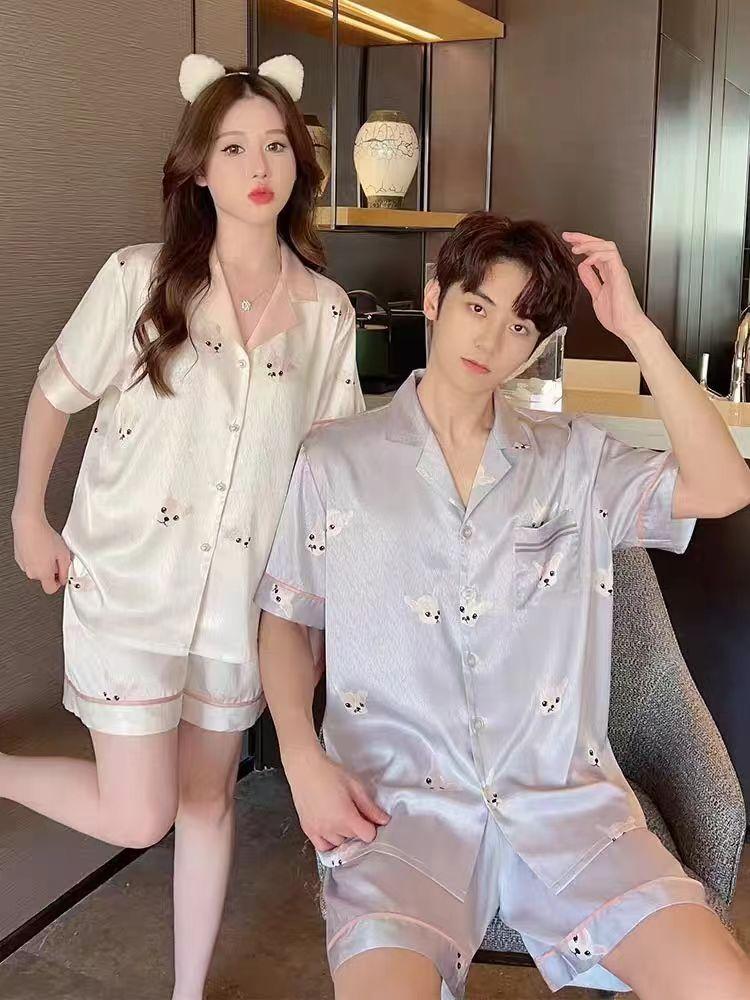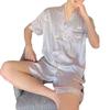 Pijama de Manga Corta para Mujer 2023 Verano Seda de Hielo Delgada Conjunto de Dos Piezas Ropa de Casa para Pareja Fresca y Transpirable Ocio en Casa