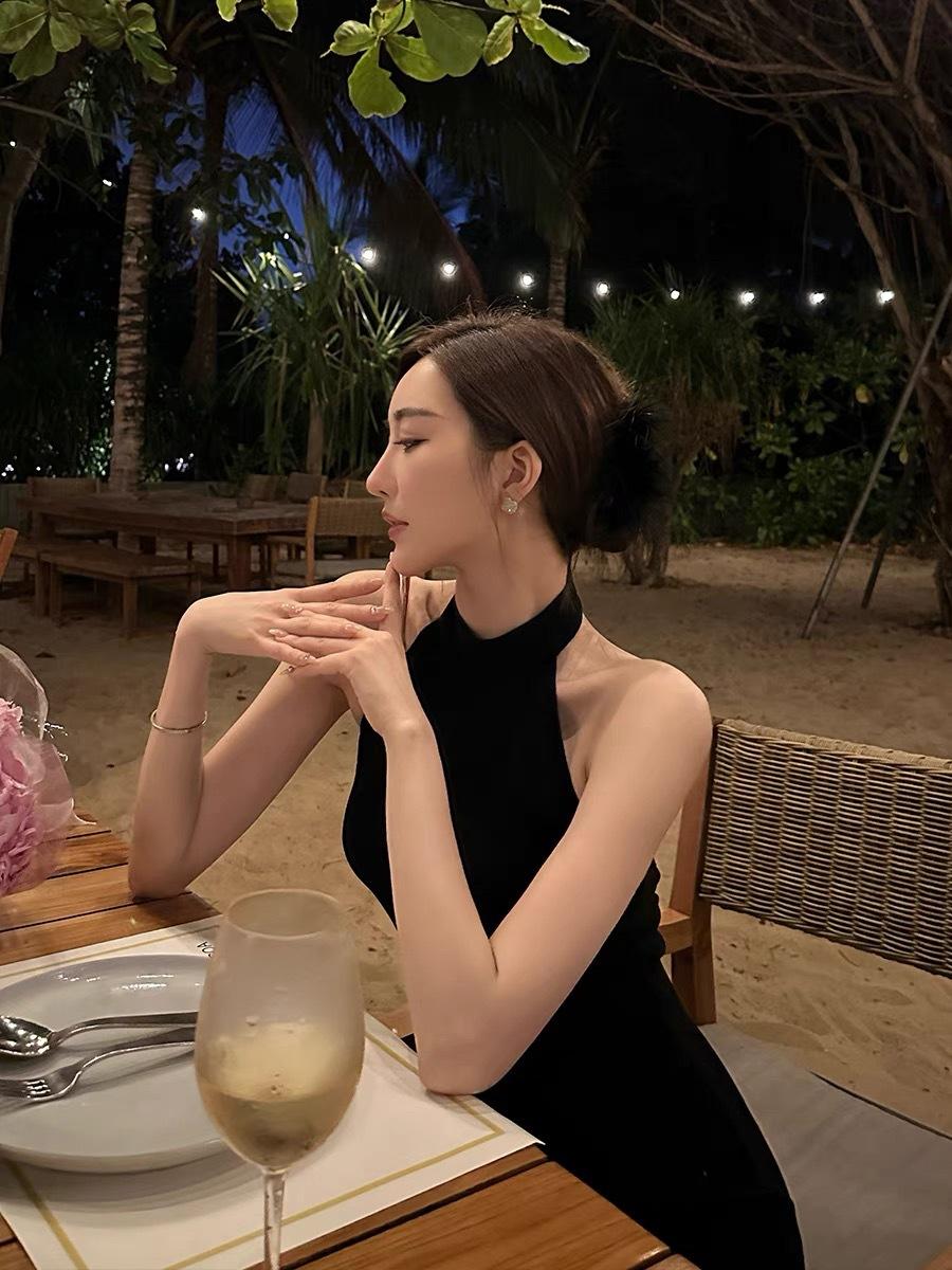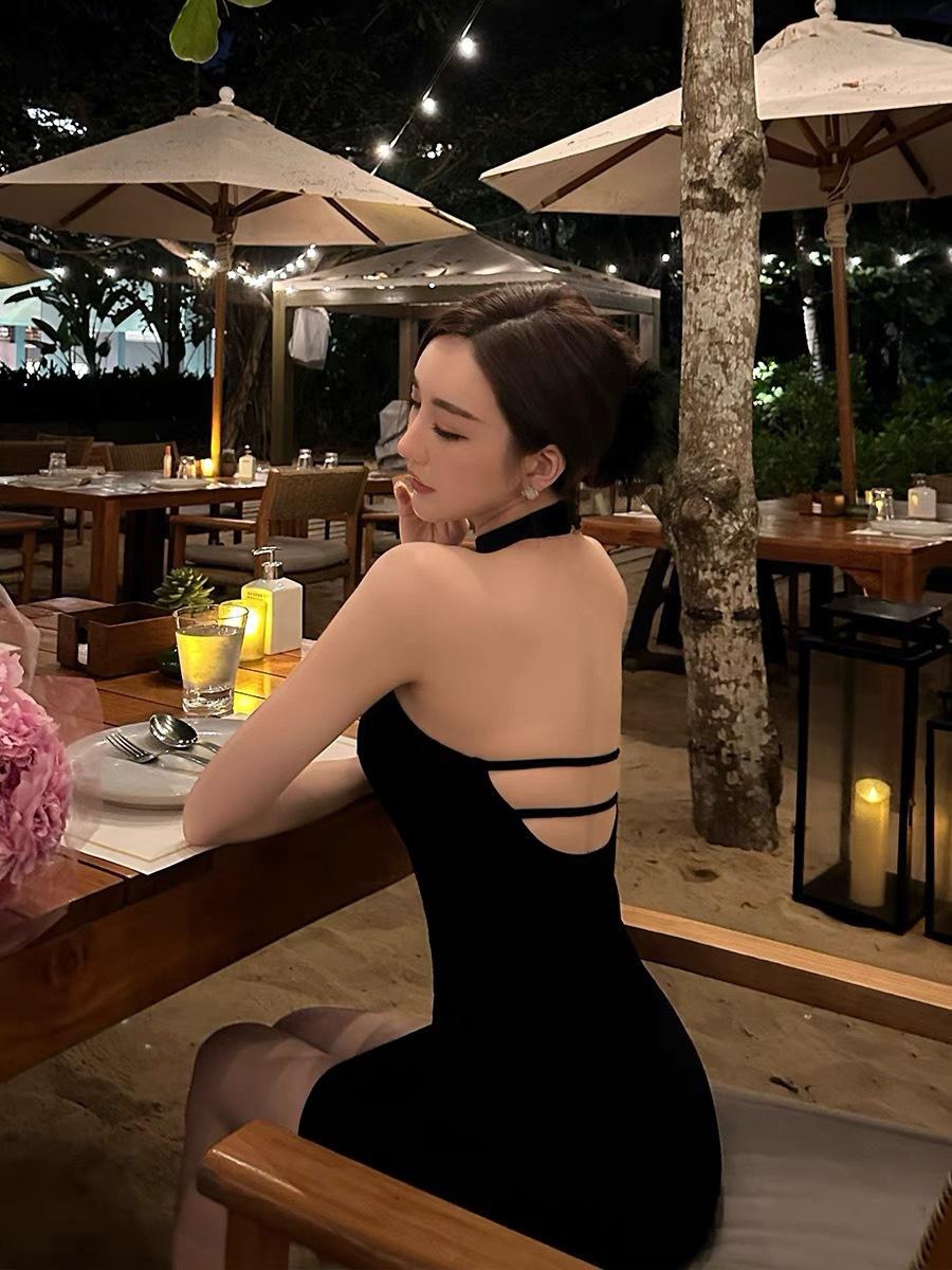 Vestido Halter Sexy sin Espalda con Hombros Descubiertos para Mujer, Elegante y Sofisticado Socialité Deseo Puro Ajustado Bodycon