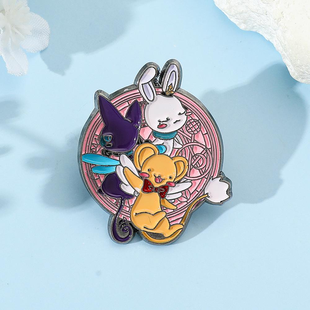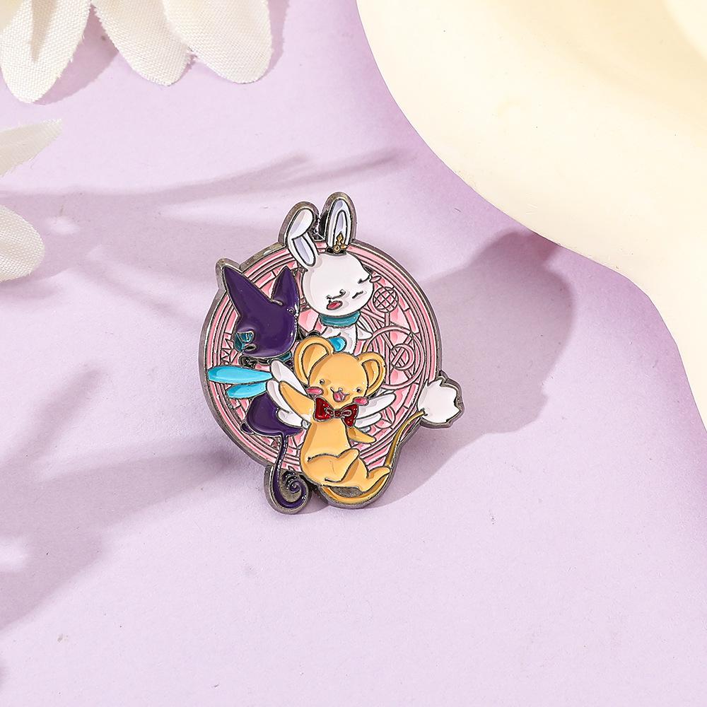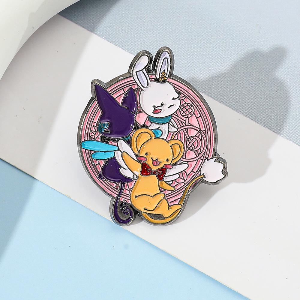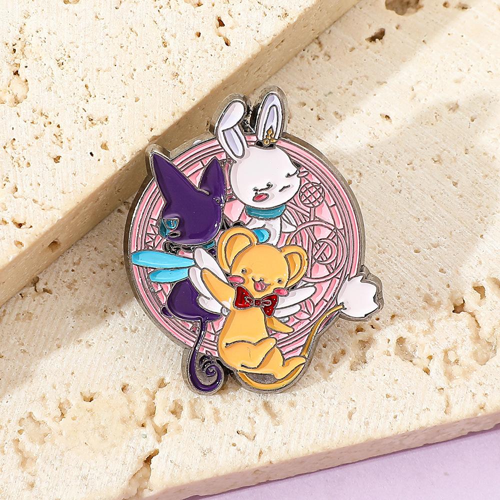 Dibujo Animado Japonés Lindo Chica de la Tarjeta Mágica Sakura Insignia de Metal Accesorios Conejo Mascota Aleación Broche Pin Decoración