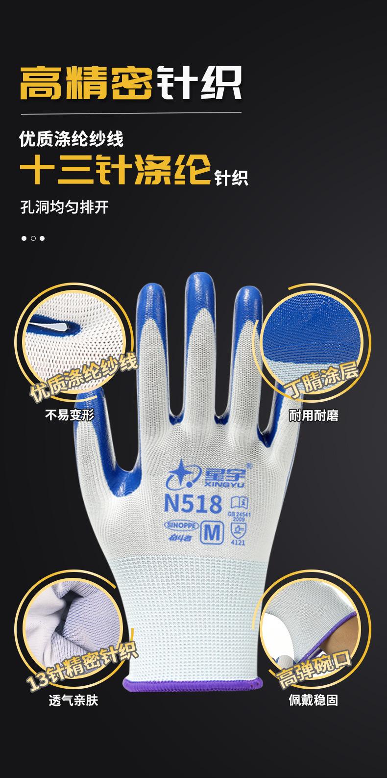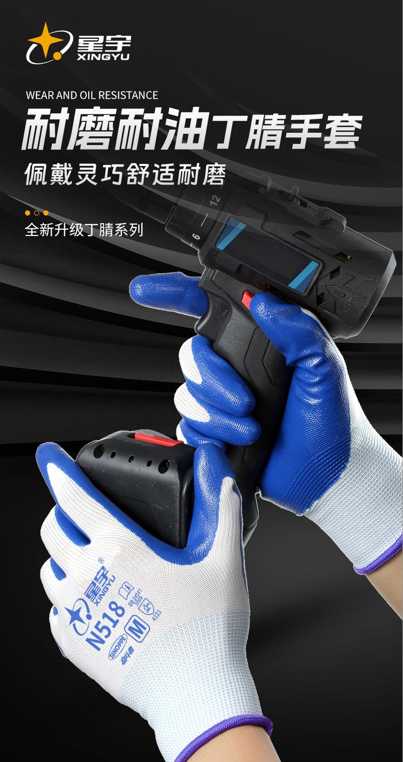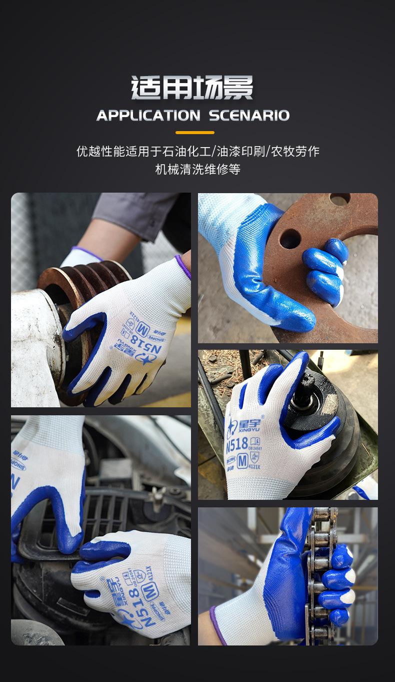 Guantes de protección laboral Xingyu, bañados en nitrilo, resistentes al desgaste, a prueba de aceite, antideslizantes, transpirables, para mantenimiento del sitio.