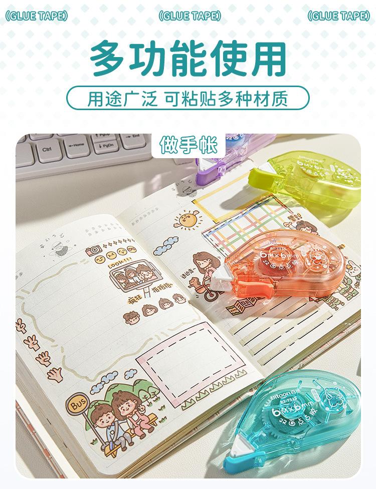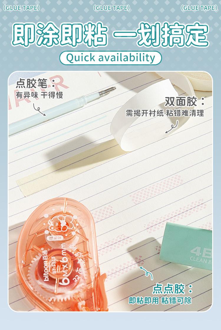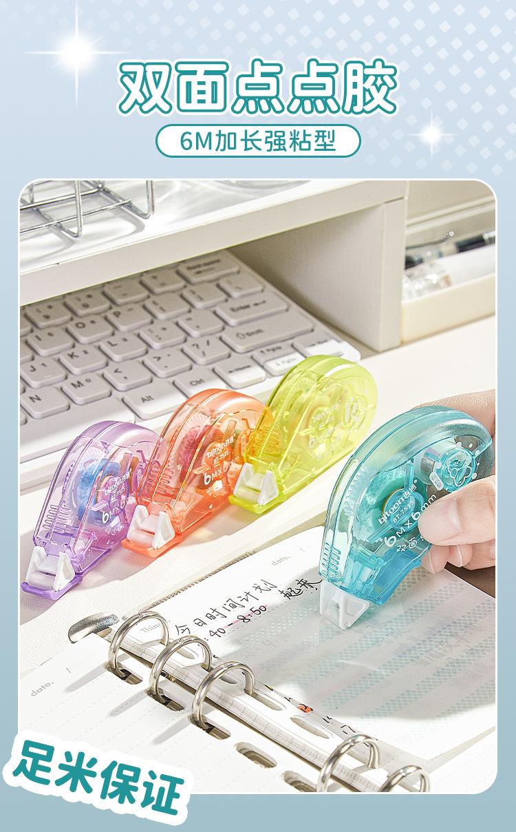 Cinta adhesiva de puntos Baitong de doble cara para estudiantes con cinta correctora, cuenta de mano, gran capacidad, cinta adhesiva de doble cara para uso manual