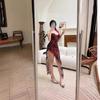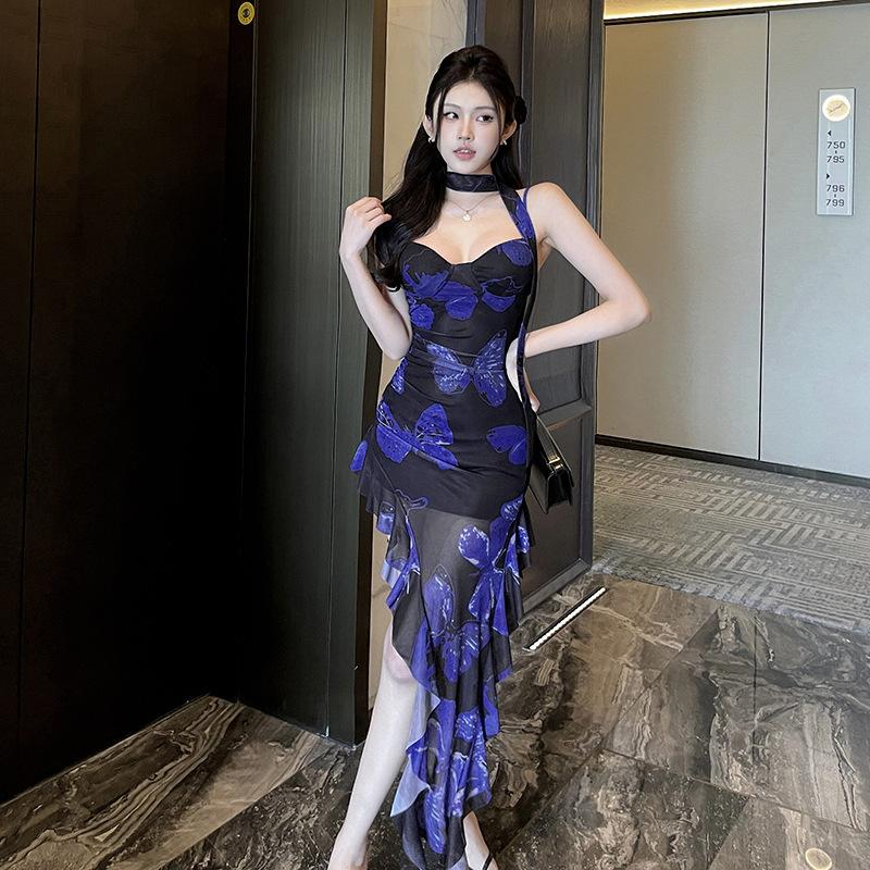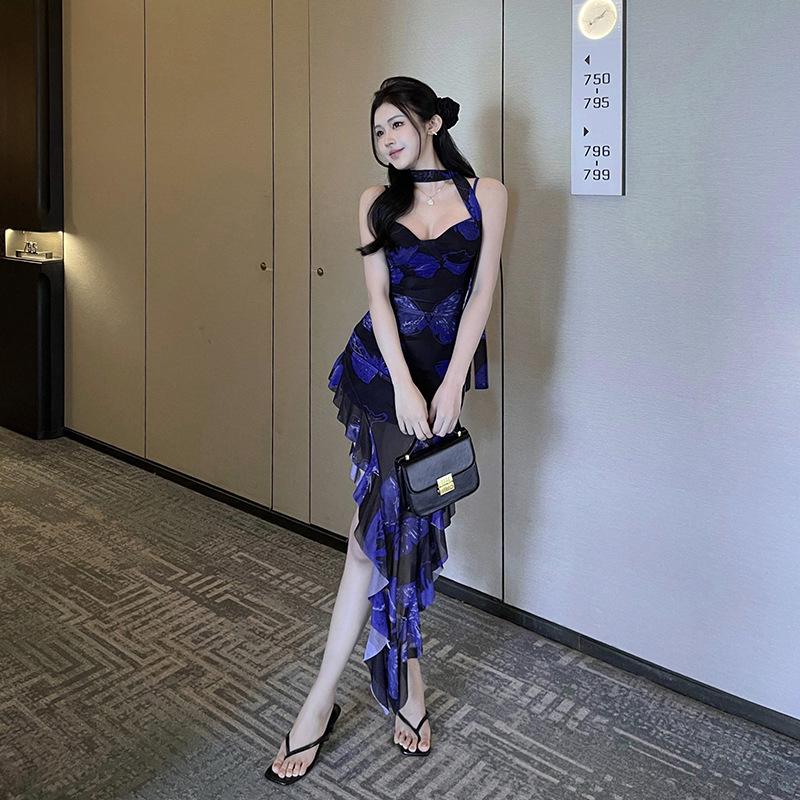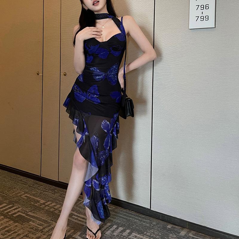 YY24041 Primavera 2024 nueva falda de cadera sexy estilo europeo y americano temperamento tirantes finos vestido de línea A para mujer |