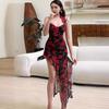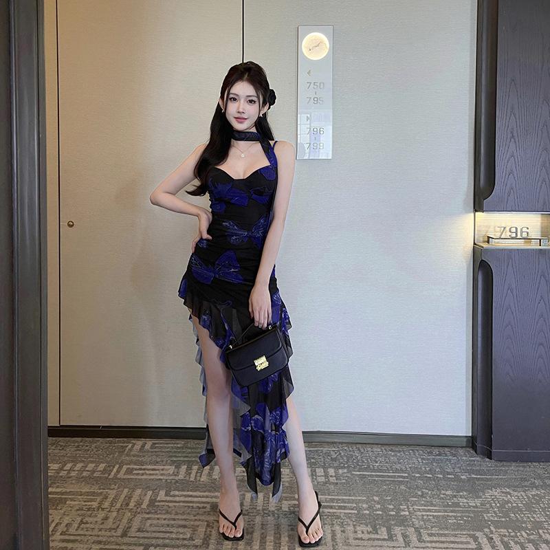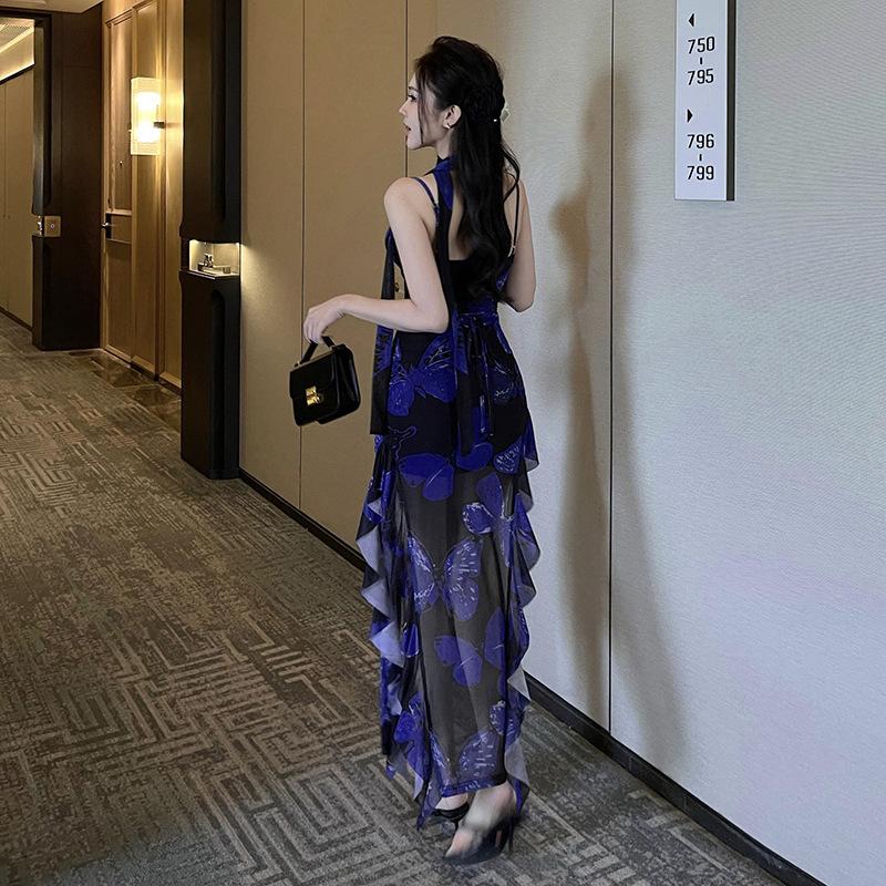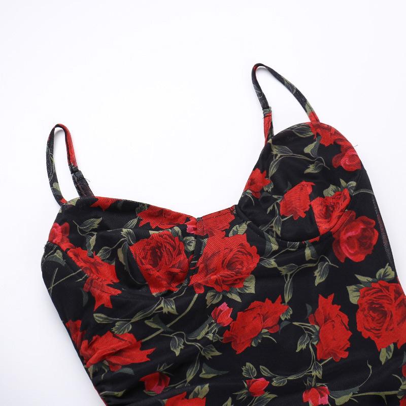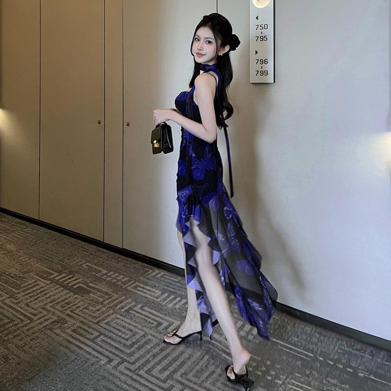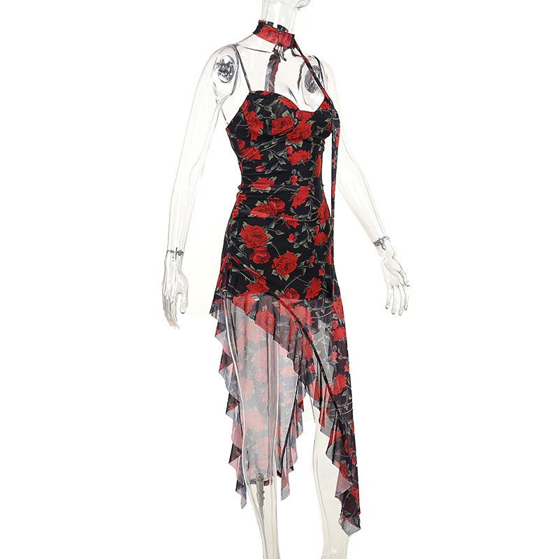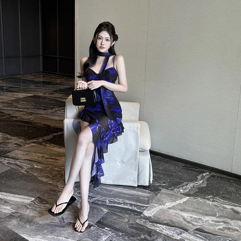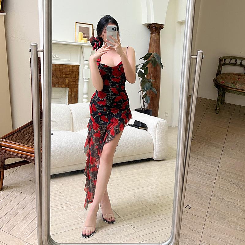 JY23103 - Falda larga con tirantes y estampado floral en el pecho para mujer, ropa transfronteriza, vestido de cintura estrecha, 2023 |