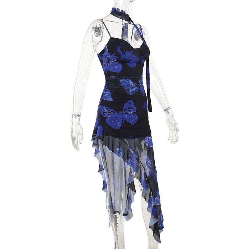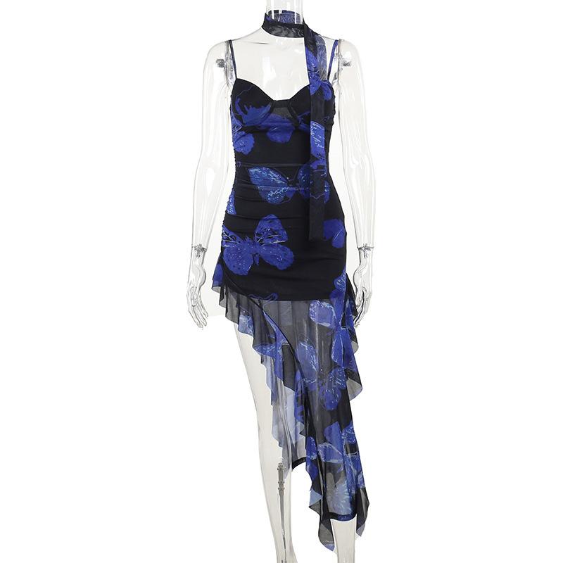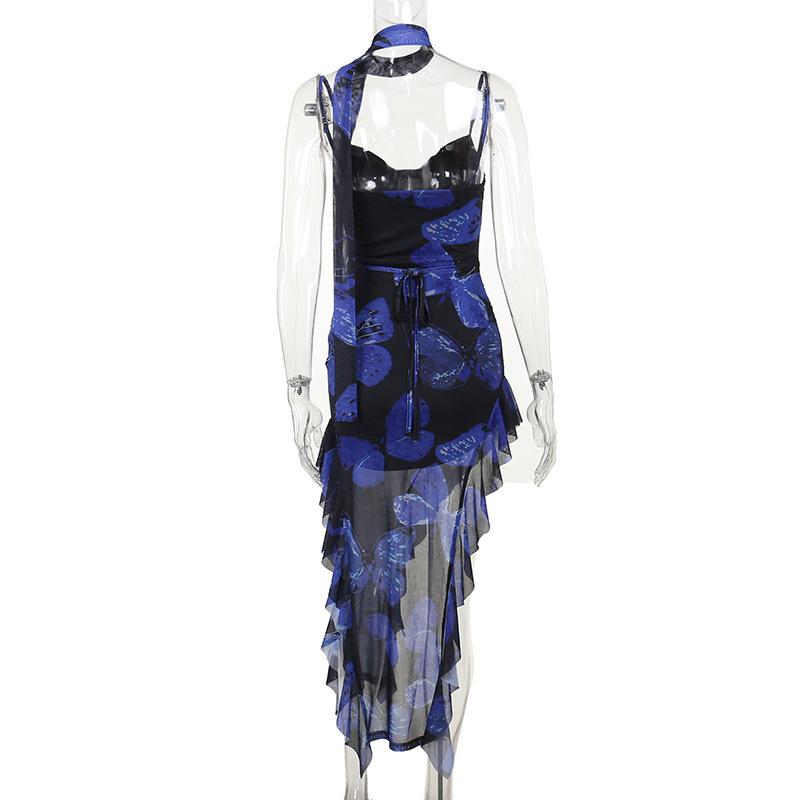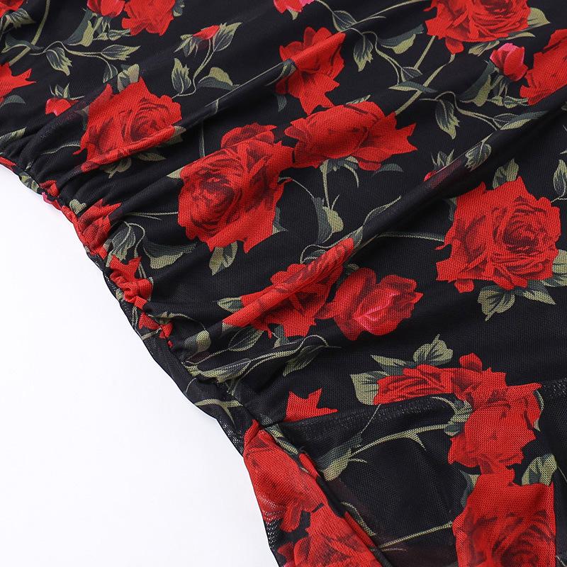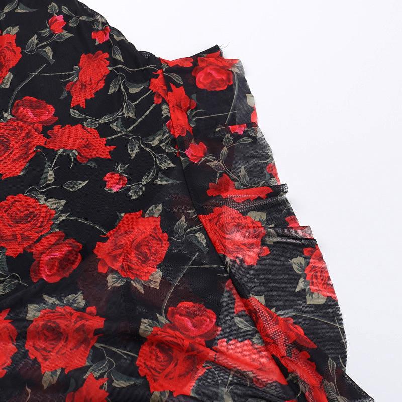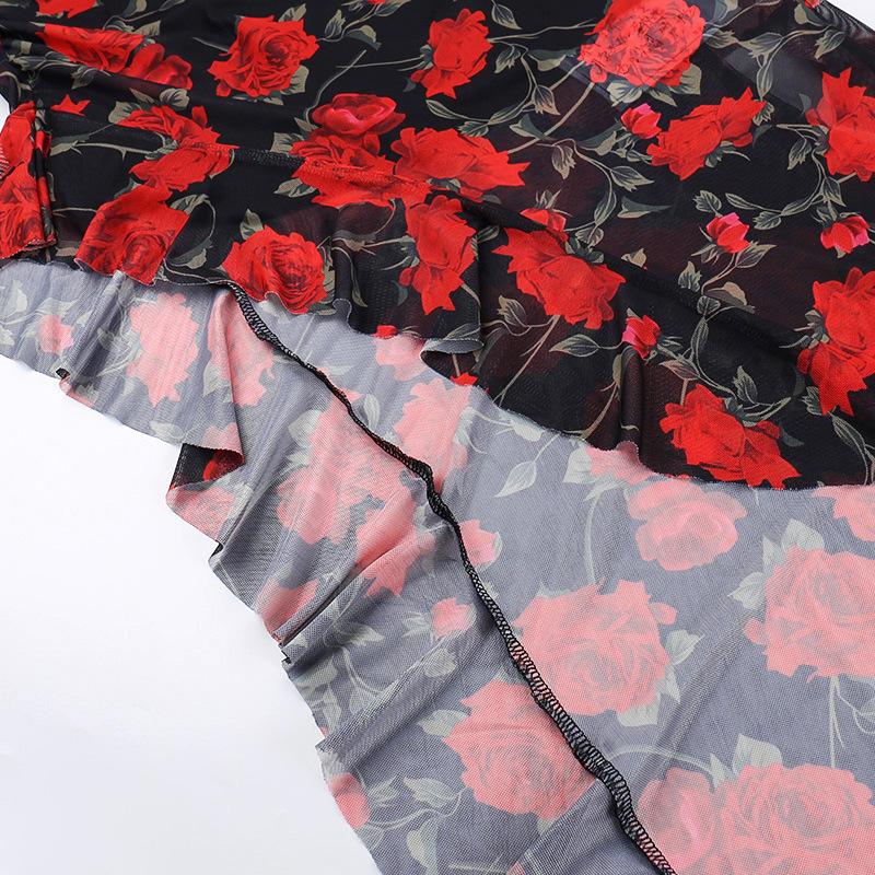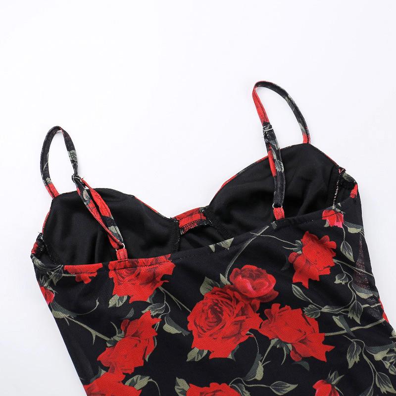 JY23103 - Falda larga con tirantes y estampado floral en el pecho para mujer, ropa transfronteriza, vestido de cintura estrecha, 2023 |