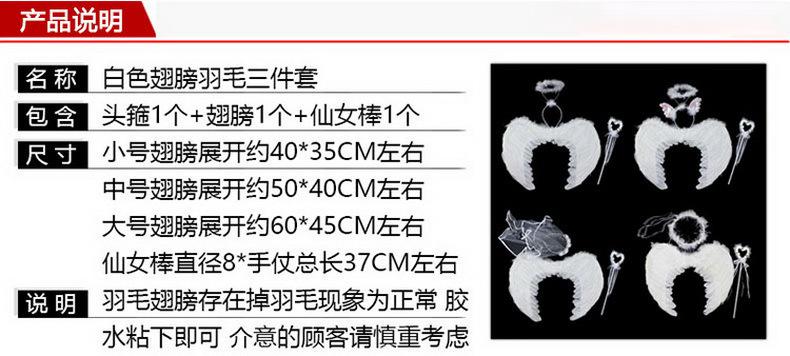 White 45×35 wings + fairy wand + angel headband, White 55×40 wings + fairy wand + angel headband, White 60×45 ...