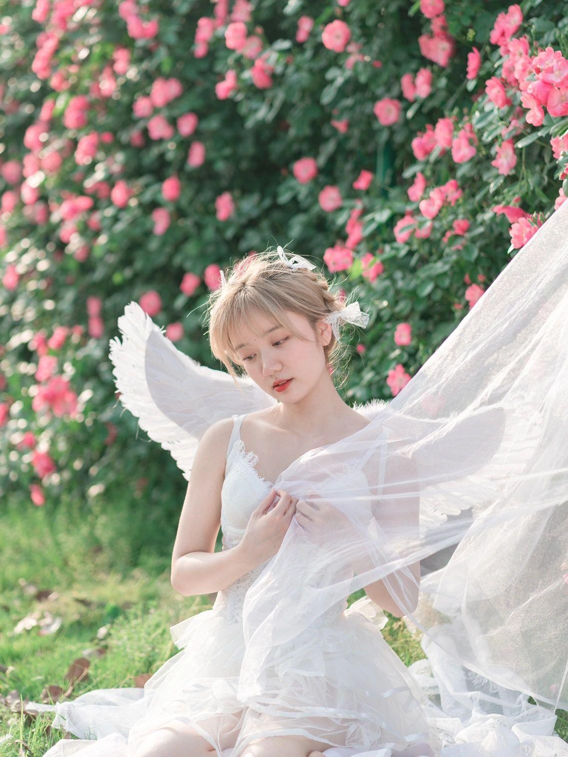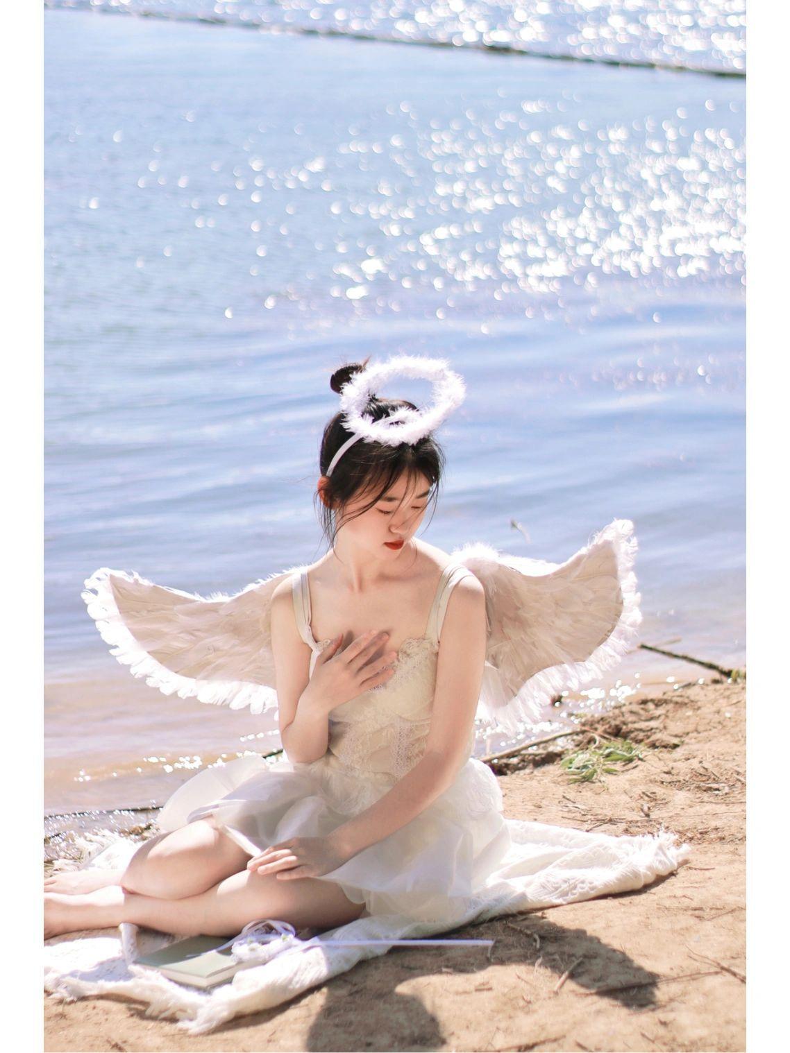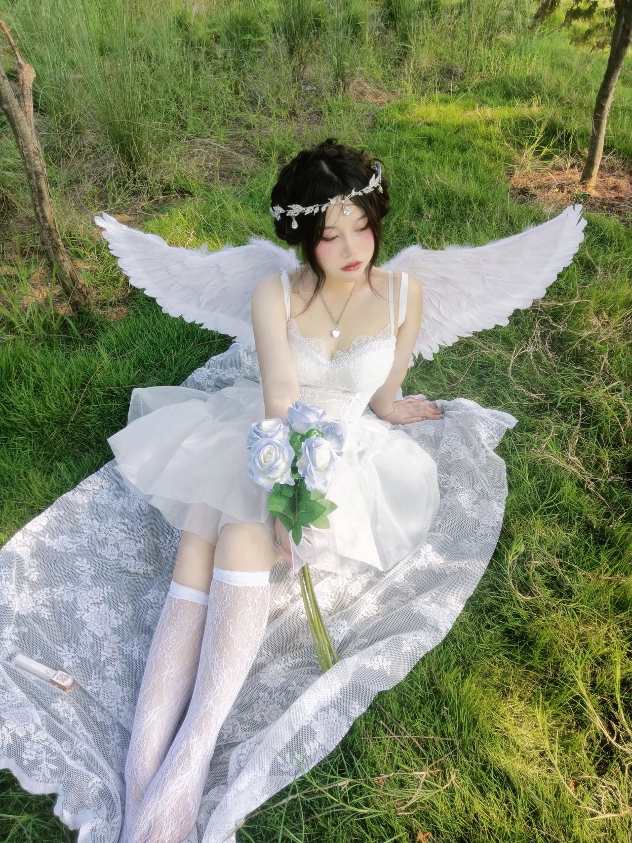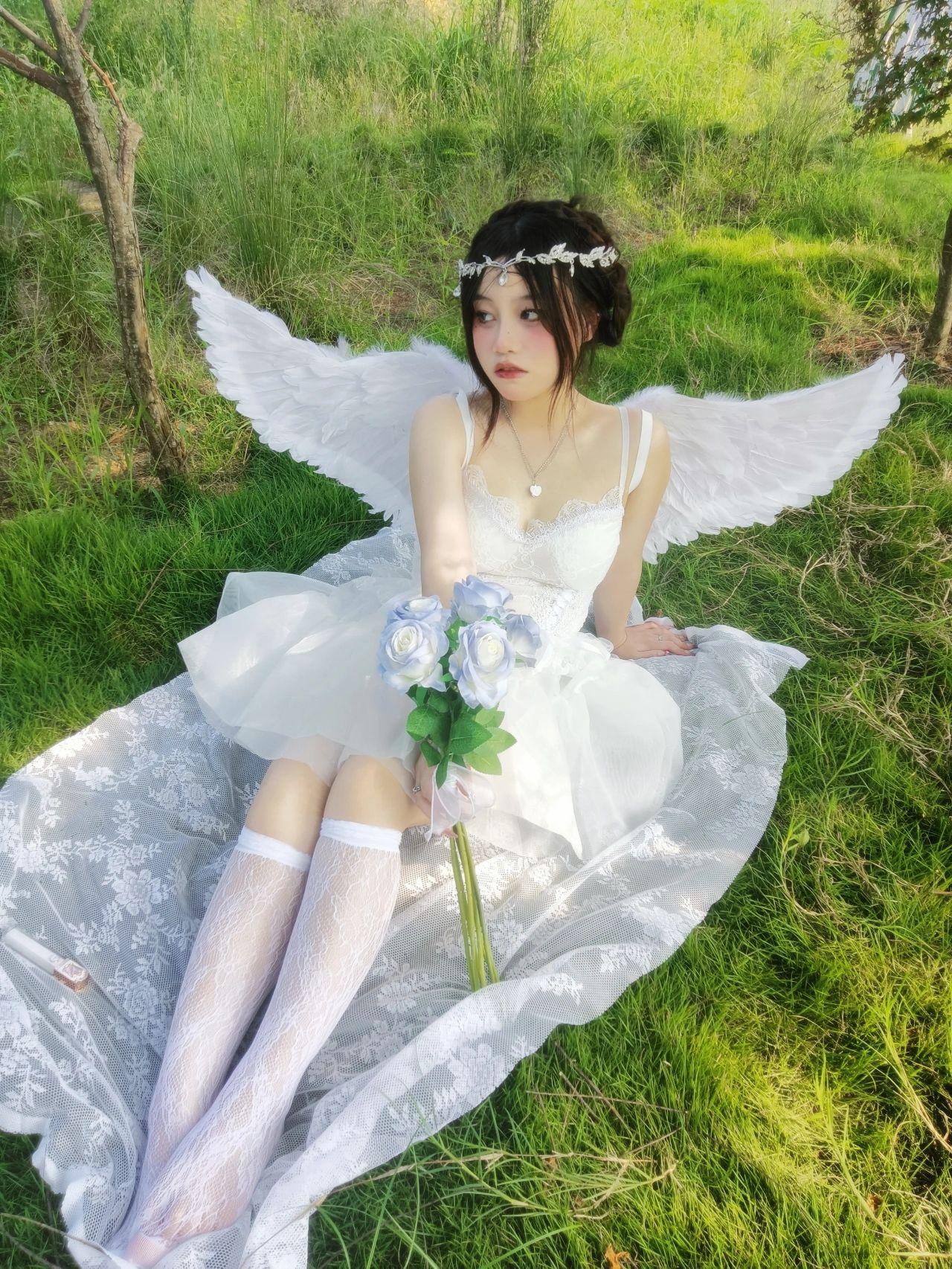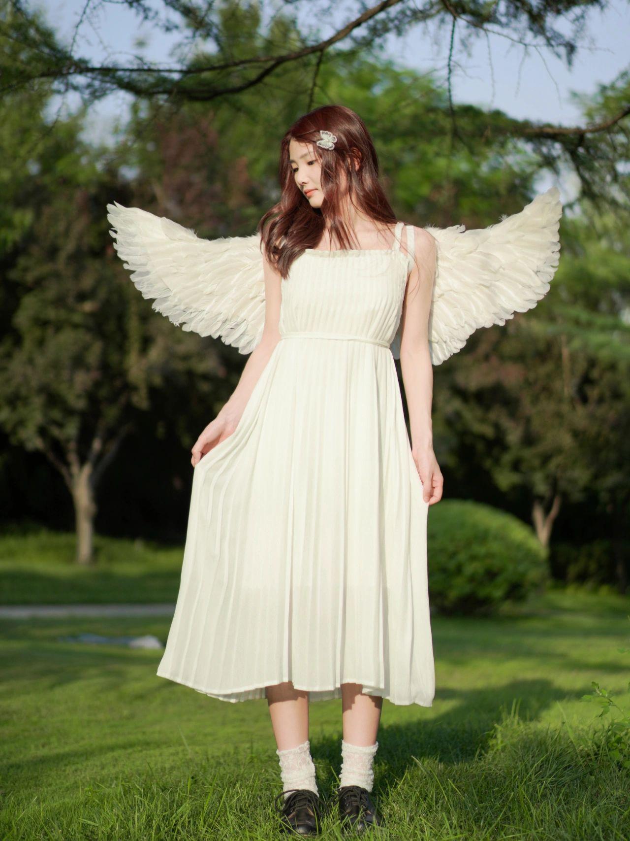 White Medium Swallow Wings Fairy Stick Angel Headband Gauze Dress
