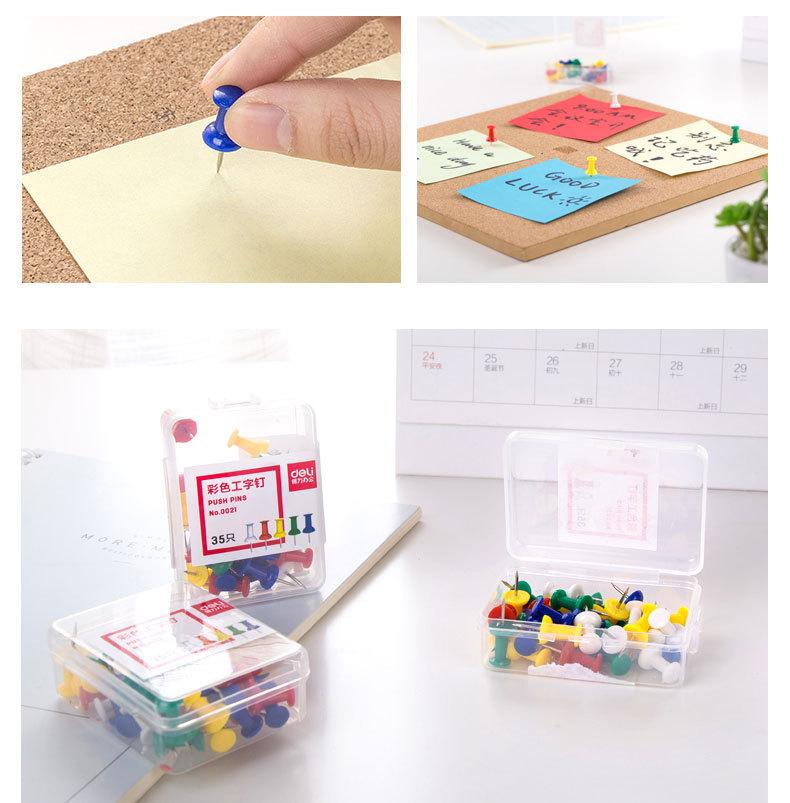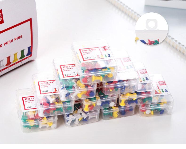 Deli color I-nail tablero de corcho de plástico prensa clavo tachuela de oficina foto clavo una caja de chinchetas pequeñas al por mayor
