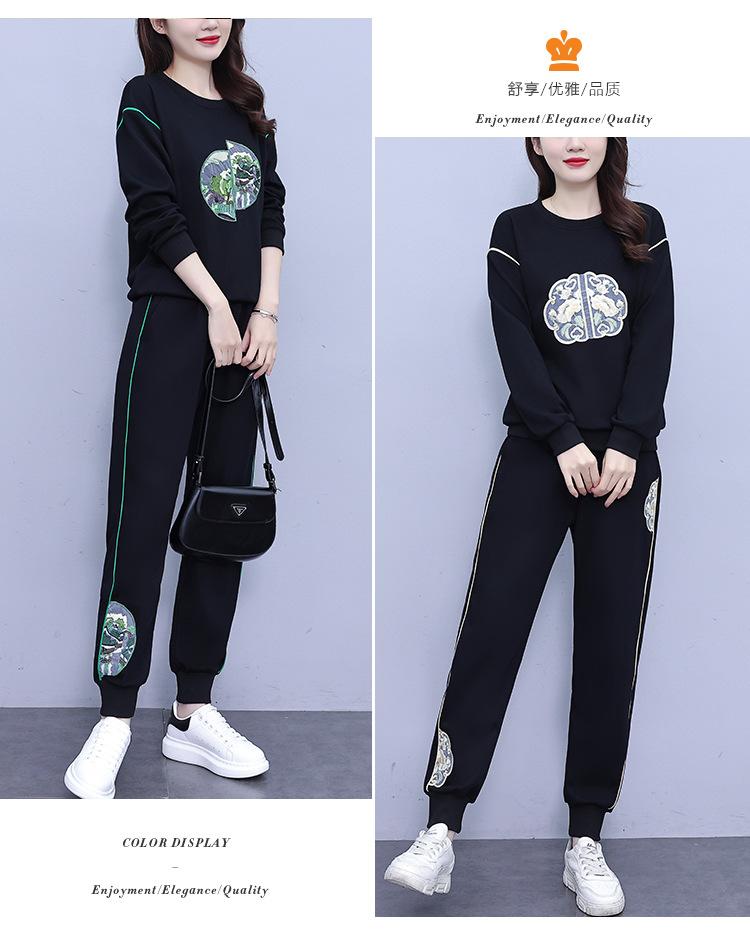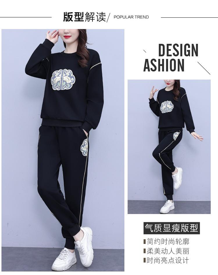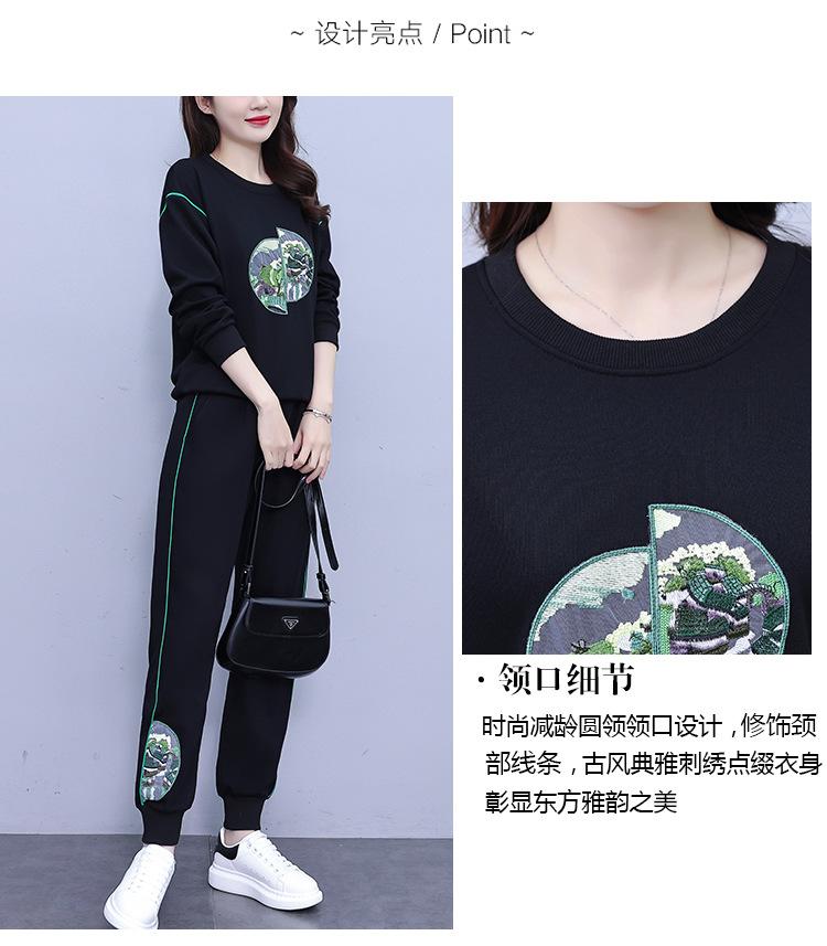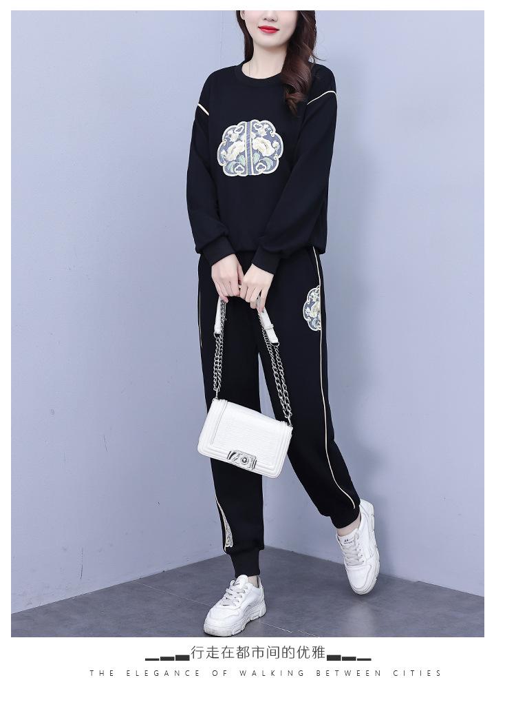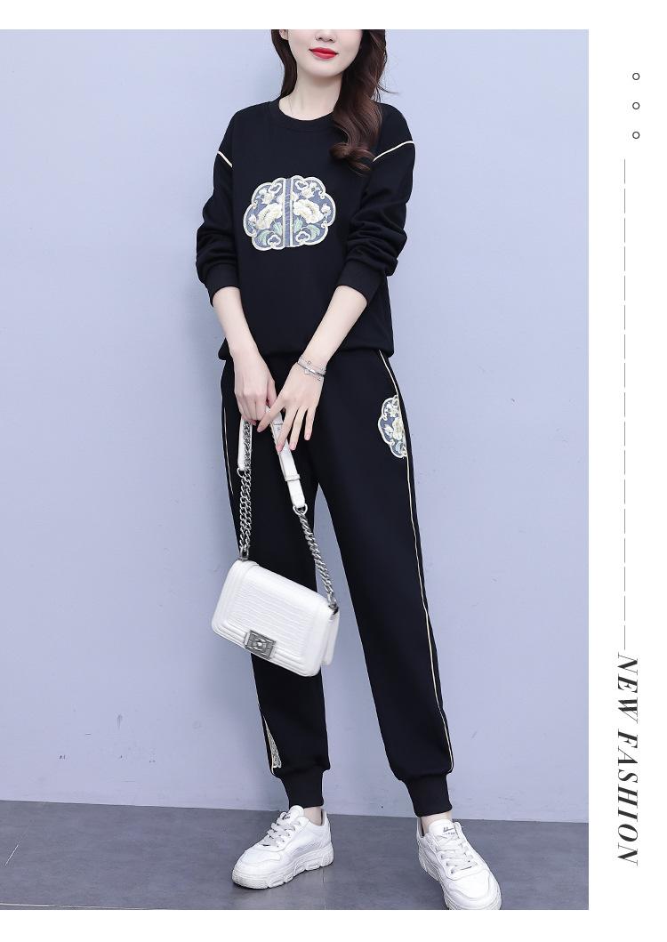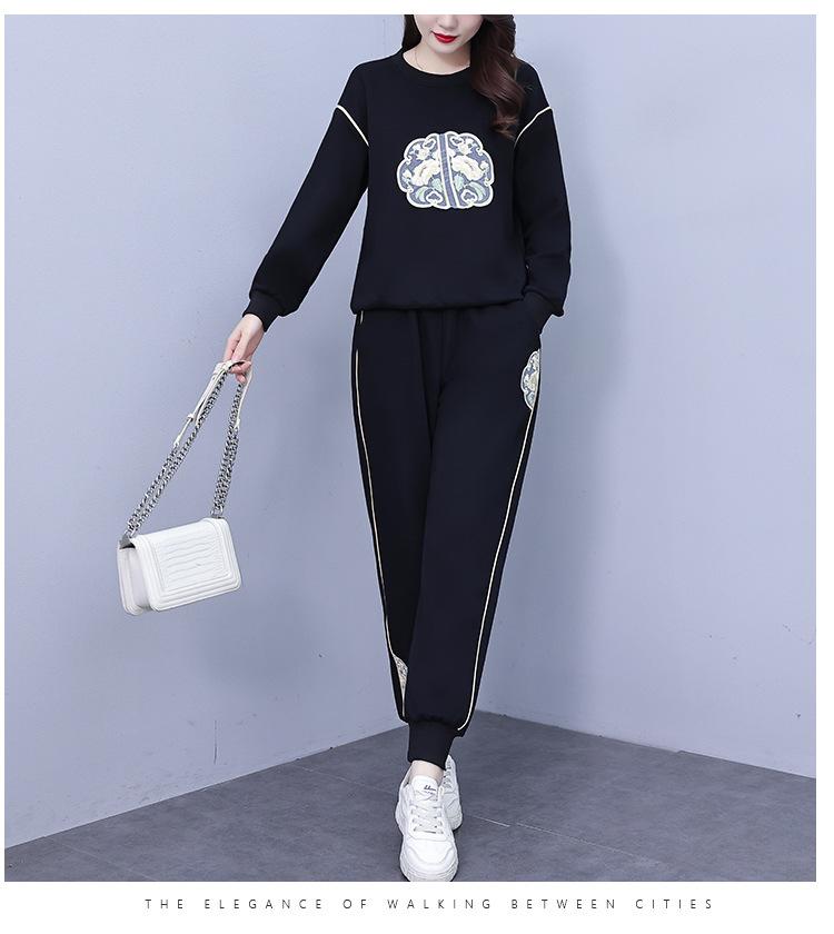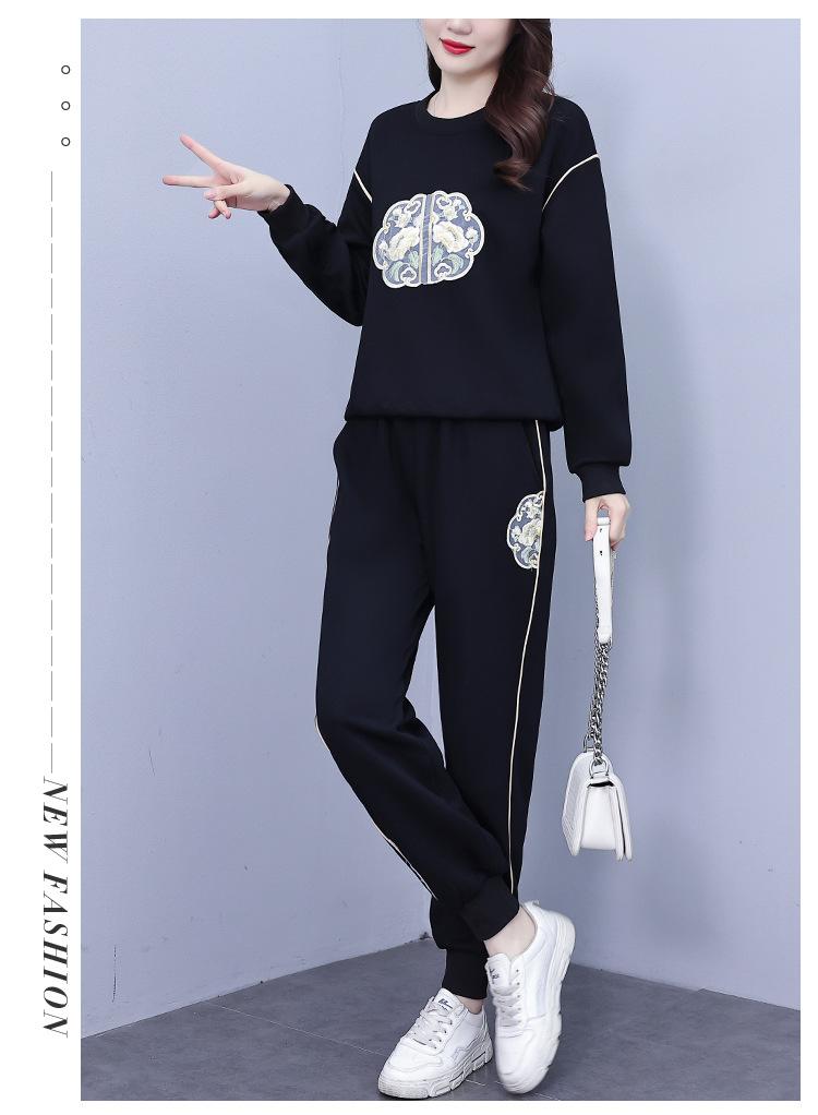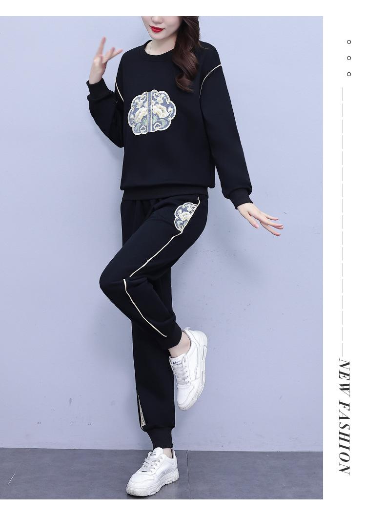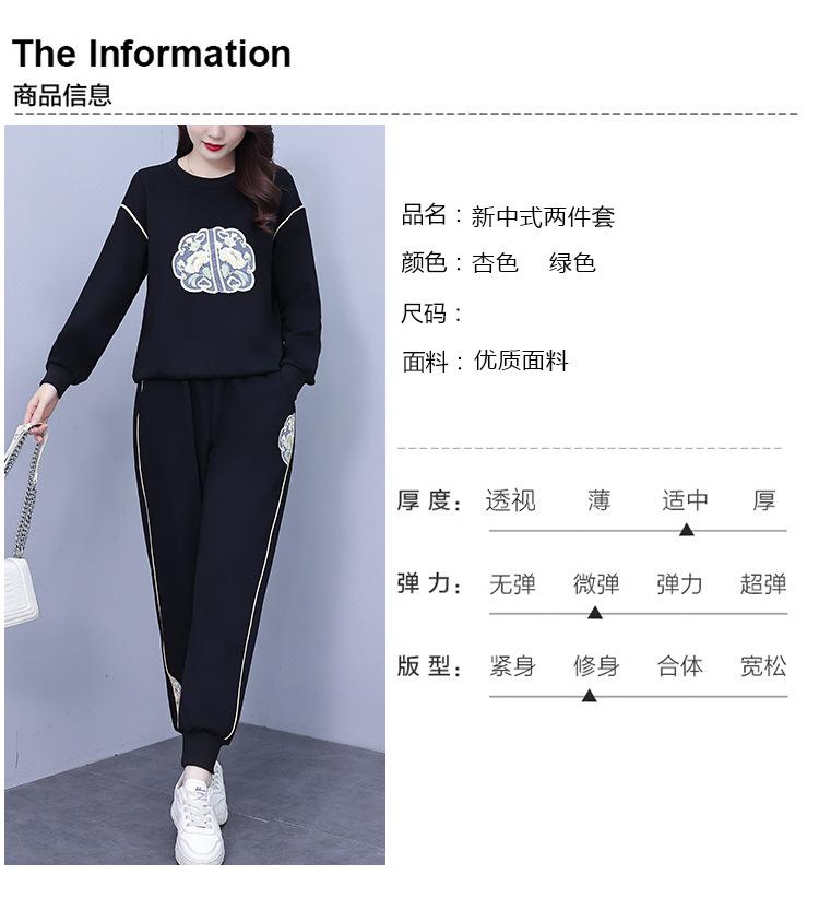 Moda Talla Grande Nuevo Estilo Chino Traje Estilo Nacional para Mujer 2024 Otoño Nuevo mm Gordo Casual Bordado Botón Disco Sudadera Conjunto de Dos Piezas