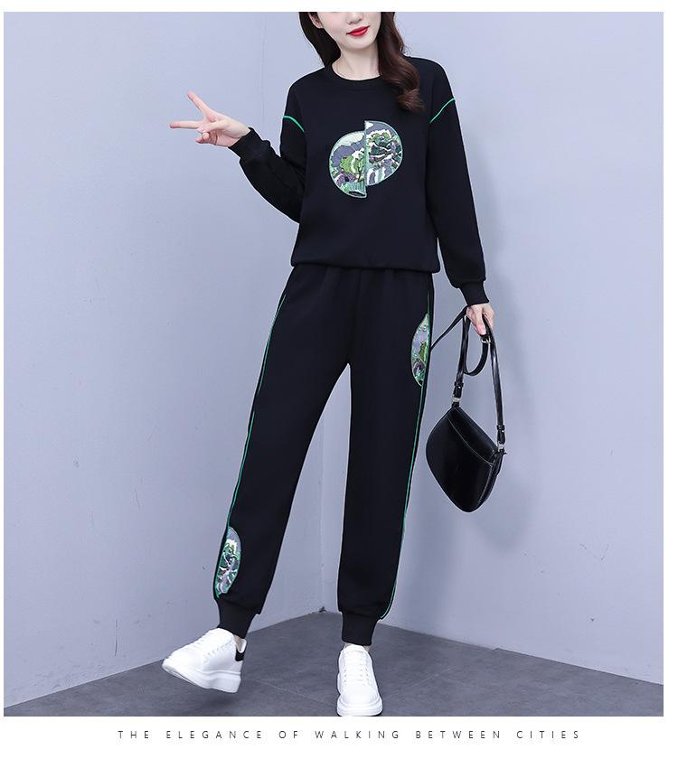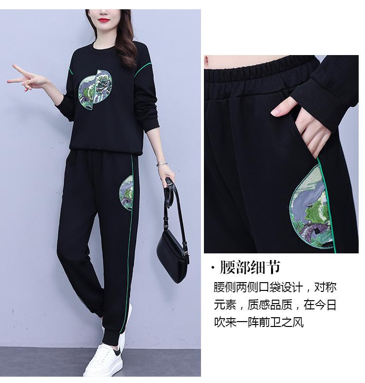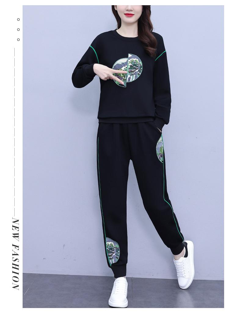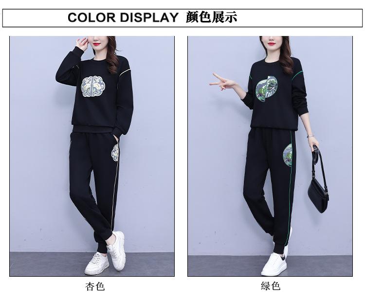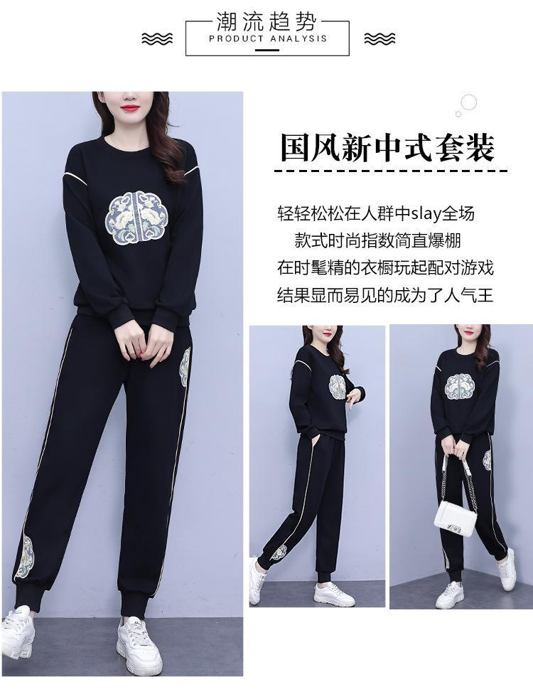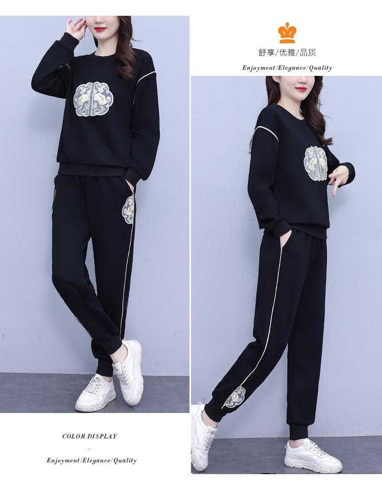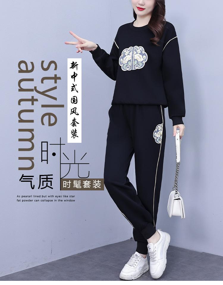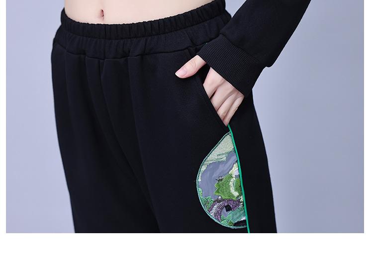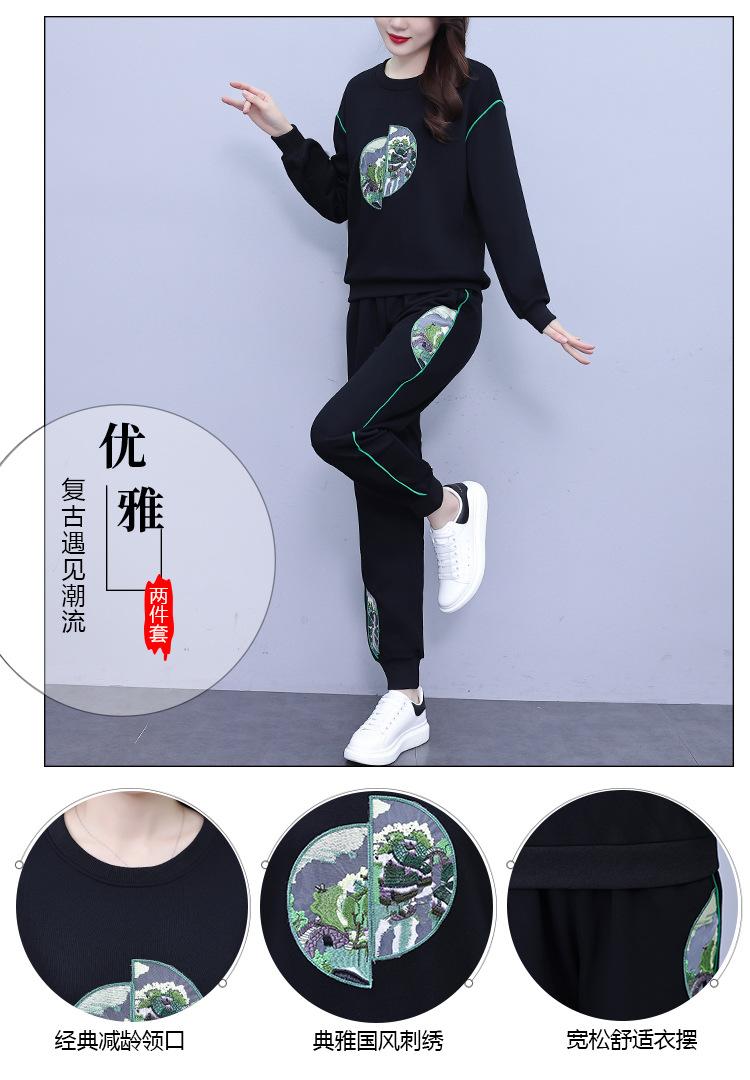 Moda Talla Grande Nuevo Estilo Chino Traje Estilo Nacional para Mujer 2024 Otoño Nuevo mm Gordo Casual Bordado Botón Disco Sudadera Conjunto de Dos Piezas