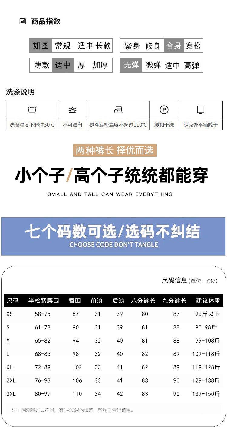 Khaki eight points, Khaki nine points, Black cropped, Black ninth, Brown cropped, Brown ninth, Apricot eight p...