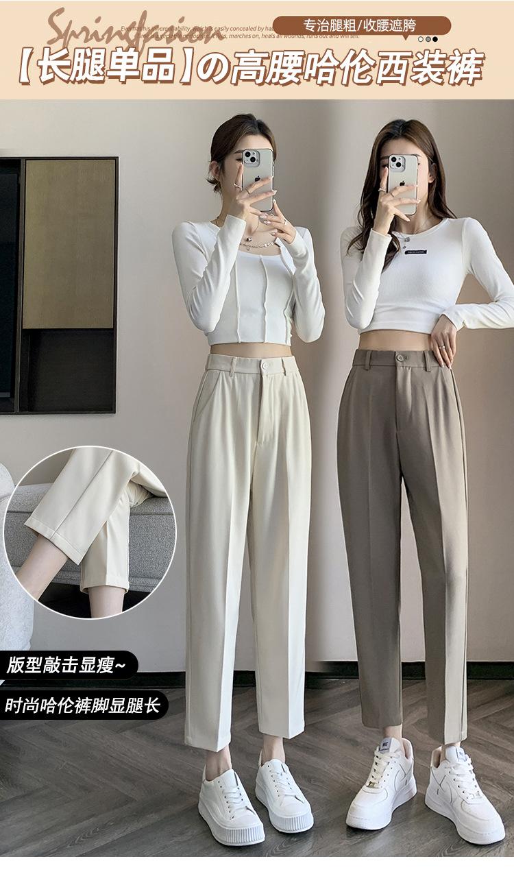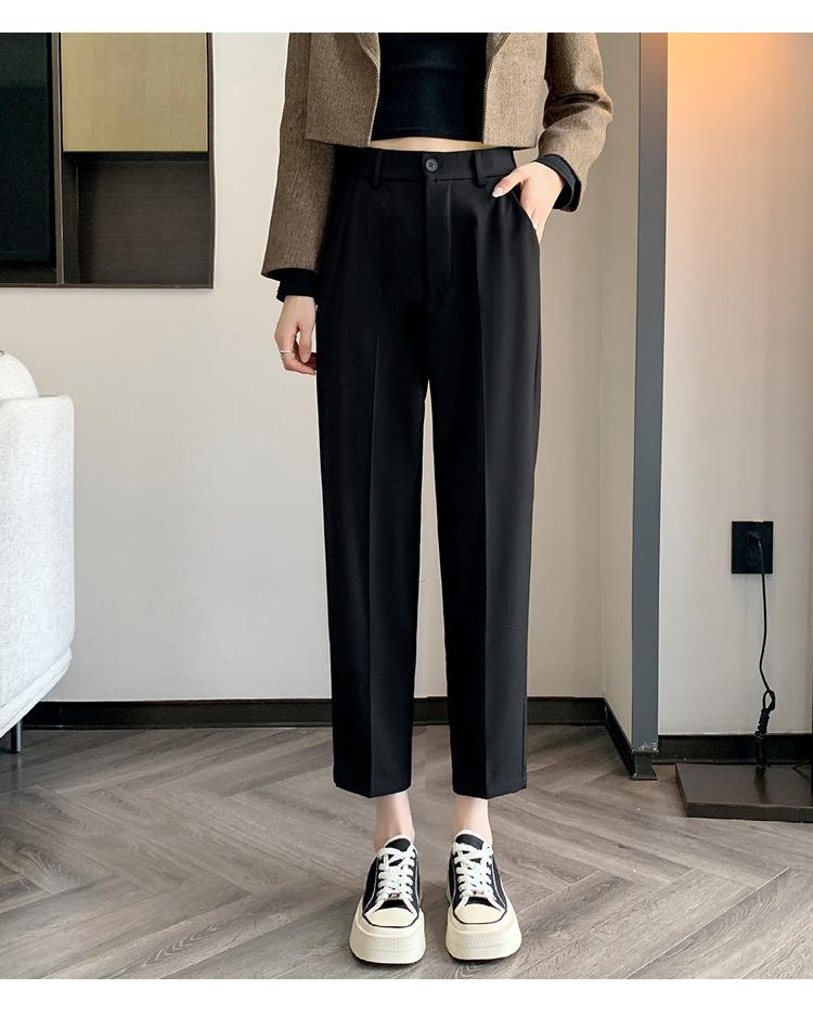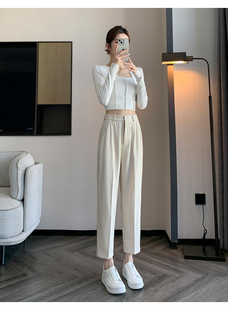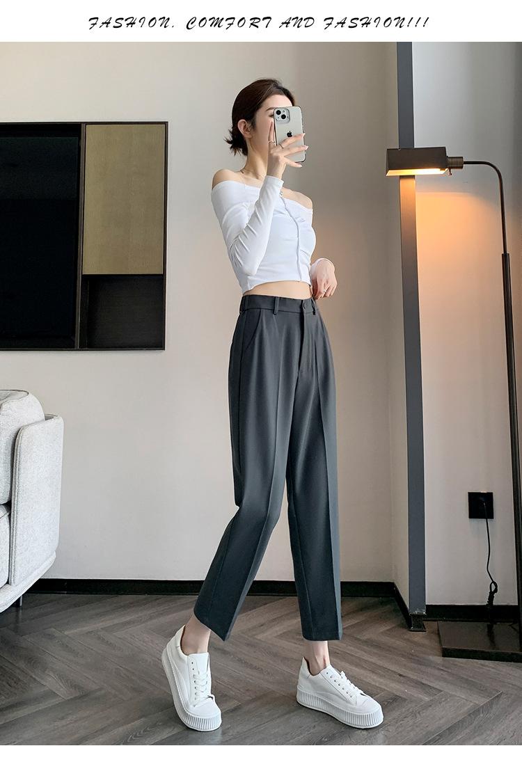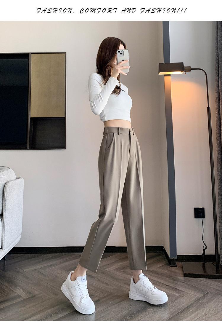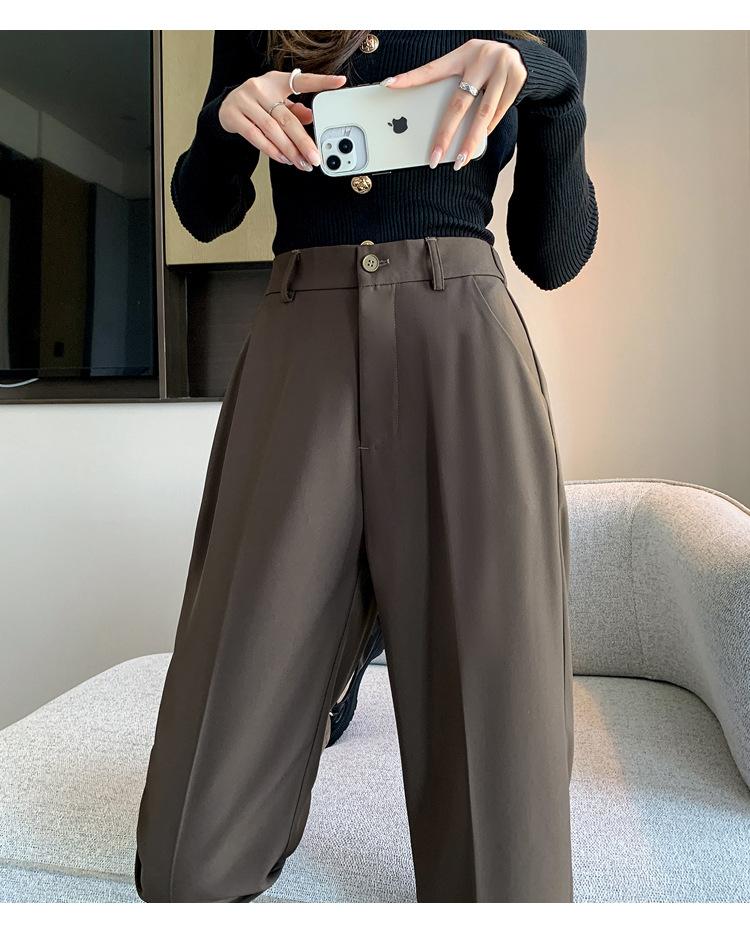 Pantalones de Mujer Holgados Adelgazantes Cortos de Cintura Alta Estilo Nuevo de Primavera y Otoño 2025 con Efecto Drapeado