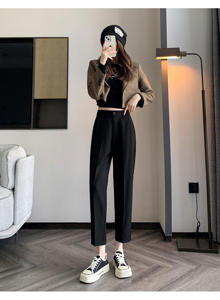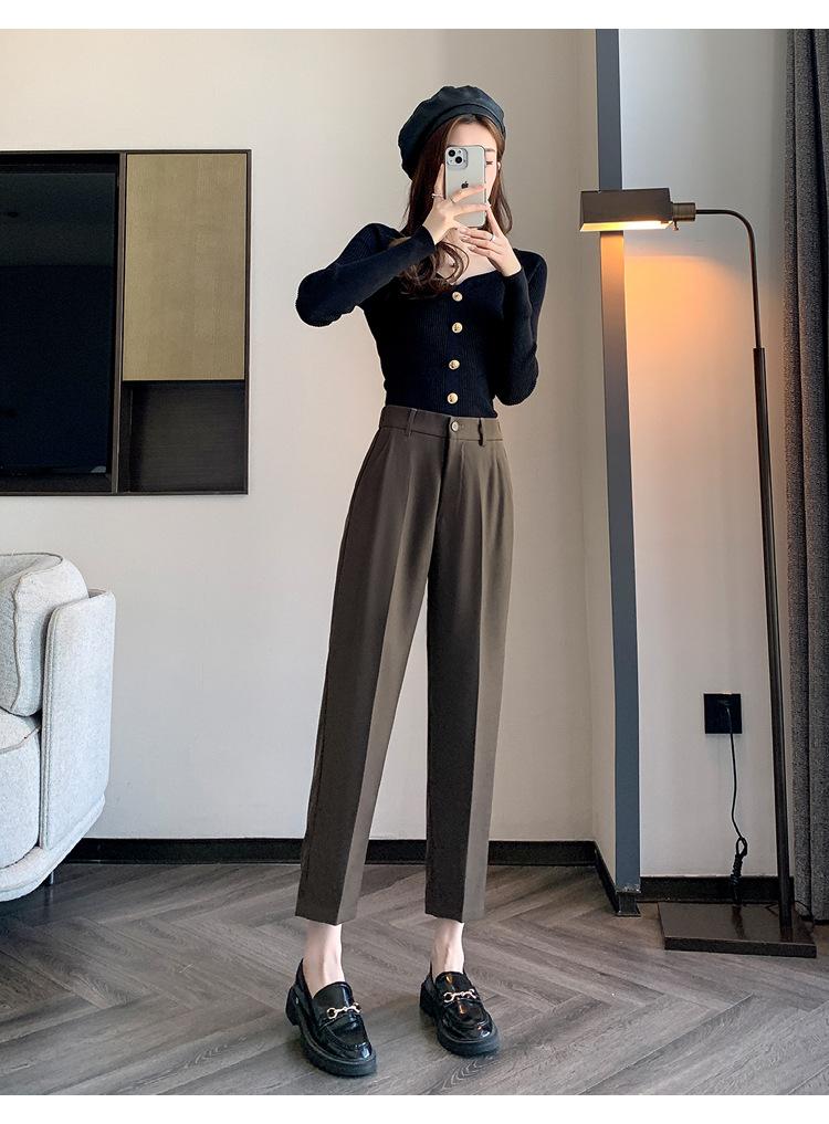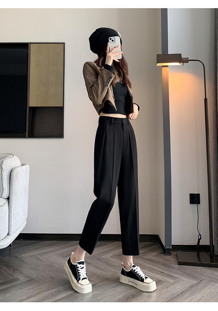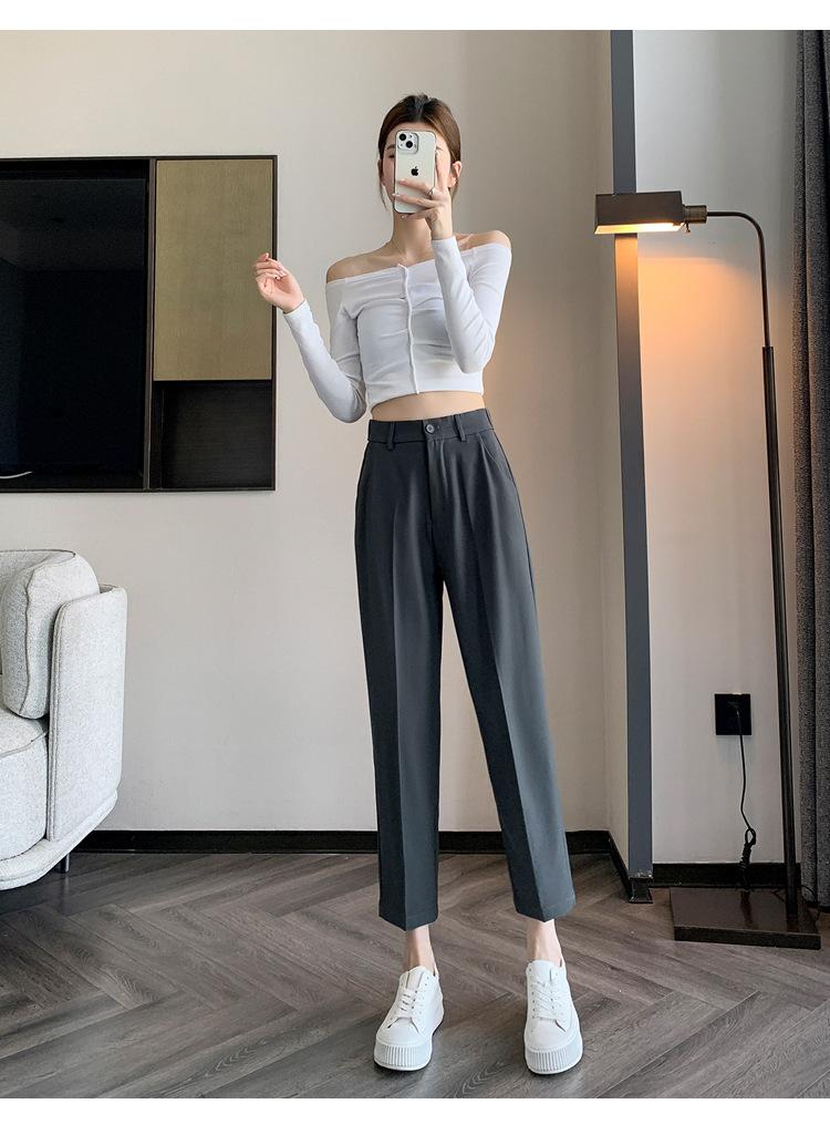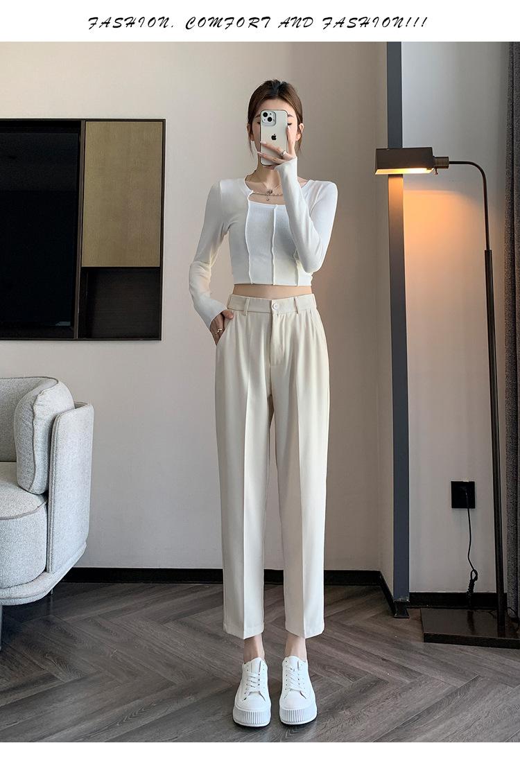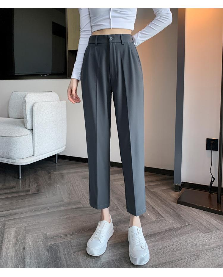 Pantalones de Mujer Holgados Adelgazantes Cortos de Cintura Alta Estilo Nuevo de Primavera y Otoño 2025 con Efecto Drapeado