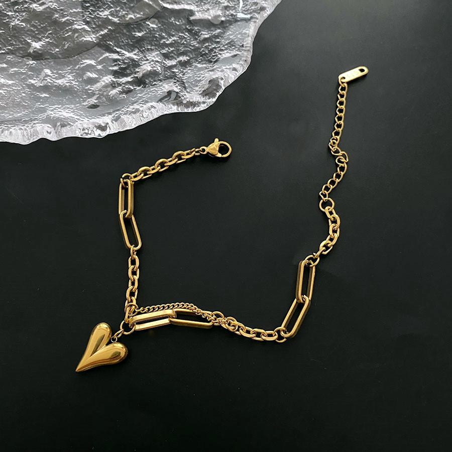 Pulsera de Cadena de Amor Simple Estilo Coreano Acero Titanio para Mujer Nicho Lujo Ligero Corazón de Melocotón Pulsera de Oro 18K Joyería de Moda para Novia