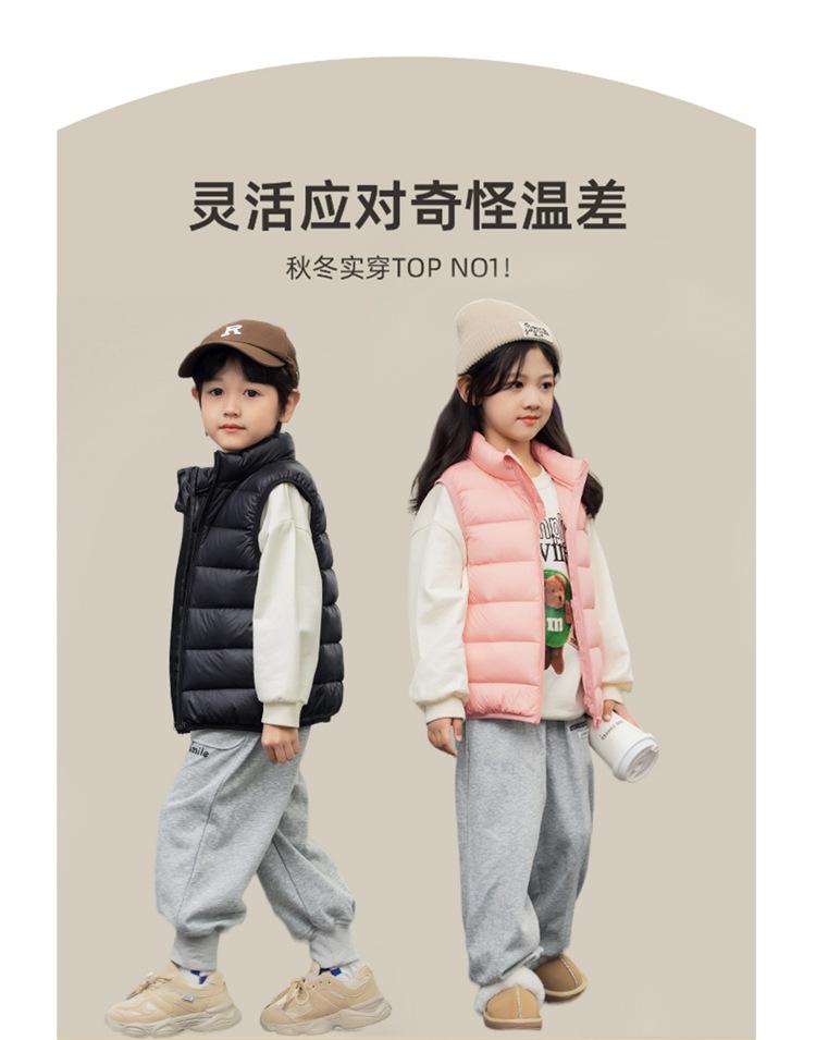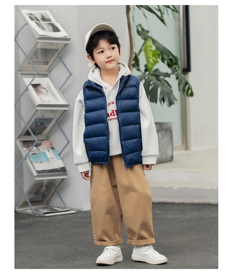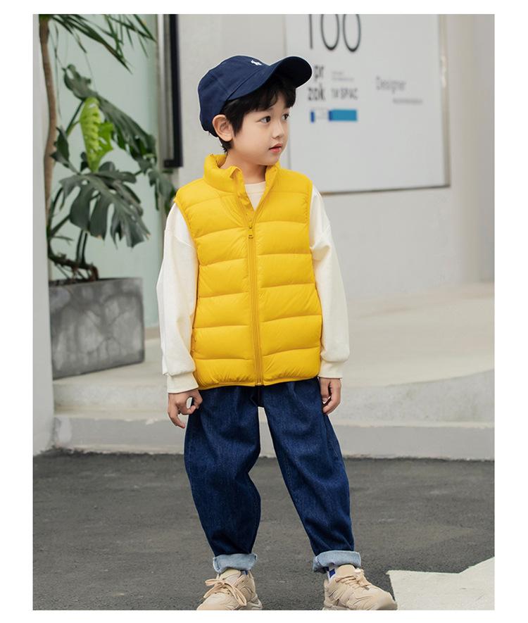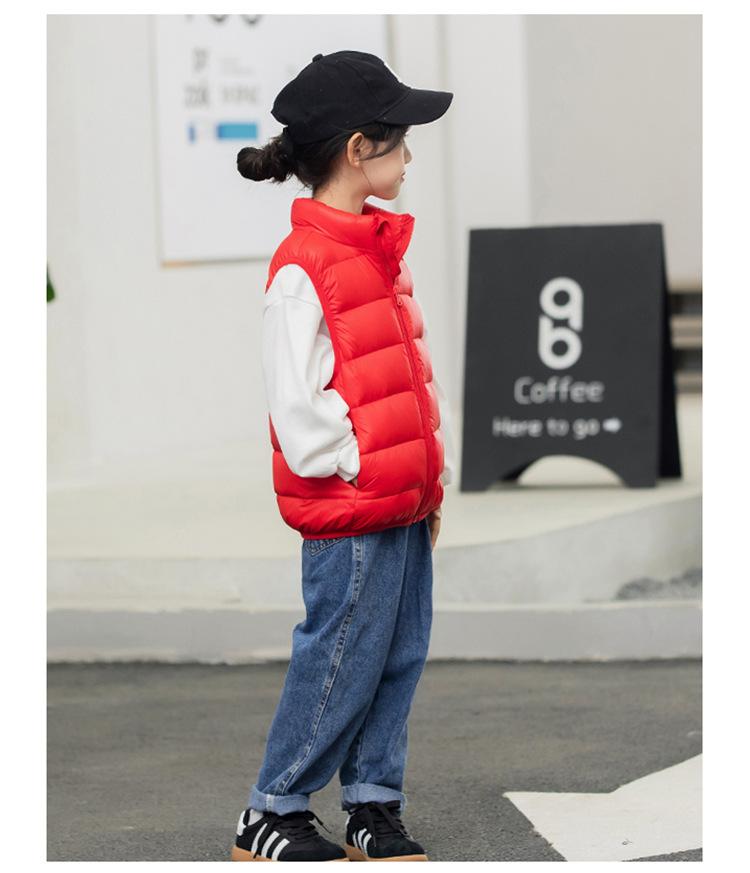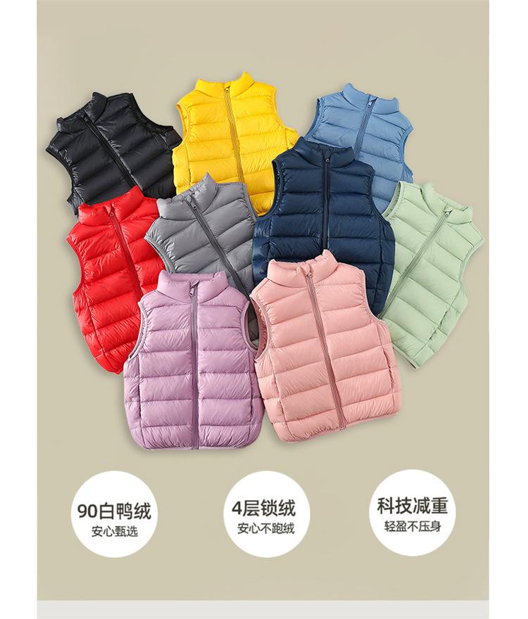 Chaleco ligero a prueba de viento para niños Otoño e Invierno Nuevo estilo Mediano y Grande Ropa exterior de seda de terciopelo de plumas para niños y niñas