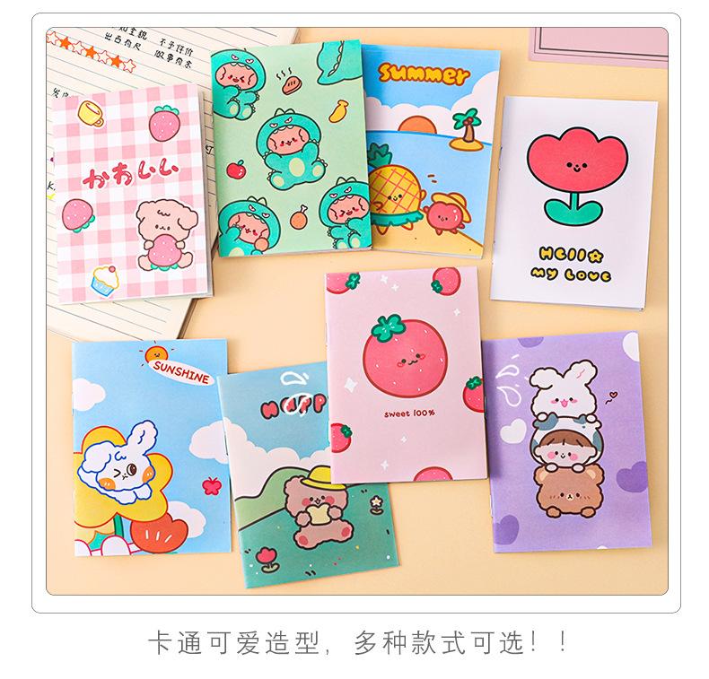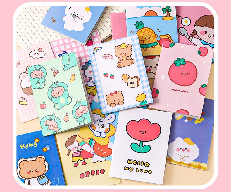 Libreta de dibujos animados divertida, papelería creativa, mini bloc de notas de 64k, libreta de bolsillo horizontal portátil para estudiantes, venta al por mayor