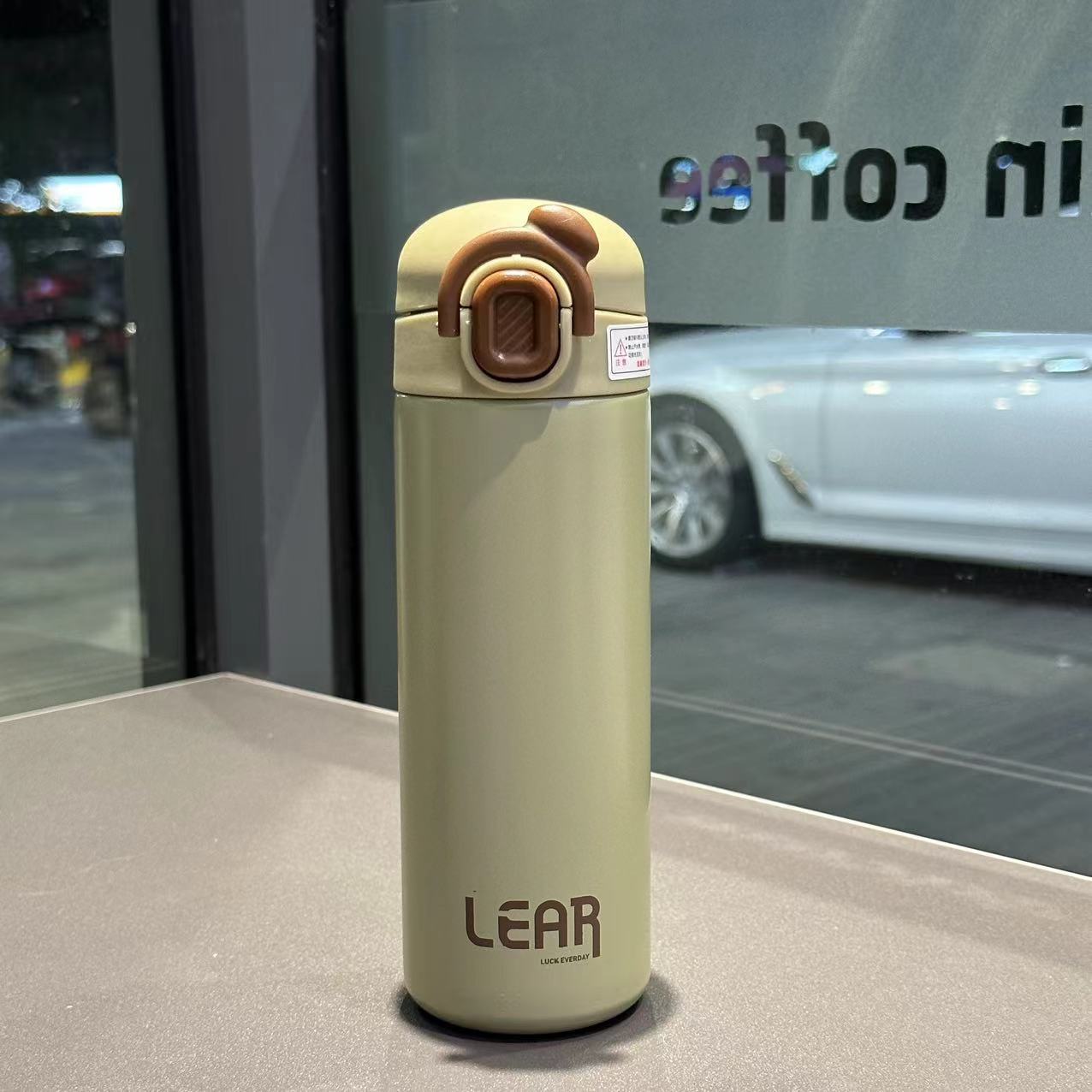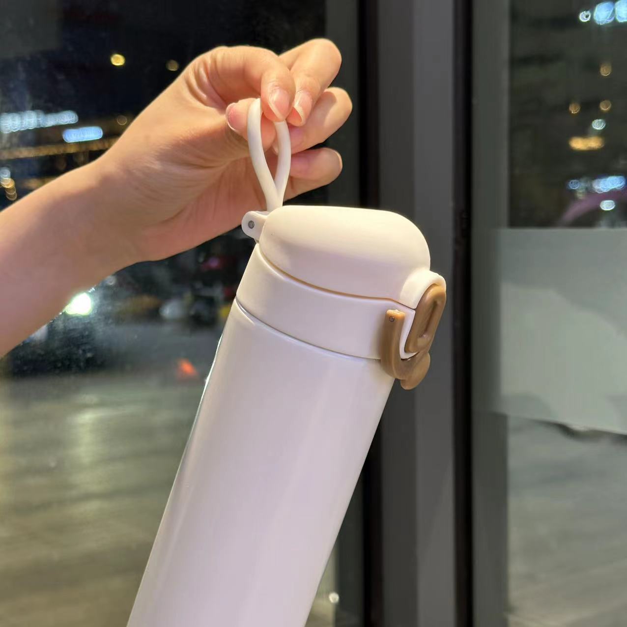 Nueva taza simple de acero inoxidable 304 con rebote, gran capacidad, alto valor de color, con bloqueo, simple, con cuerda para estudiantes, taza de agua