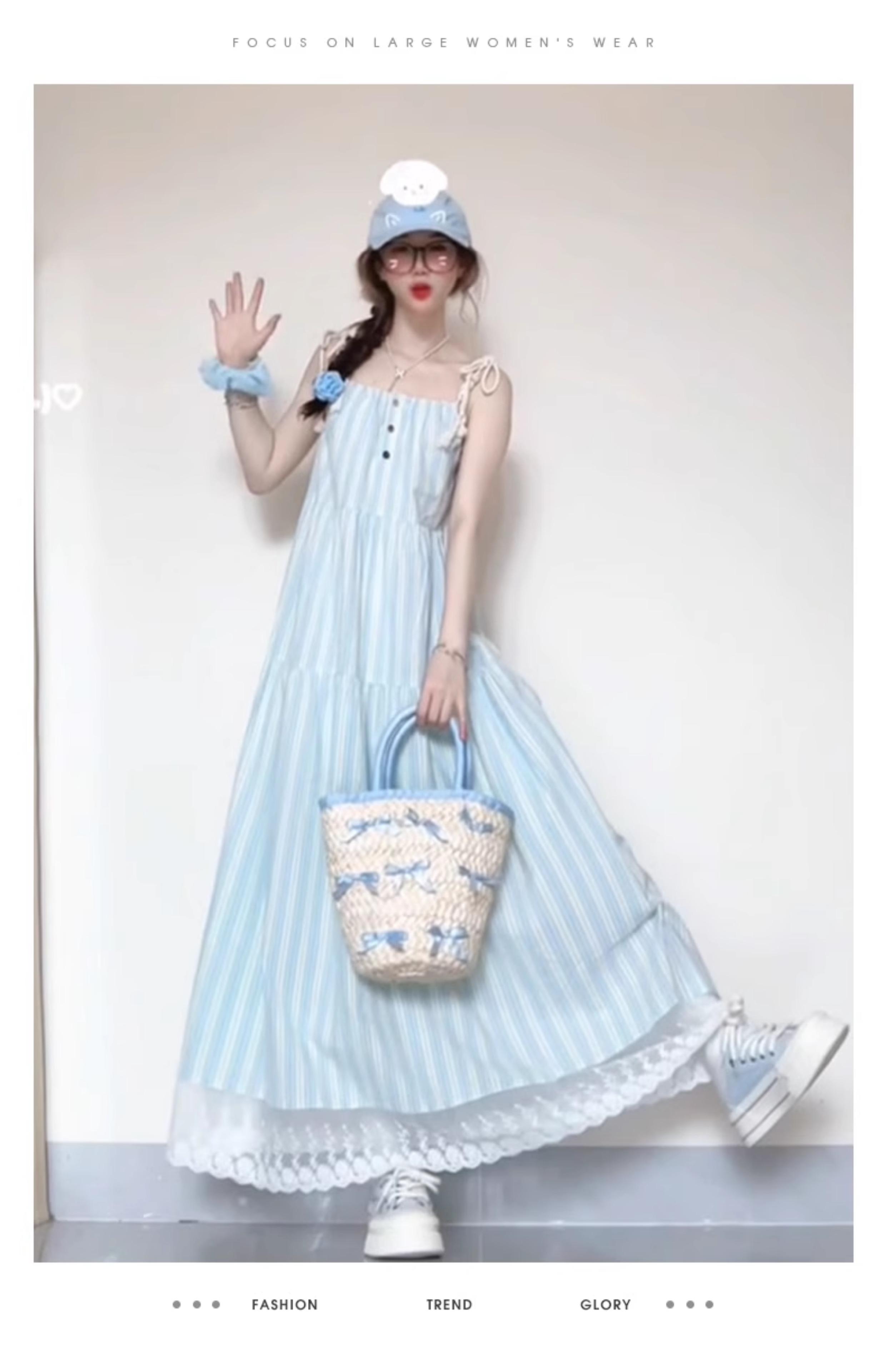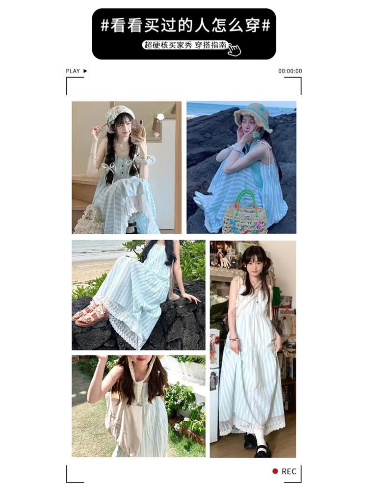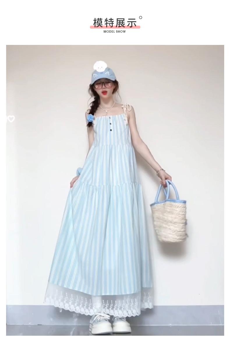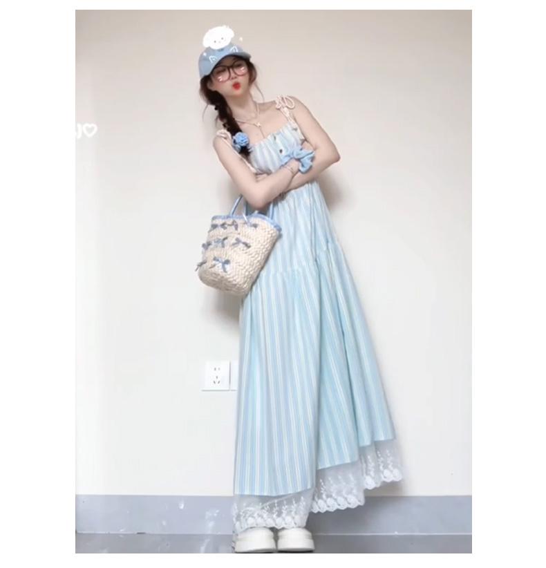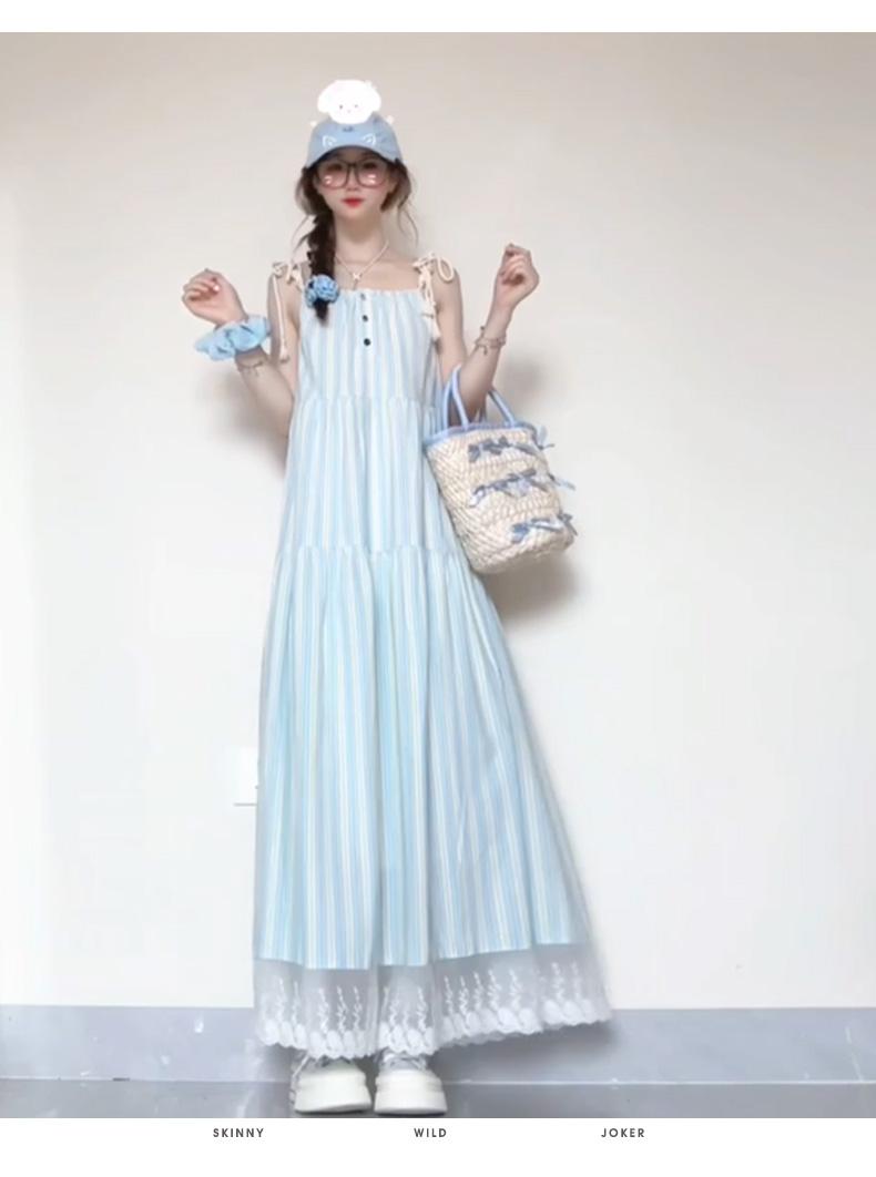 Vestido de tirantes de rayas azules francesas para niños, verano 2025, vestido largo pequeño para vacaciones en la playa.