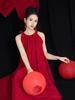 Vestido de noche de alta gama con cuello sin mangas y hombros descubiertos para mujer, vestido de novia para brindis, vestido de compromiso rojo vino, falda larga