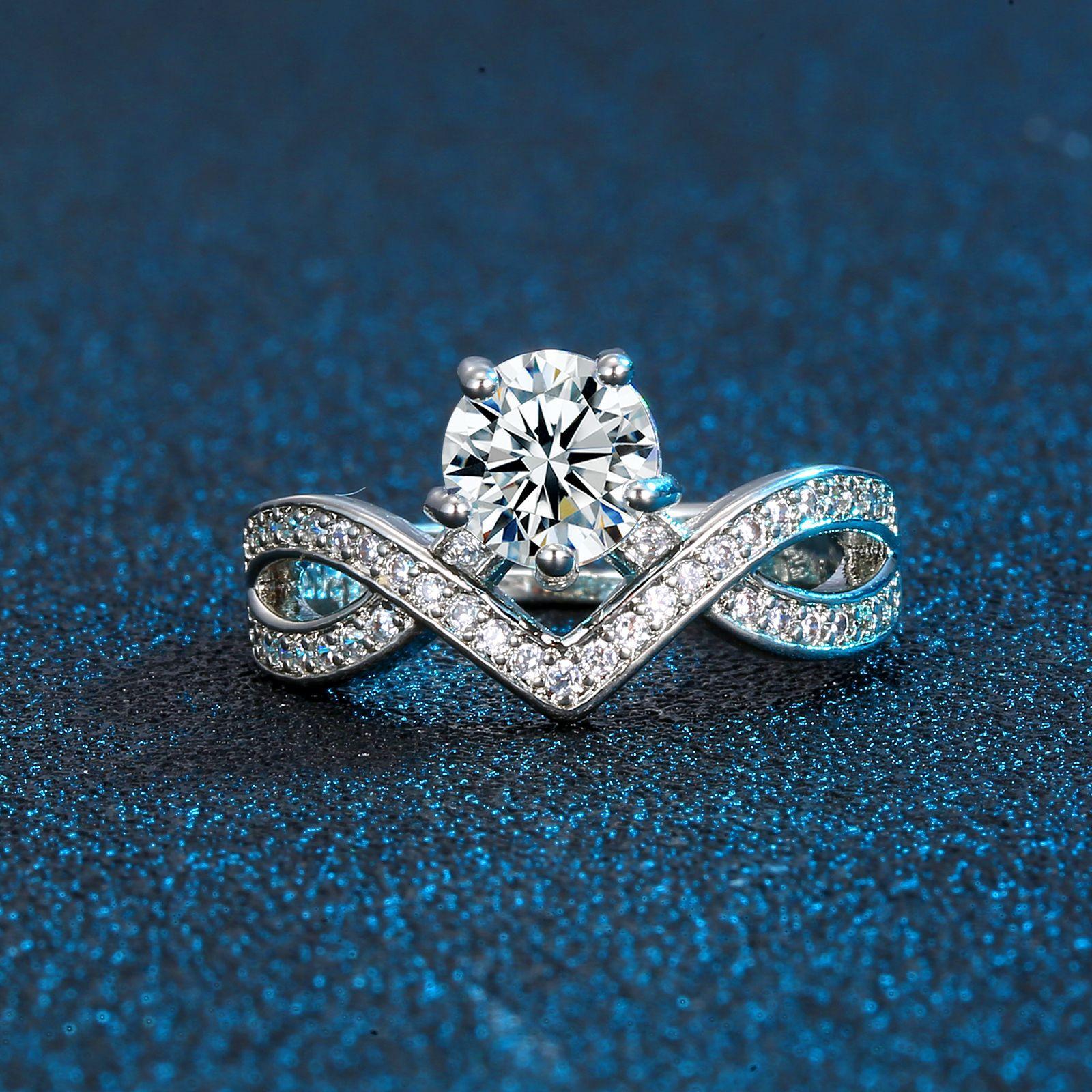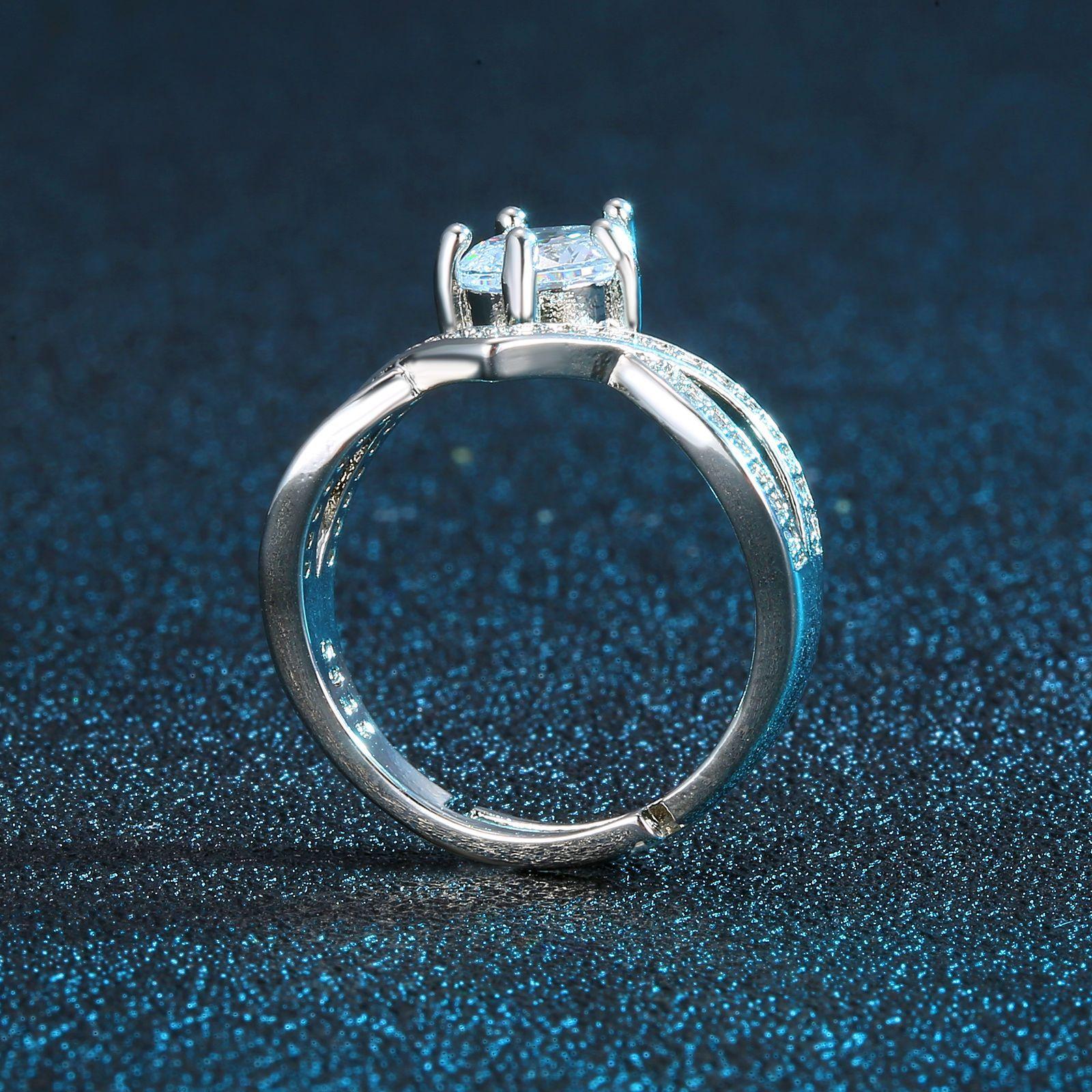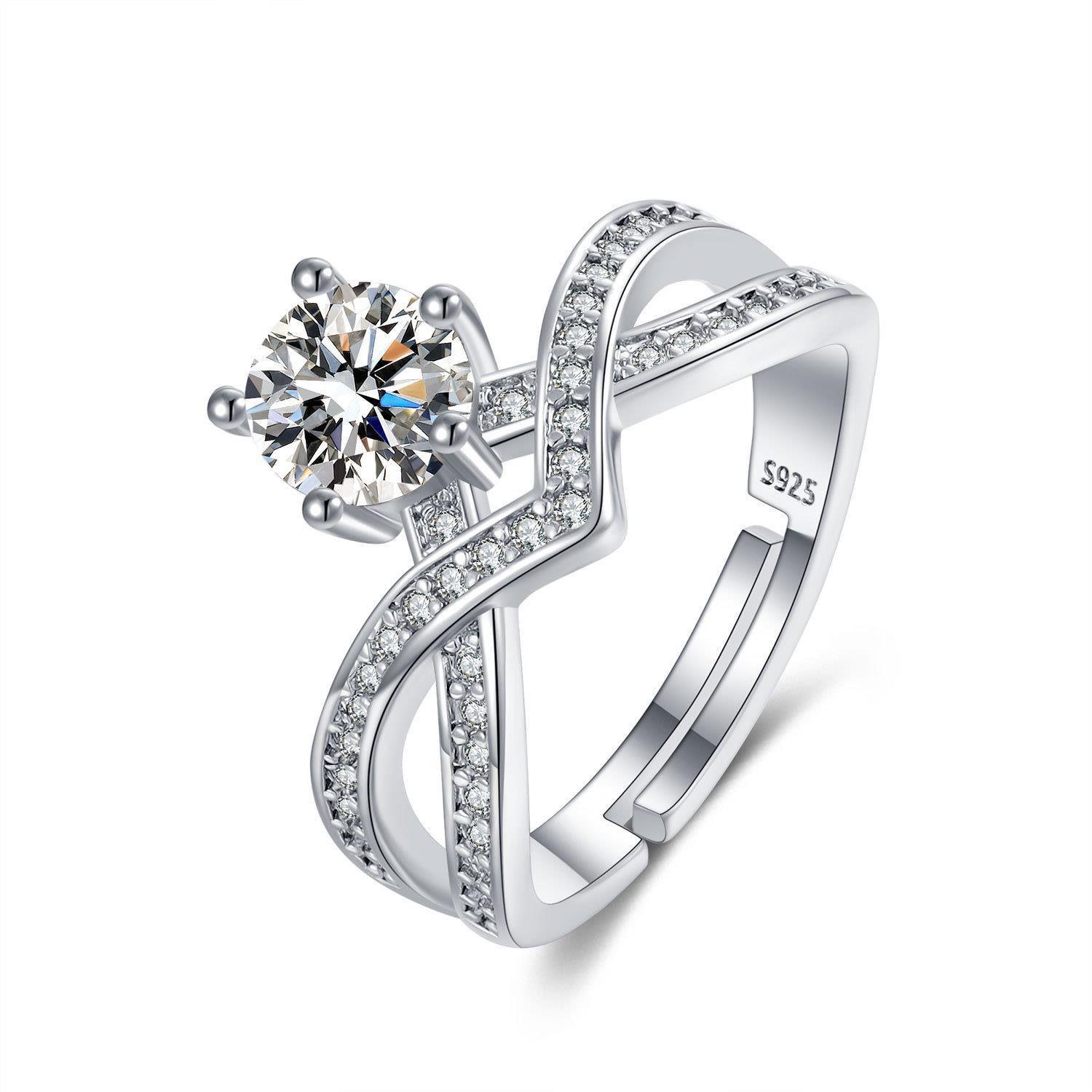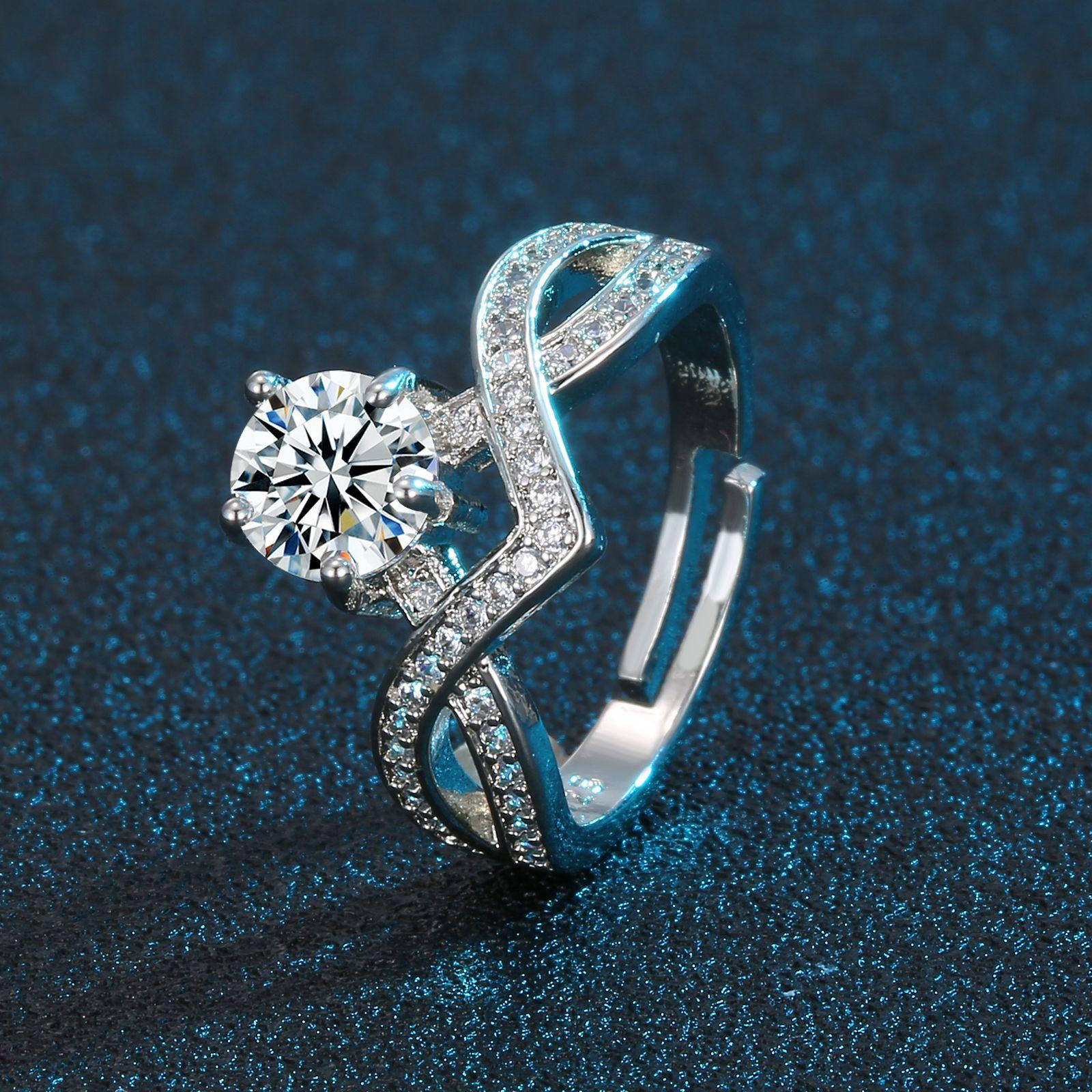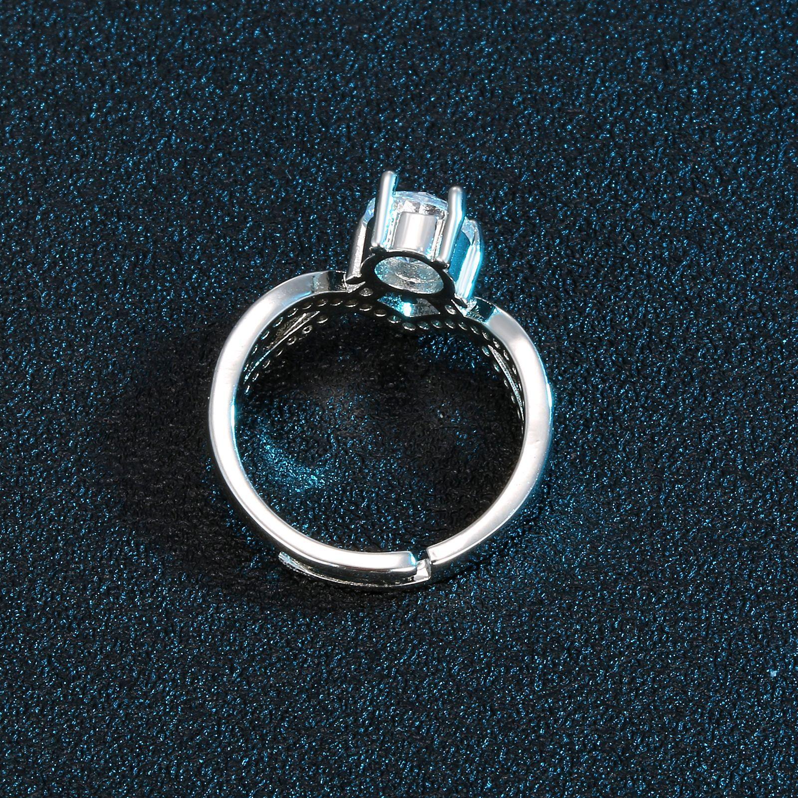 Anillo clásico de moissanita de imitación en vivo con movimiento de mano rápido, anillo de apertura de corona de moda coreana para mujer, venta directa de fábrica