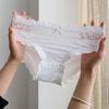 Ropa interior sexy para mujer, de seda helada, pura pasión, verano, encaje fino, algodón puro, sin marcas, estilo nuevo para niñas, pantalones cortos en forma de T
