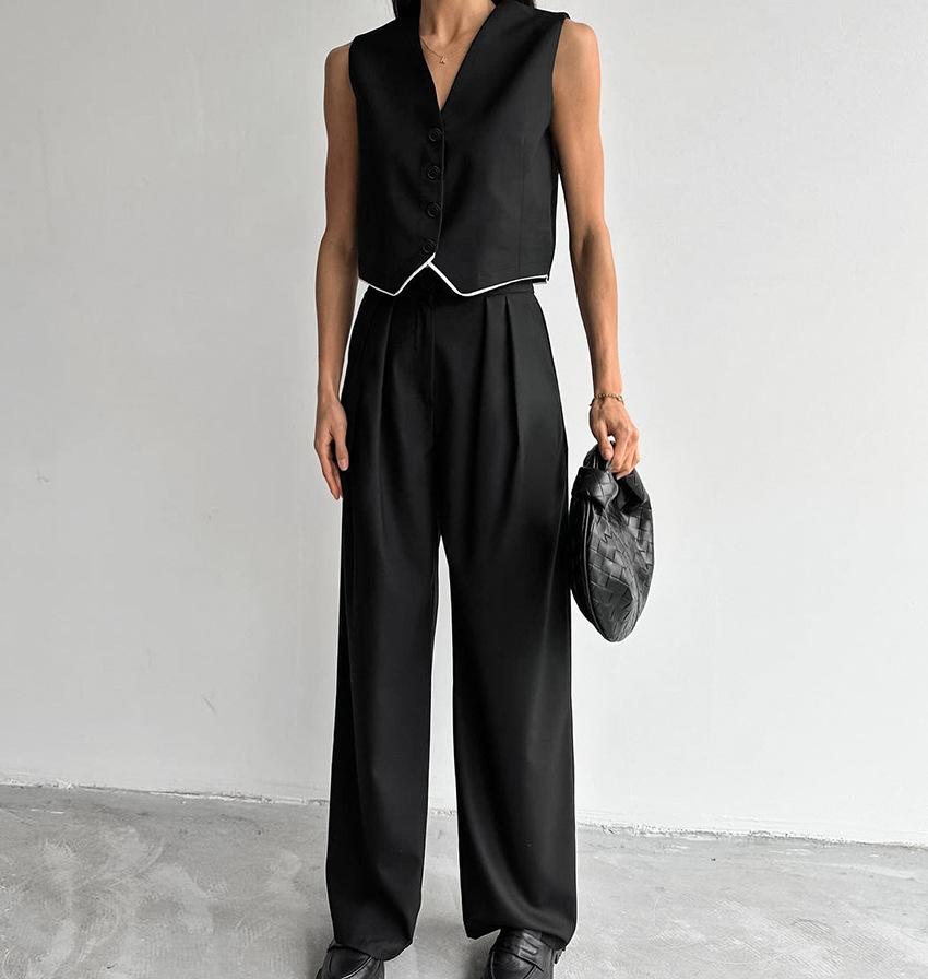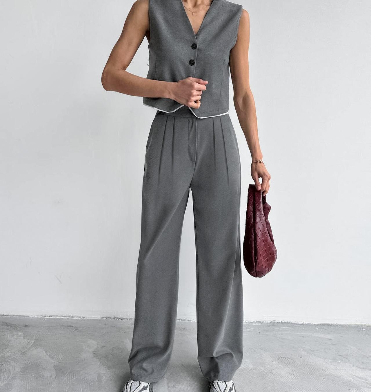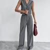 Chaleco sin mangas gris nuevo europeo y americano 2024 Traje de chaleco y pantalones Moda de verano Conjunto de dos piezas transfronterizo