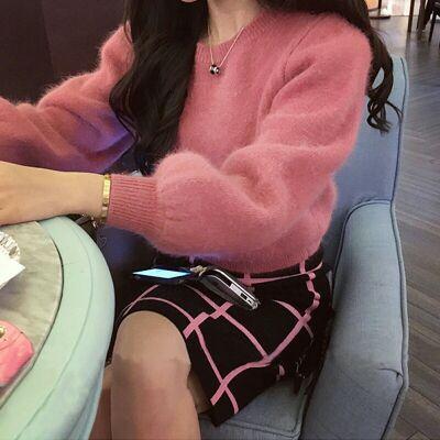 Otoño e Invierno 2025 Temperamento Más Fácil de Combinar Cuello Redondo Manga Linterna Manga Larga Suéter Pulóver para Mujer Suéter de Color Sólido Top para Estudiante