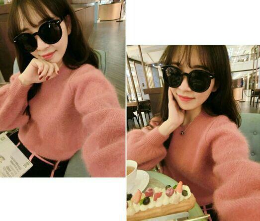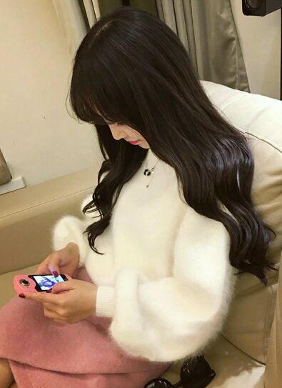 Suéter Pulóver de Manga Larga con Cuello Redondo y Manga Linterna para Mujer, Otoño e Invierno 2015, Temperamento, Combinación Total, Color Sólido, Suéter Tejido, Top de Estudiante