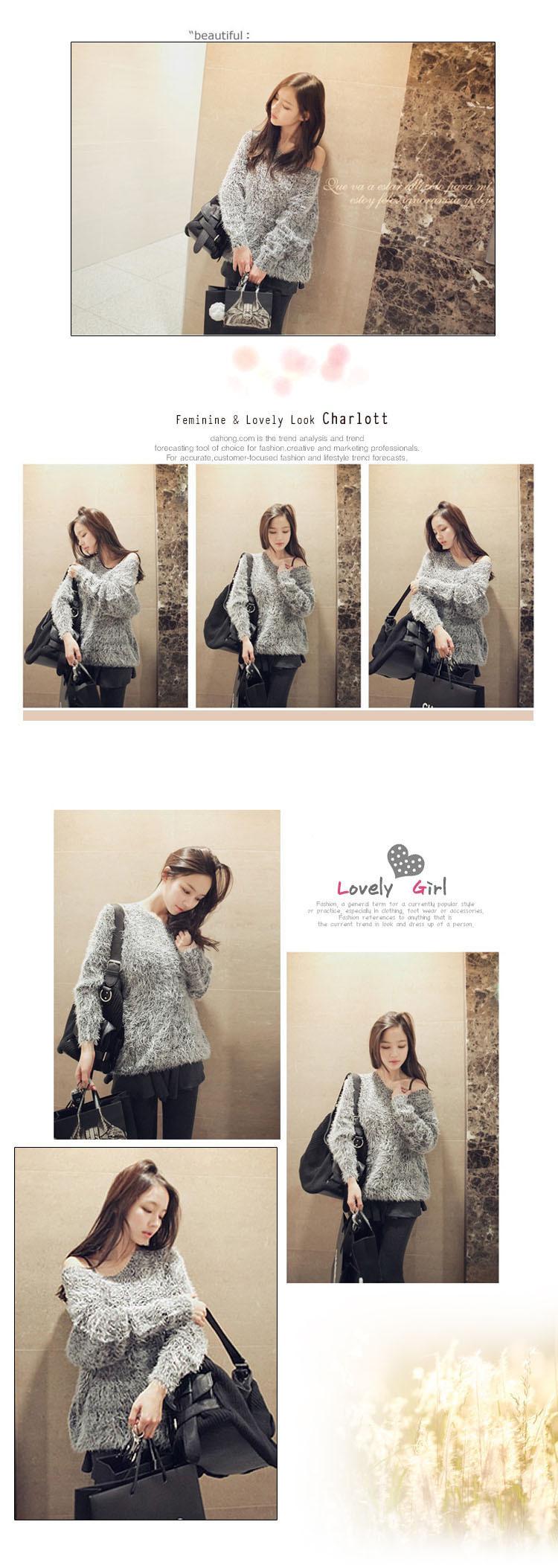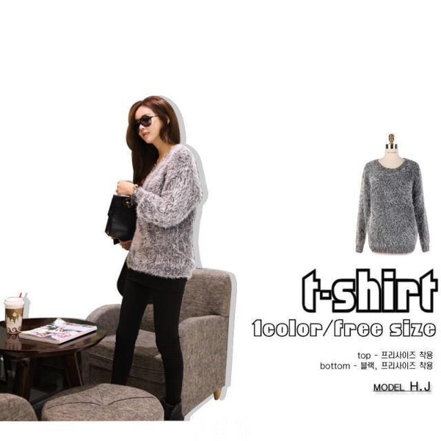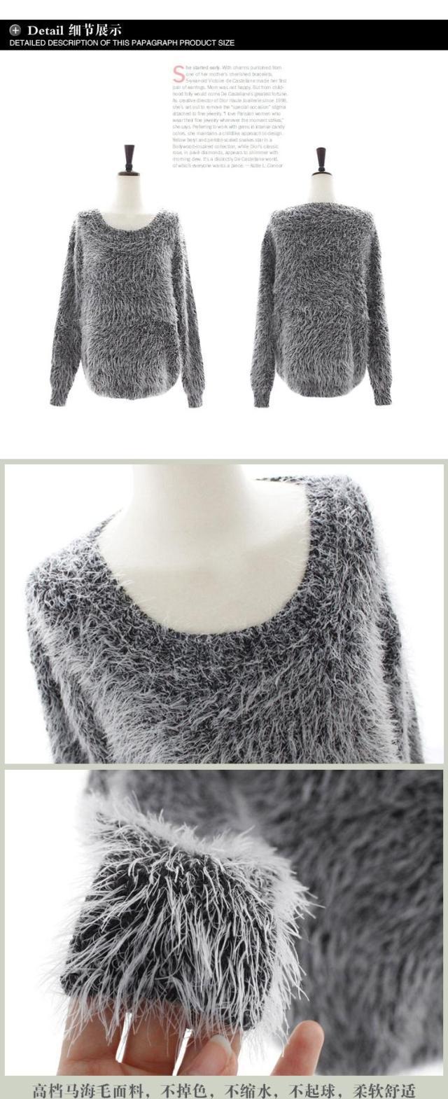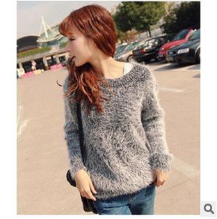 Suéter de Punto Mohair de Cuello Redondo Coreano para Mujer Primavera 2017 Manga Larga Suelto Suéter Jersey Chaqueta Mujer