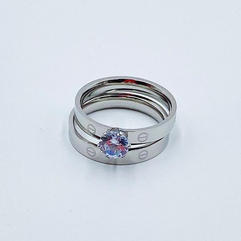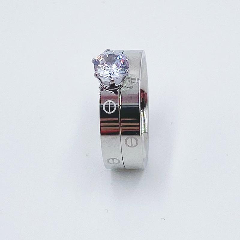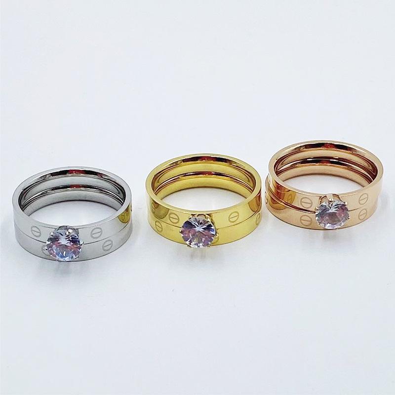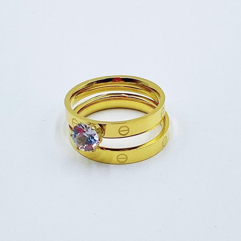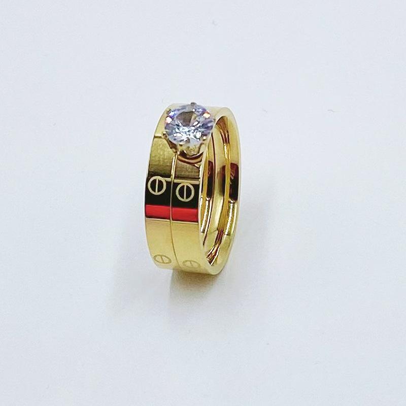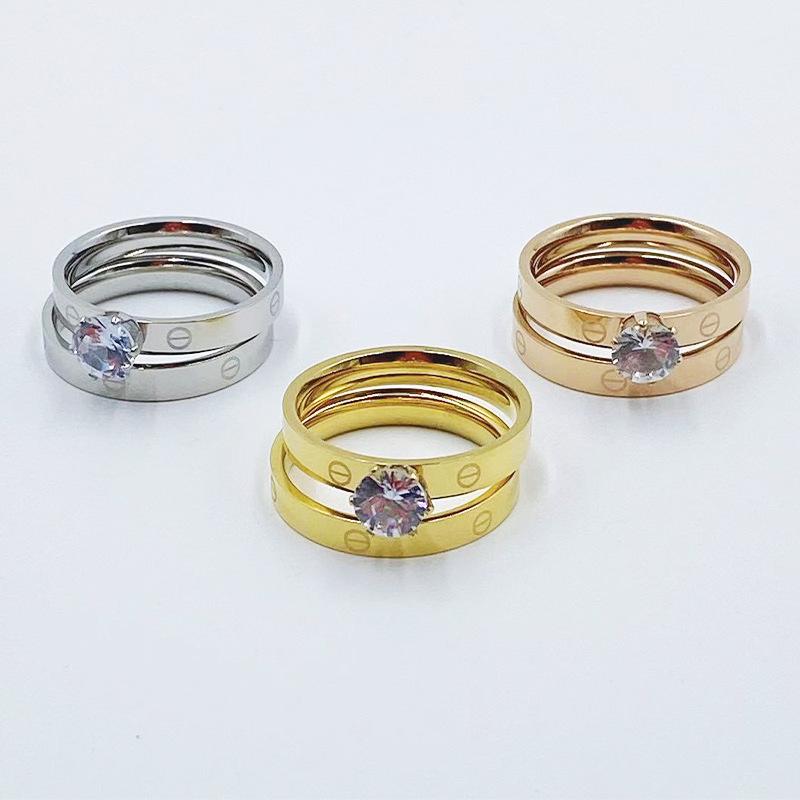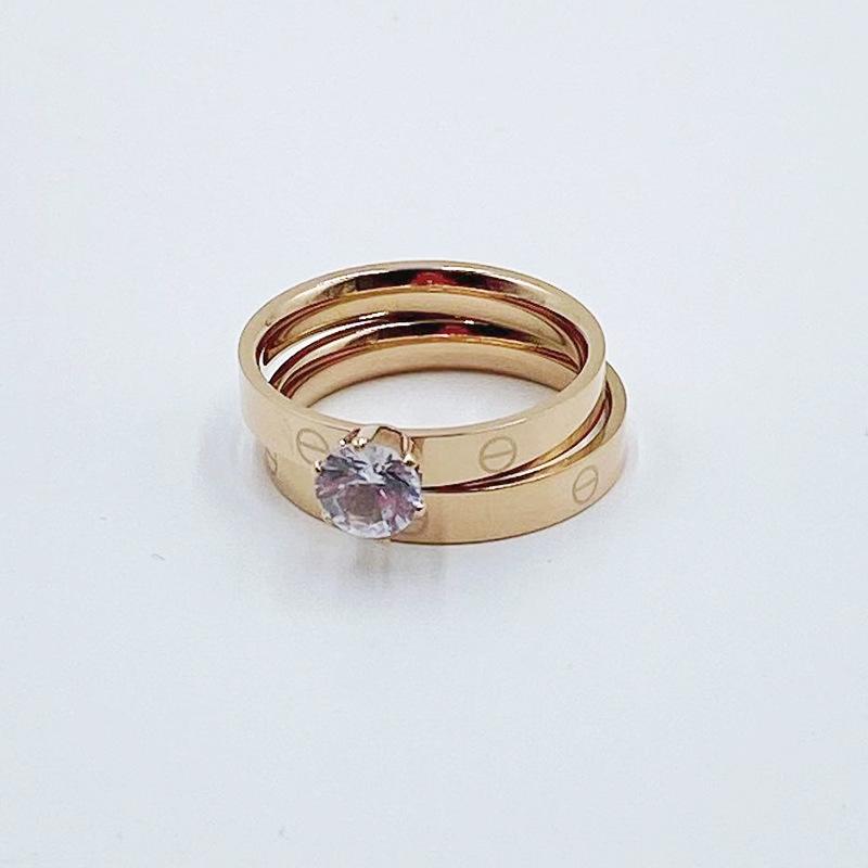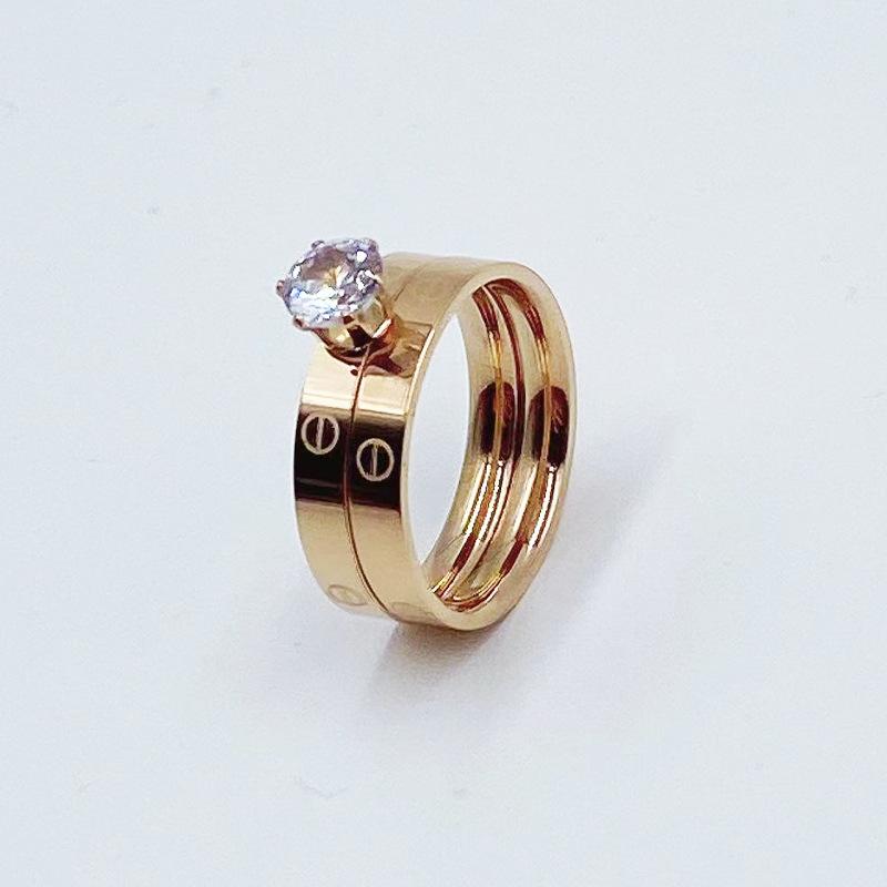 Europa y Estados Unidos Nuevo Anillo Doble Diamante moda personalidad candado acero titanio chapado oro rosa Anillo para mujer punto