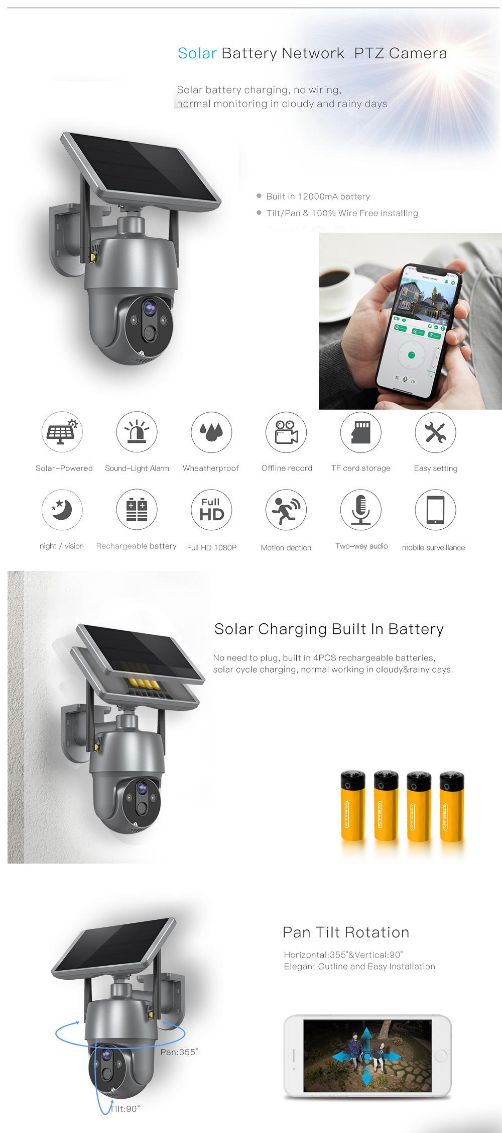 Cámara PTZ Inalámbrica de Baja Potencia para Exteriores con Wifi, Impermeable, Visión Nocturna de Alta Definición, Cámara Solar 4g