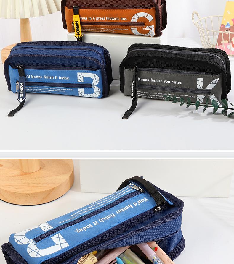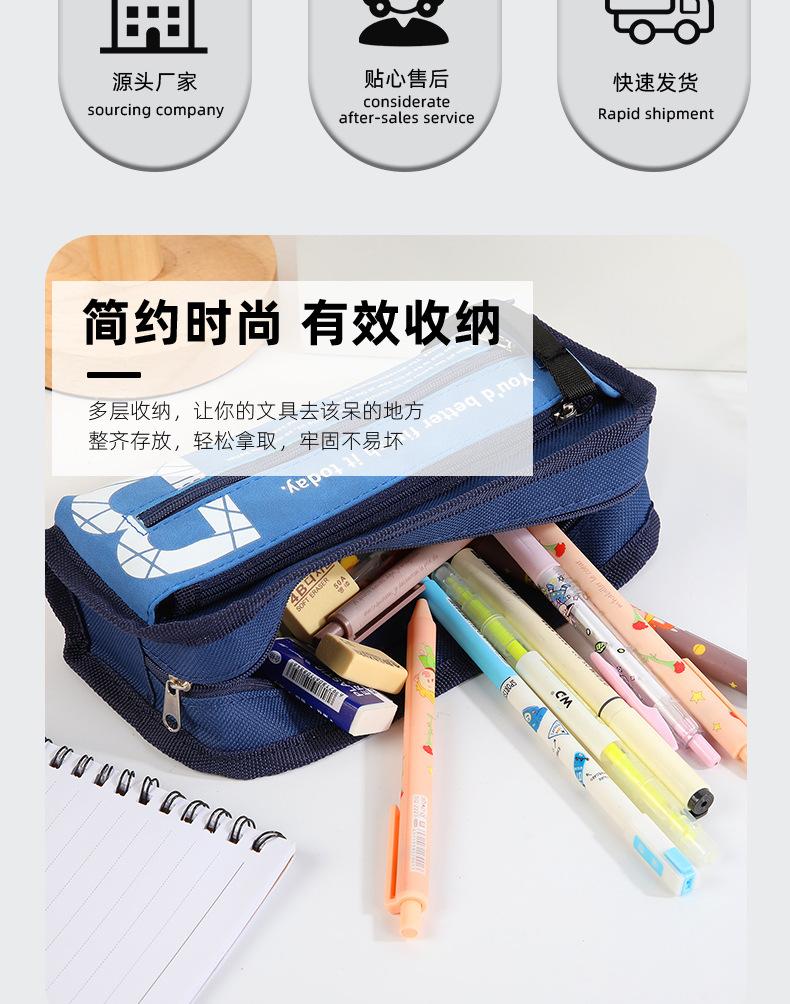 Bolsa de lápices de gran capacidad, sencilla y de venta transfronteriza, bolsa de lápices de alto valor para estudiantes, bolsa de papelería de tela Oxford multifuncional, venta al por mayor