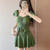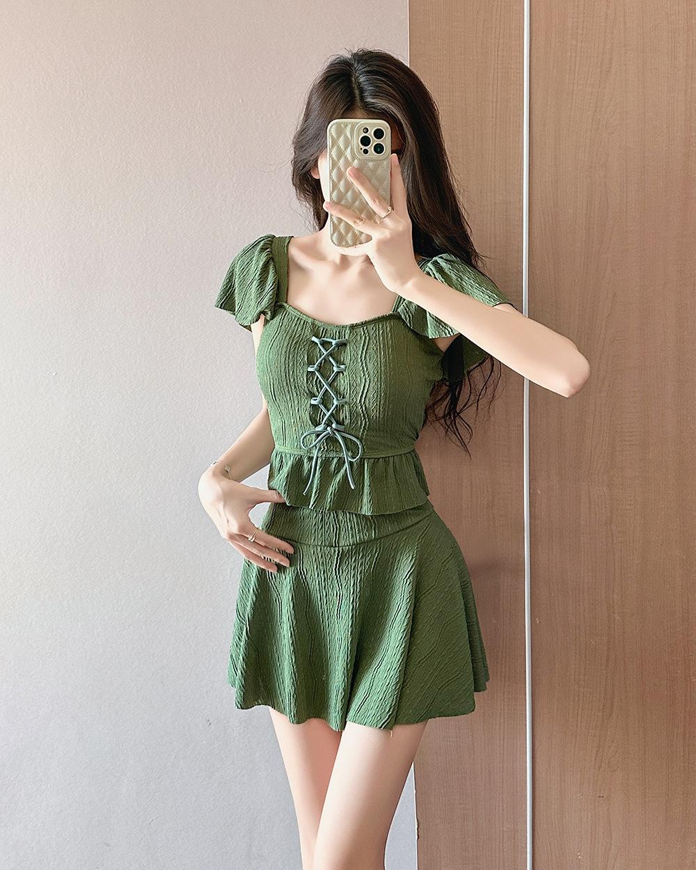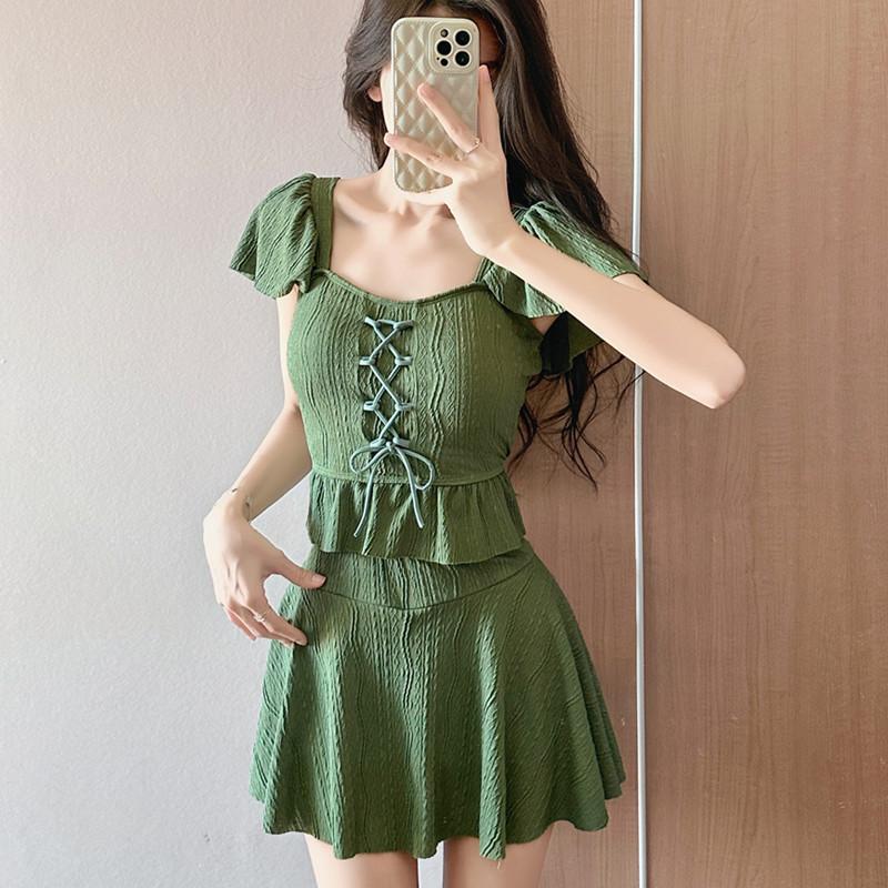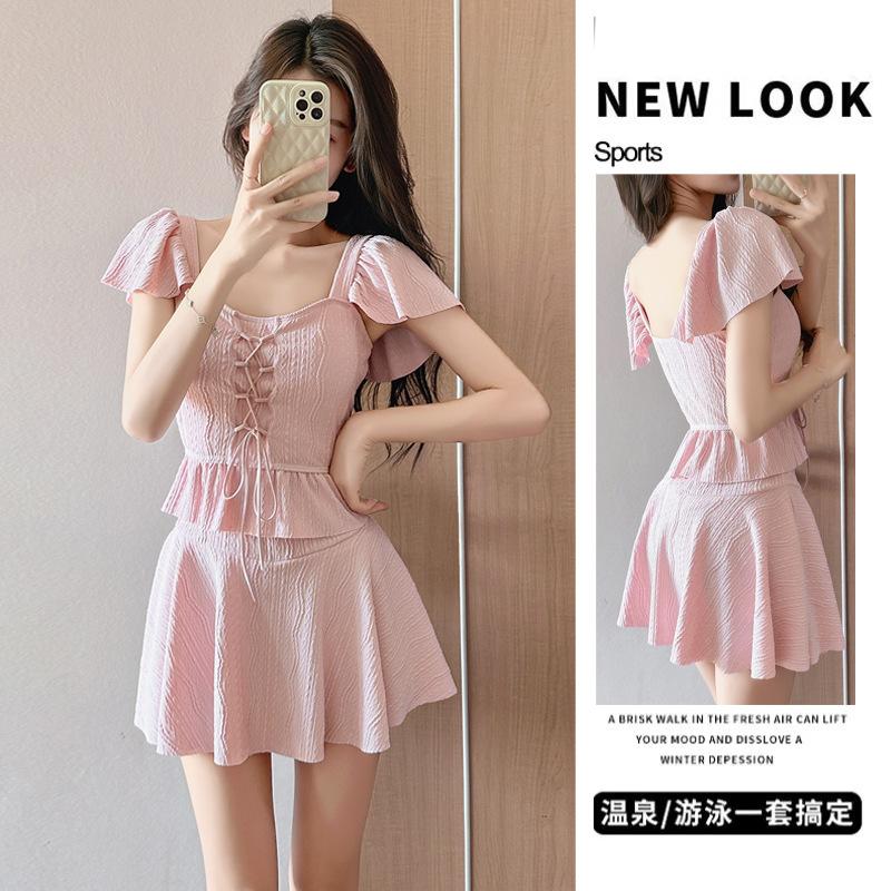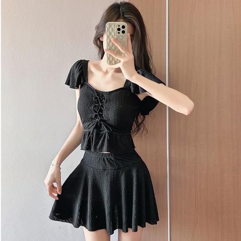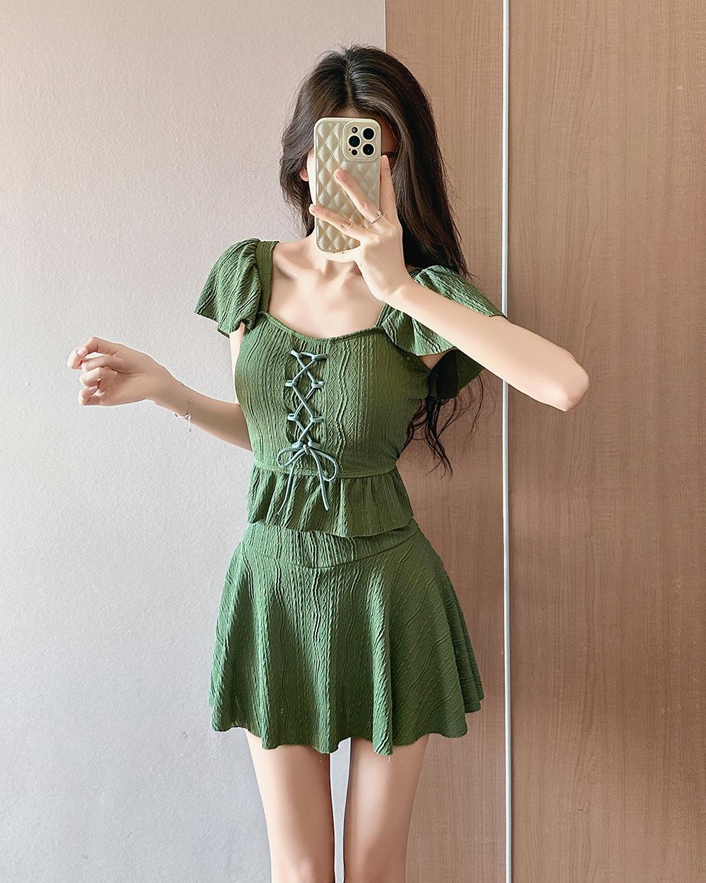 Traje de baño de hadita para mujer, estilo coreano de alta gama, adelgazante, estilo falda con volantes, bóxer, conservador, traje de baño dividido