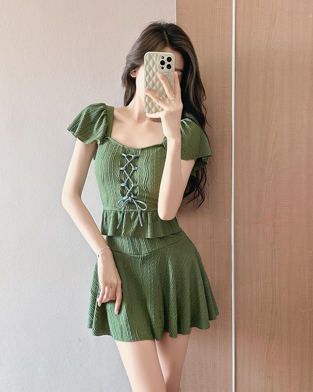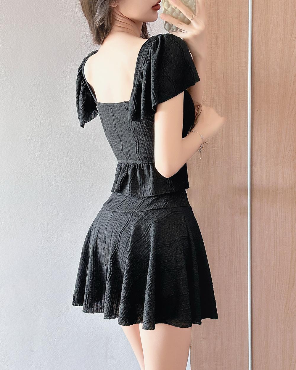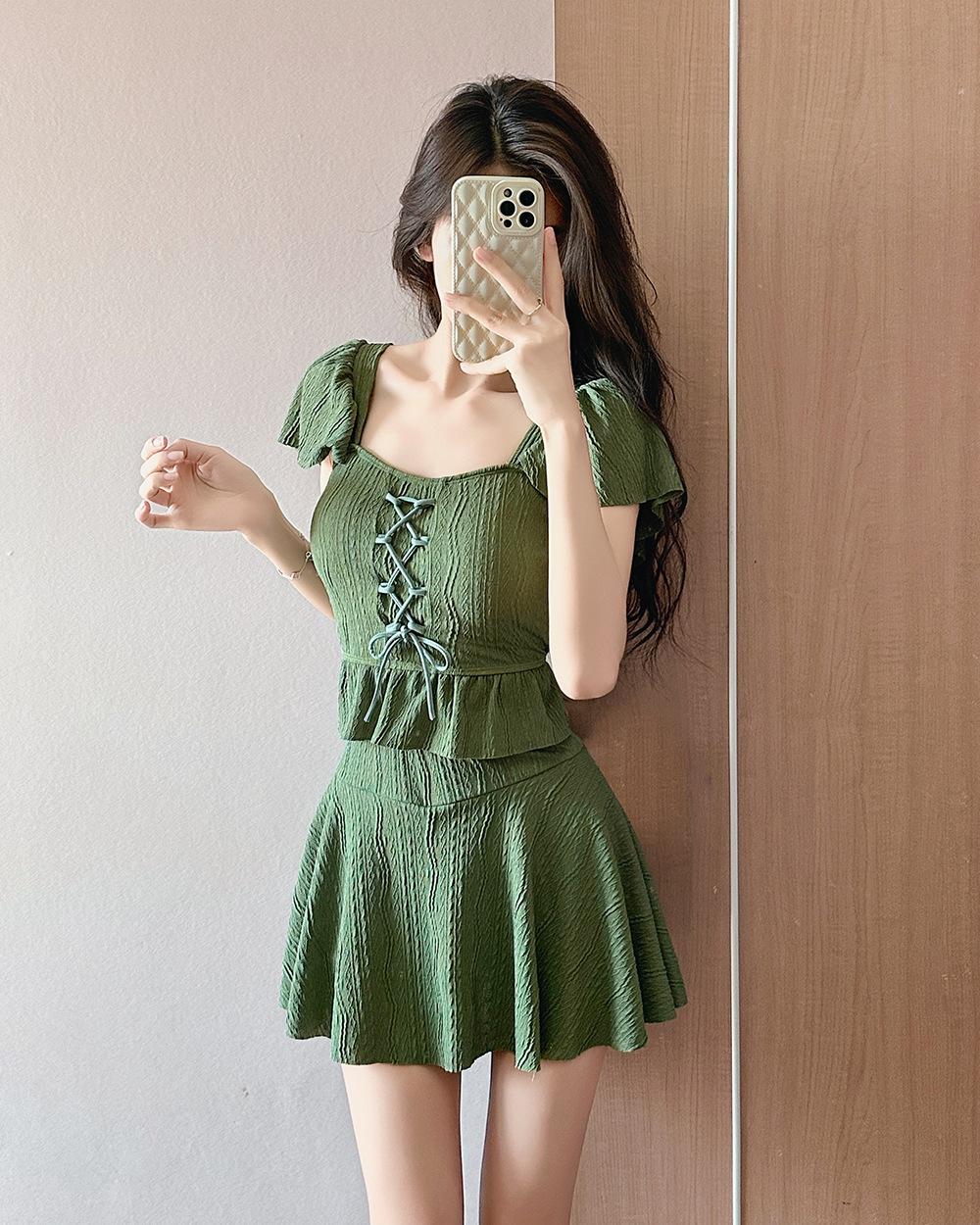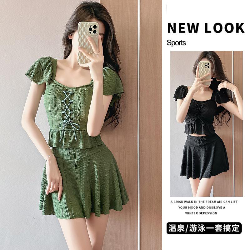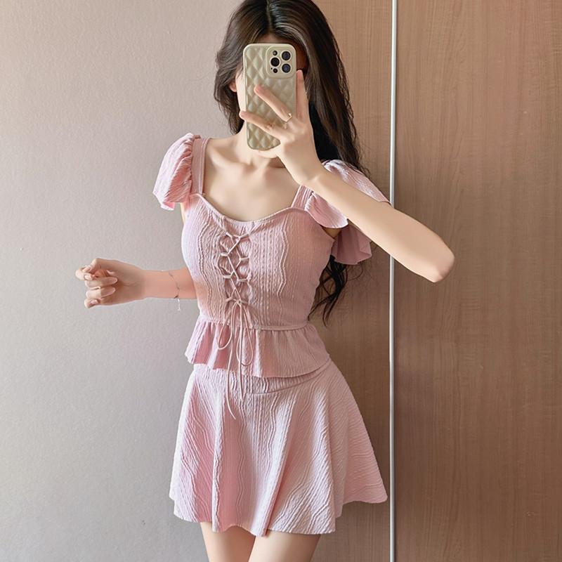 Traje de baño de hadita para mujer, estilo coreano de alta gama, adelgazante, estilo falda con volantes, bóxer, conservador, traje de baño dividido